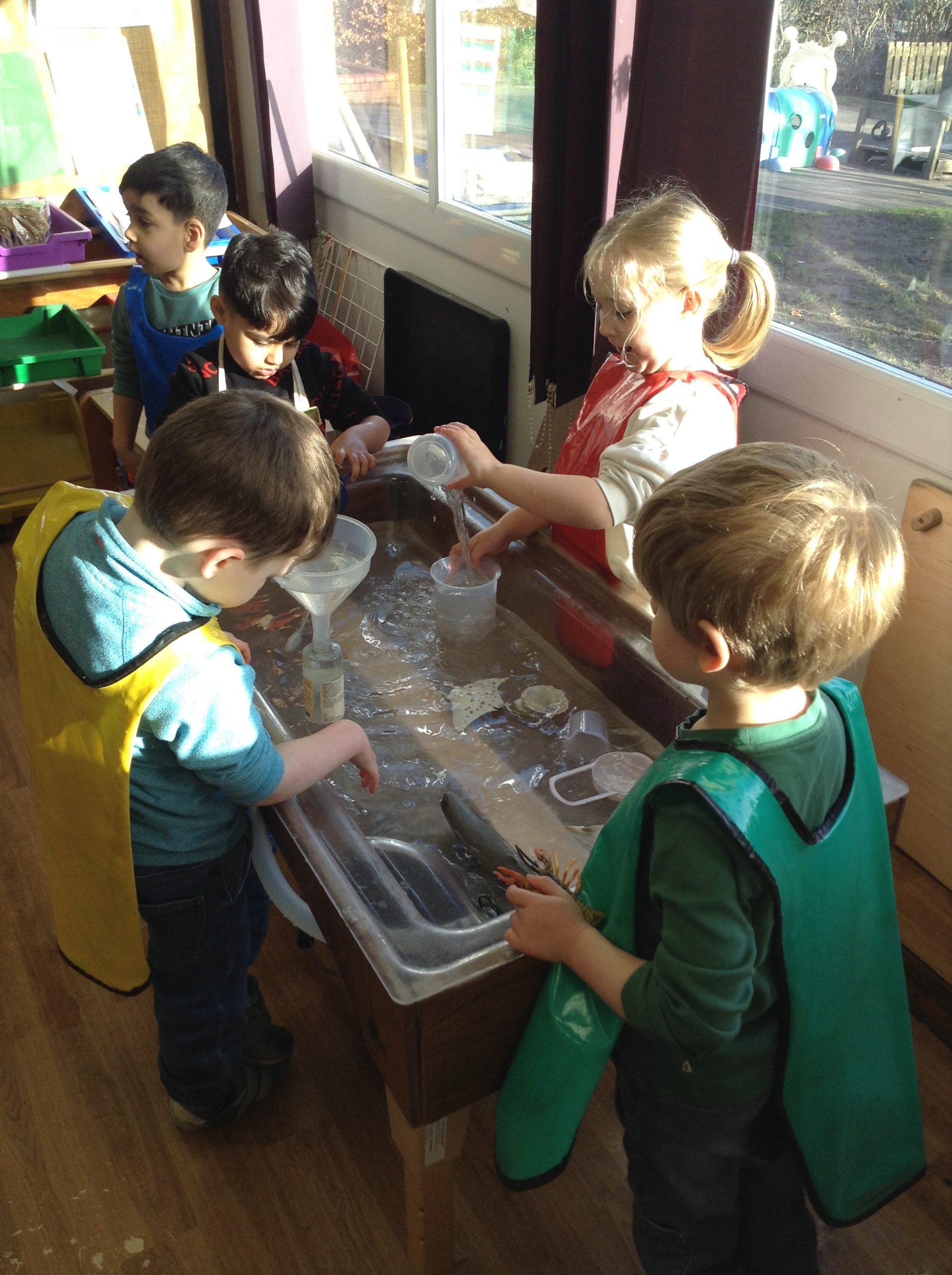 The children have been examining labels and symbols. We wrote numbers 1 to 3 on labels and attached them to buckets. The children helped count the correct number of objects to place in each bucket.
