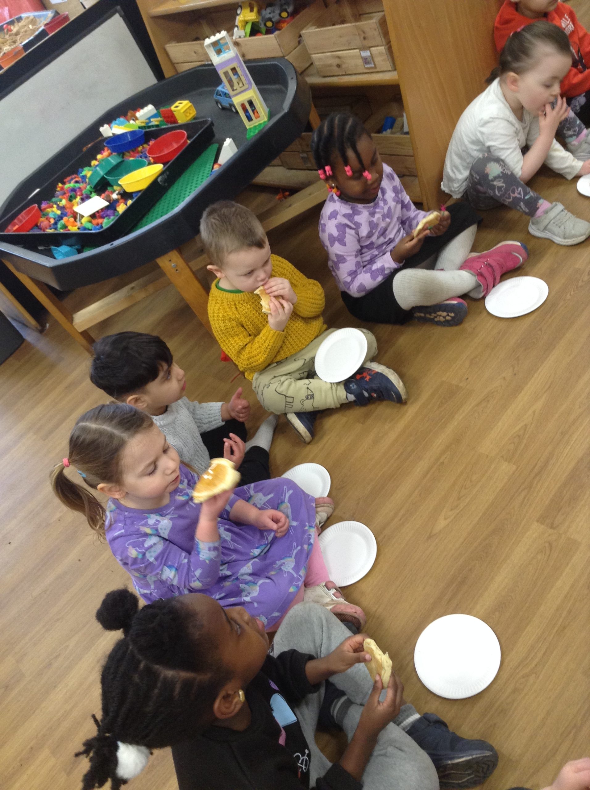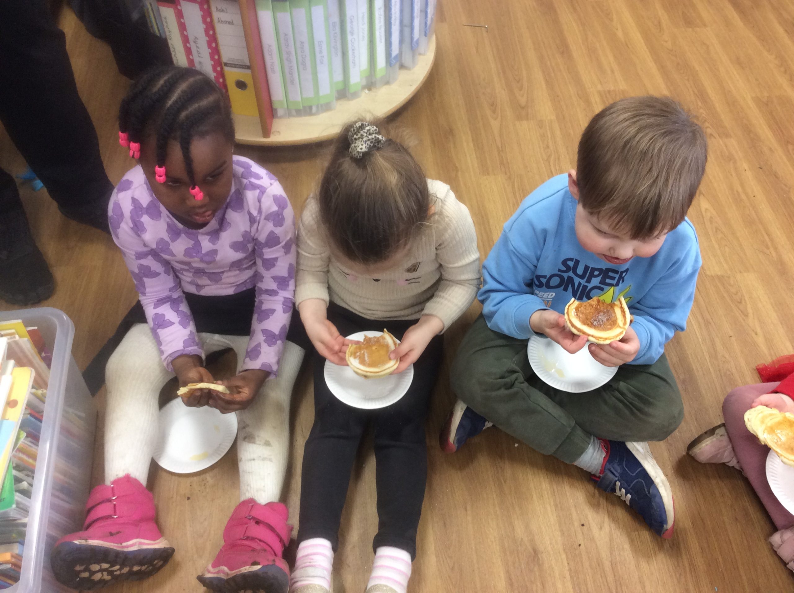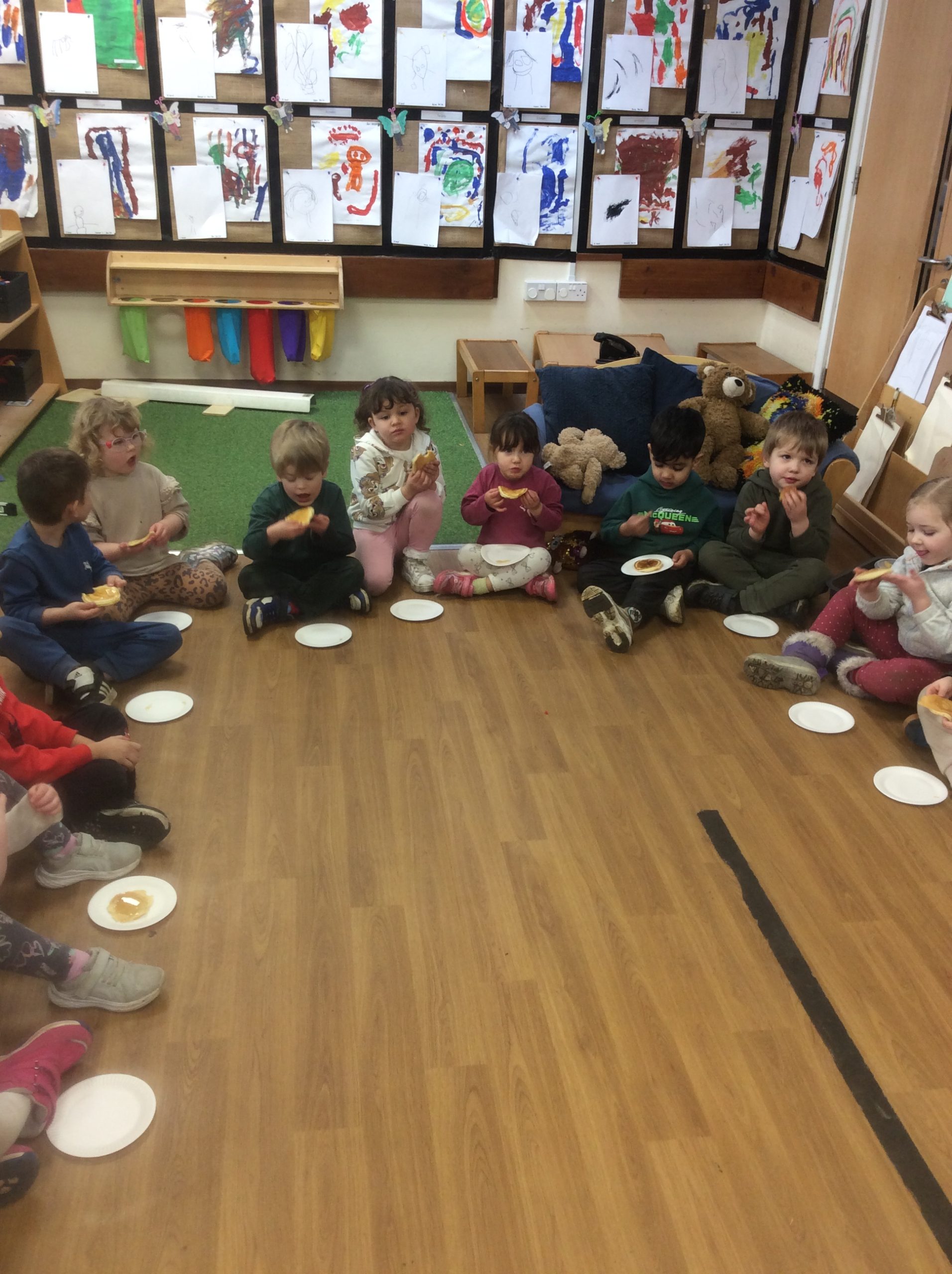 During the holidays, some of the children celebrated Pancake Day. We discussed Shrove Tuesday, Ash Wednesday, the beginning of Lent, and the Christian countdown to Easter. As a special treat, we enjoyed pancakes and experimented with various toppings. Additionally, some children are preparing to celebrate Eid, so we spent some time talking about Ramadan and the Muslim countdown to Eid. We learned about how some families are fasting in preparation for this celebration. In our activities, we have also been busy sorting items, making balloon models, painting, colouring, and spending a lot of time outside digging and preparing for Spring.