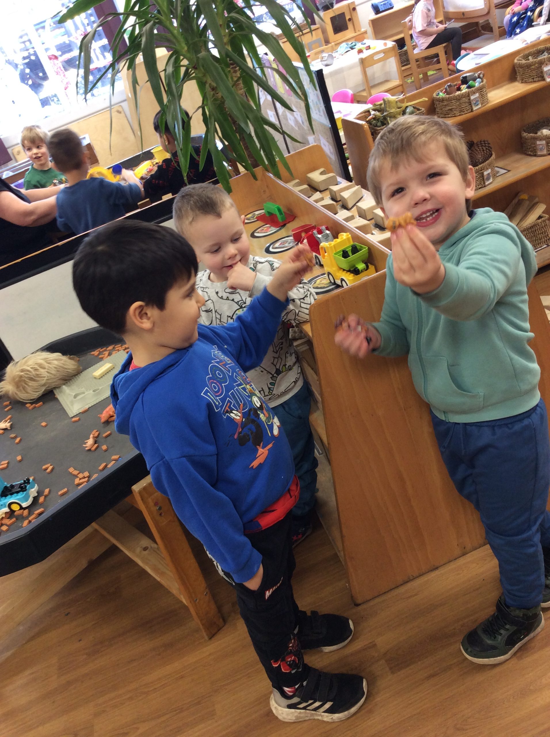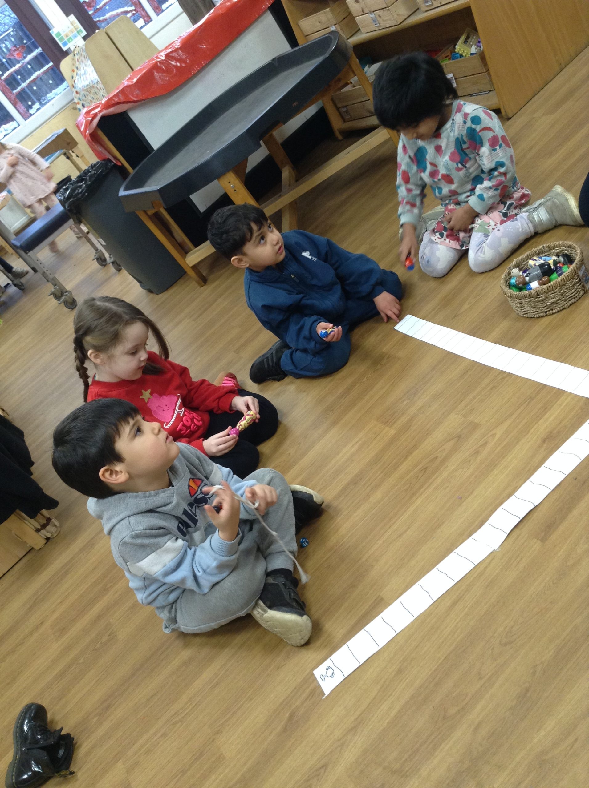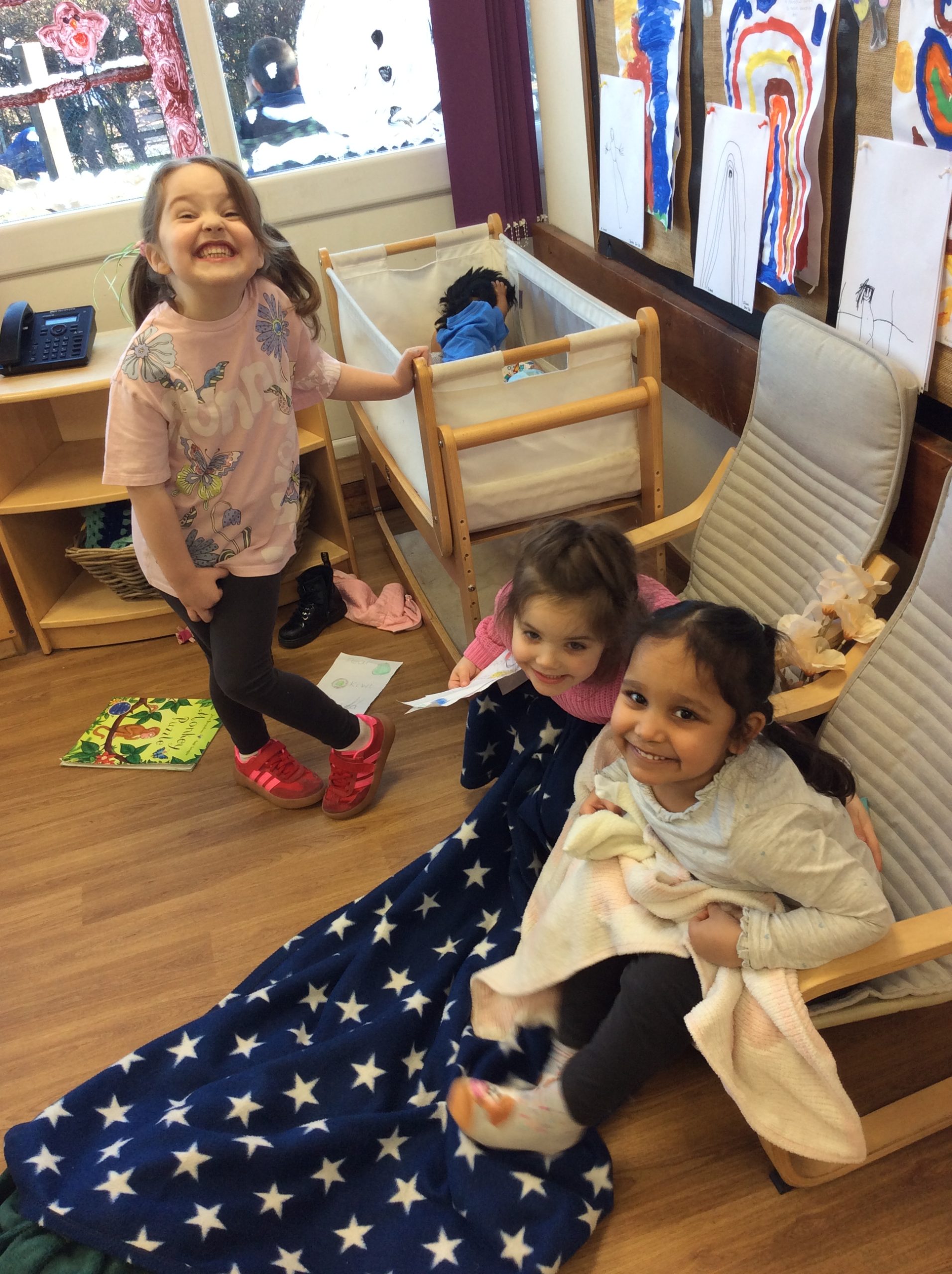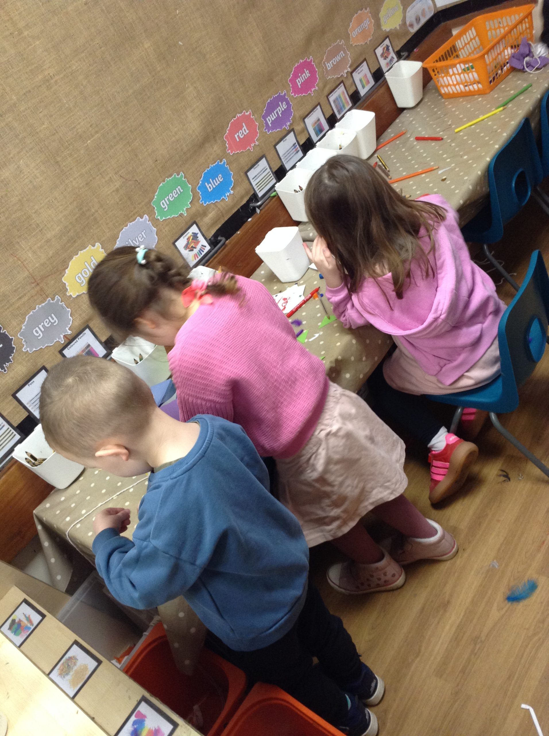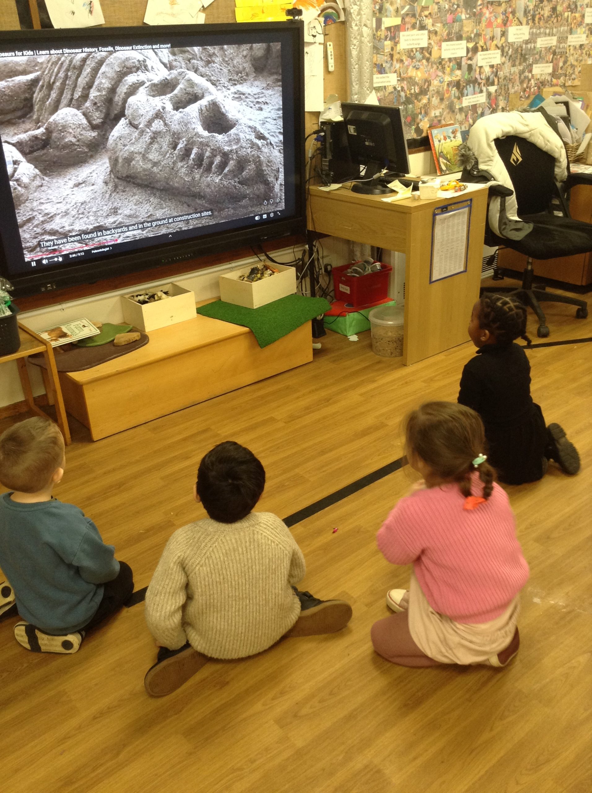 We have seen some extinct animals come to life this week! It was fun learning about what dinosaurs used to eat. We also looked at seals and sea lions and discussed their similarities and differences. The children have continued to practise writing their names and are really impressing us with their letter formation. There was some ice outside, which the children found interesting. We had great fun finding it, looking through it, and smashing it! We spent some time in the hall using the apparatus, working on our tummy muscles. The children also enjoyed painting, making kites, playing in a jelly bath, and making paper flowers.