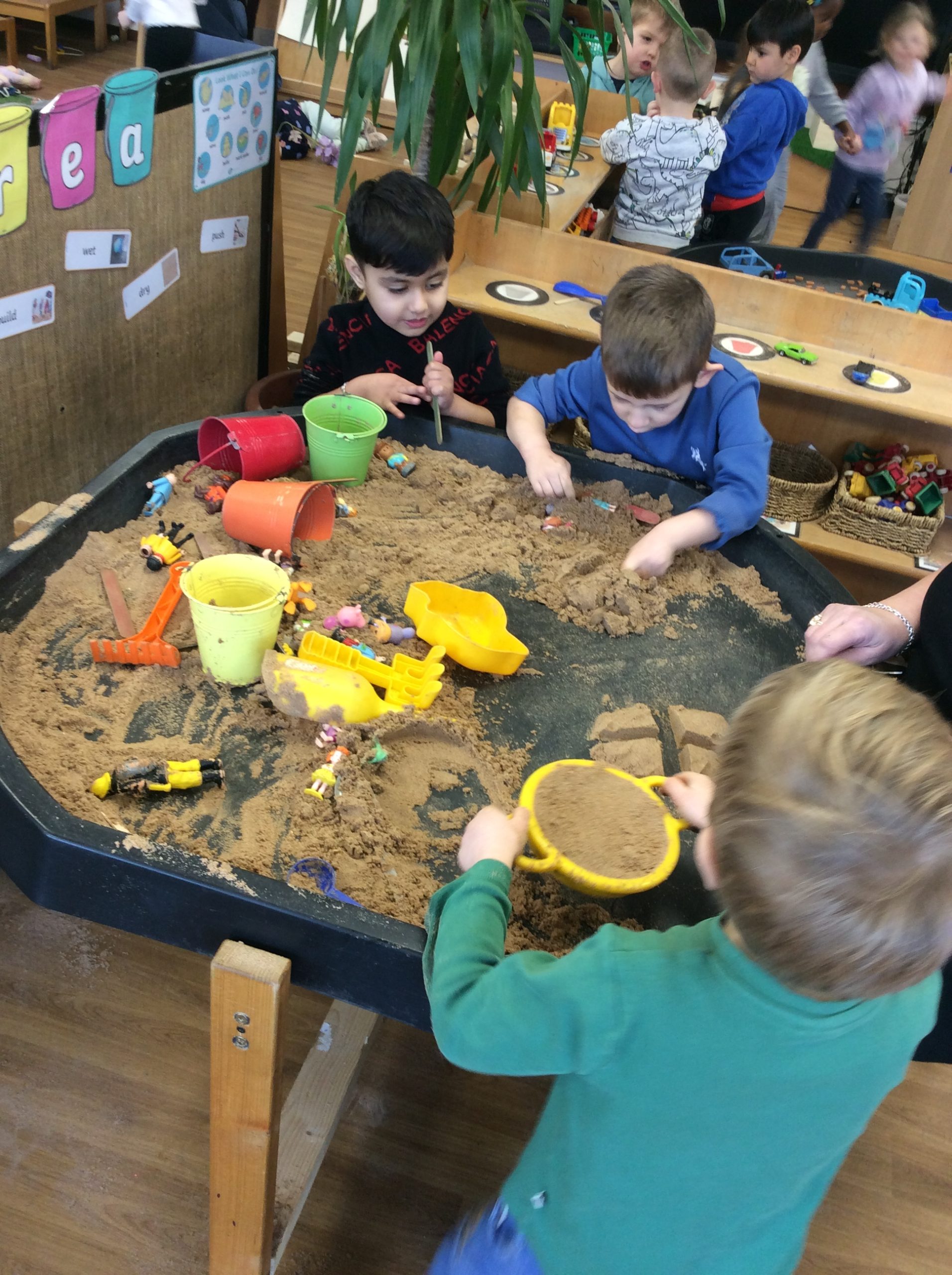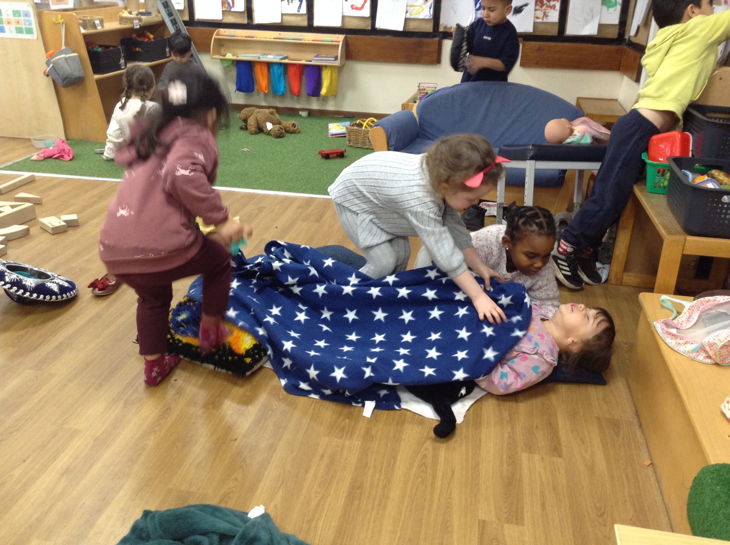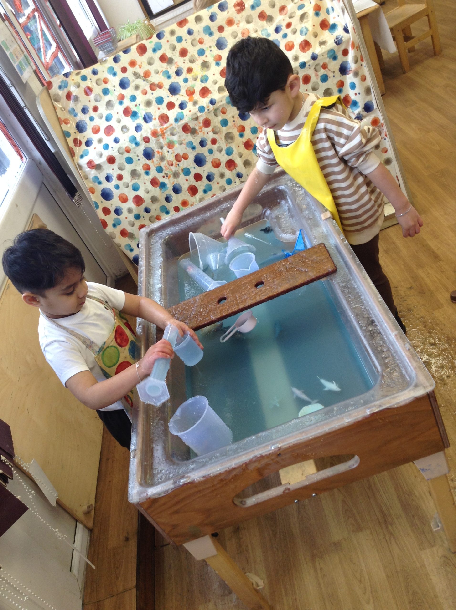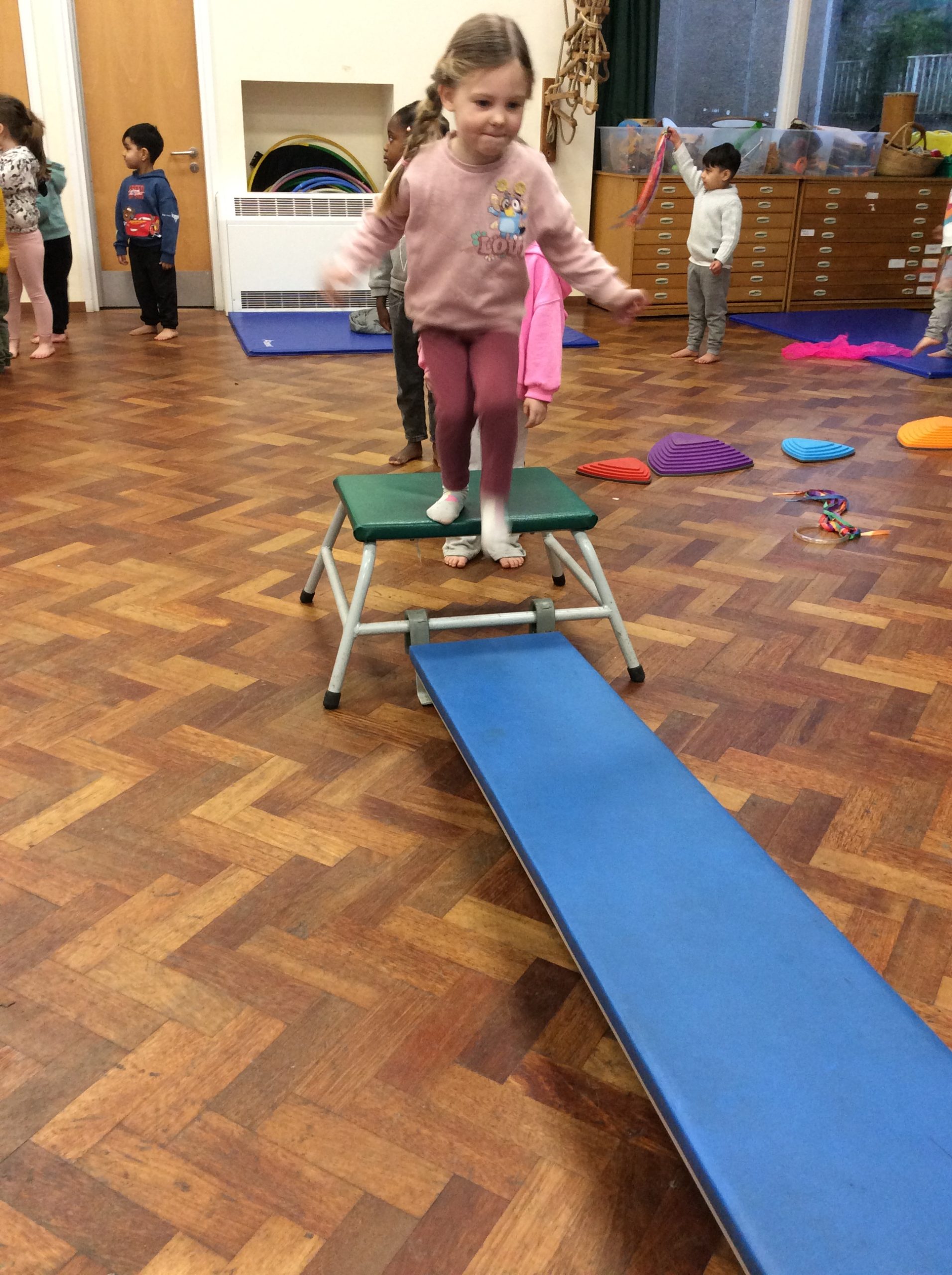 We have seen some extinct animals come to life this week! It was fun learning about what dinosaurs used to eat. We also looked at seals and sea lions and discussed their similarities and differences. The children have continued to practise writing their names and are really impressing us with their letter formation. There was some ice outside, which the children found interesting. We had great fun finding it, looking through it, and smashing it! We spent some time in the hall using the apparatus, working on our tummy muscles. The children also enjoyed painting, making kites, playing in a jelly bath, and making paper flowers.
