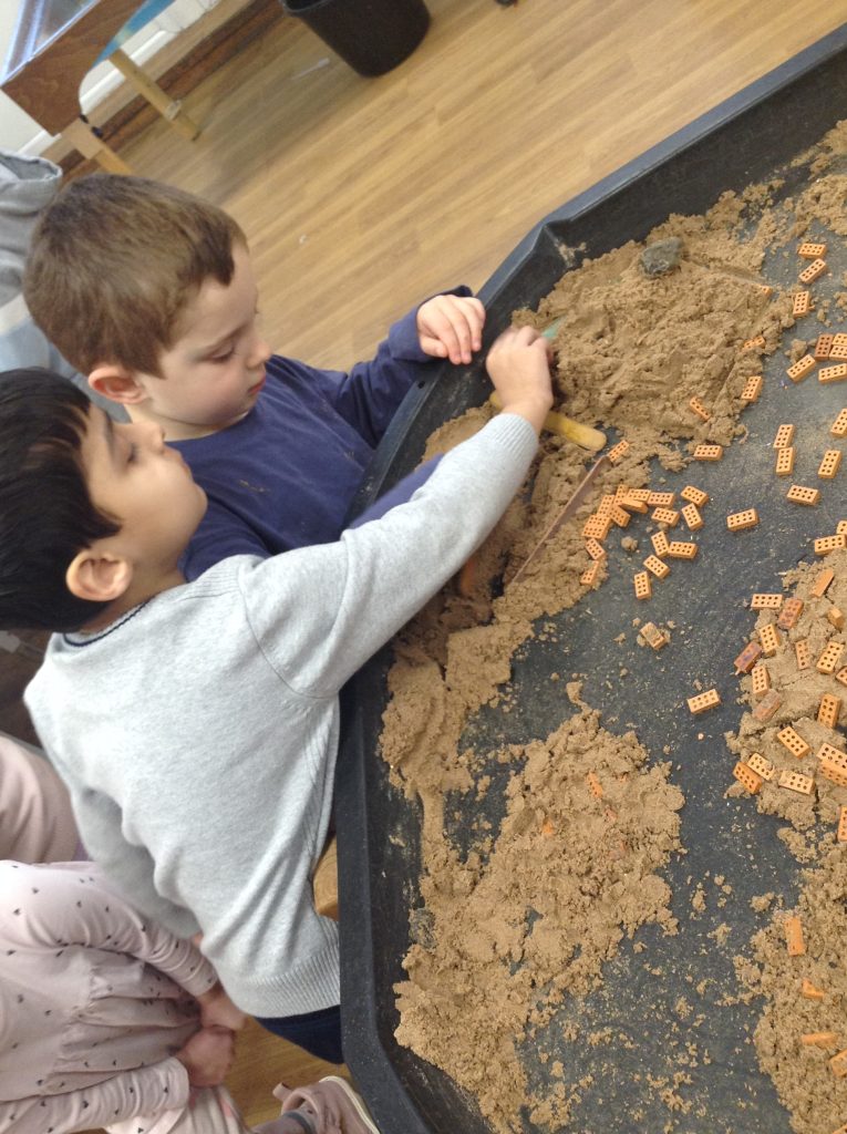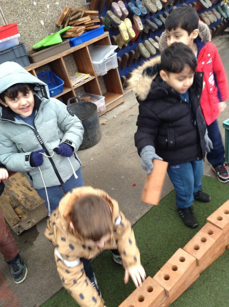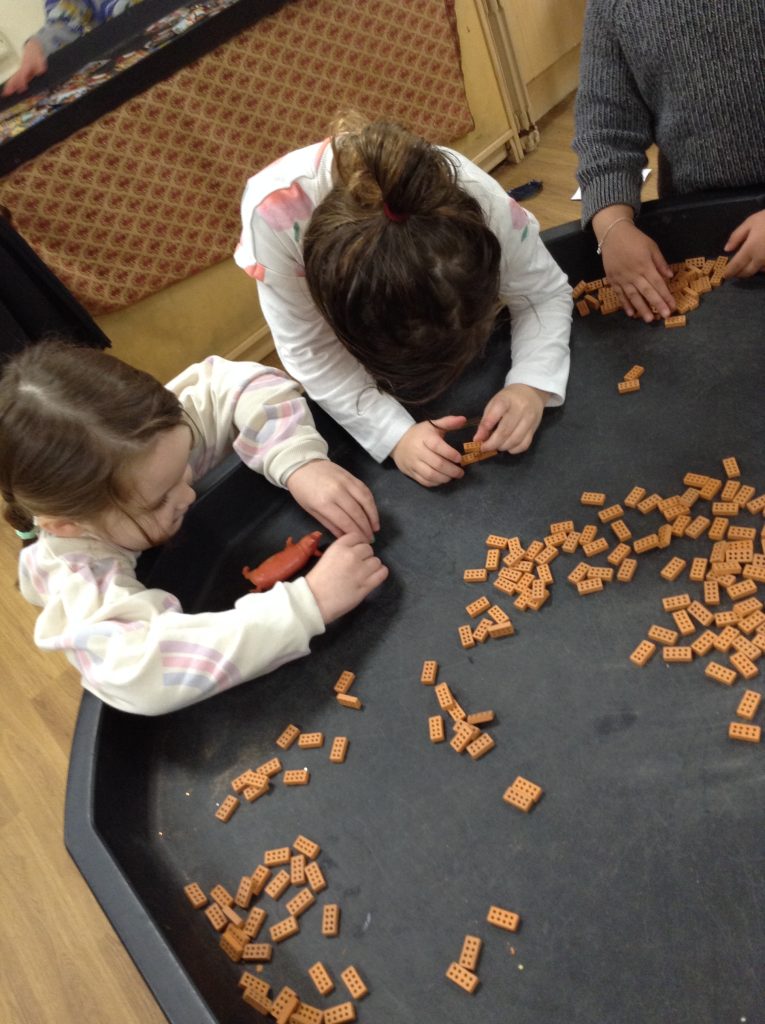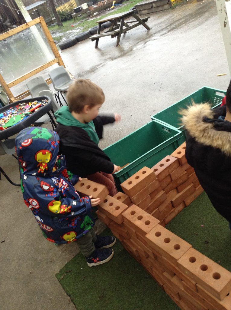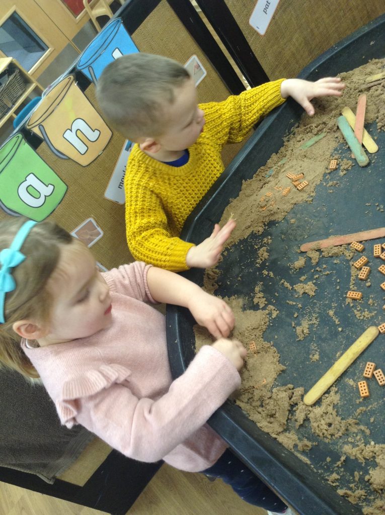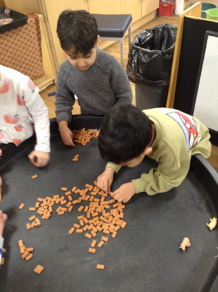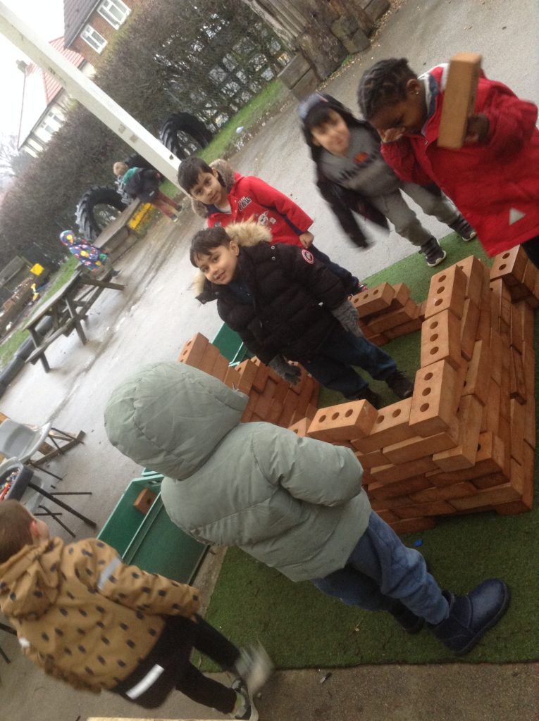 This week, the children examined bricks. We watched a video showing how bricks are made, then attempted to build a house for a pig. The children also looked at different types of houses and buildings from around the world. As we couldn’t use full-sized clay bricks, we opted for a tiny version instead. We also used the foam bricks outdoors.