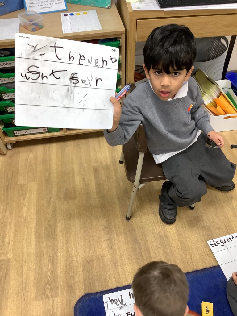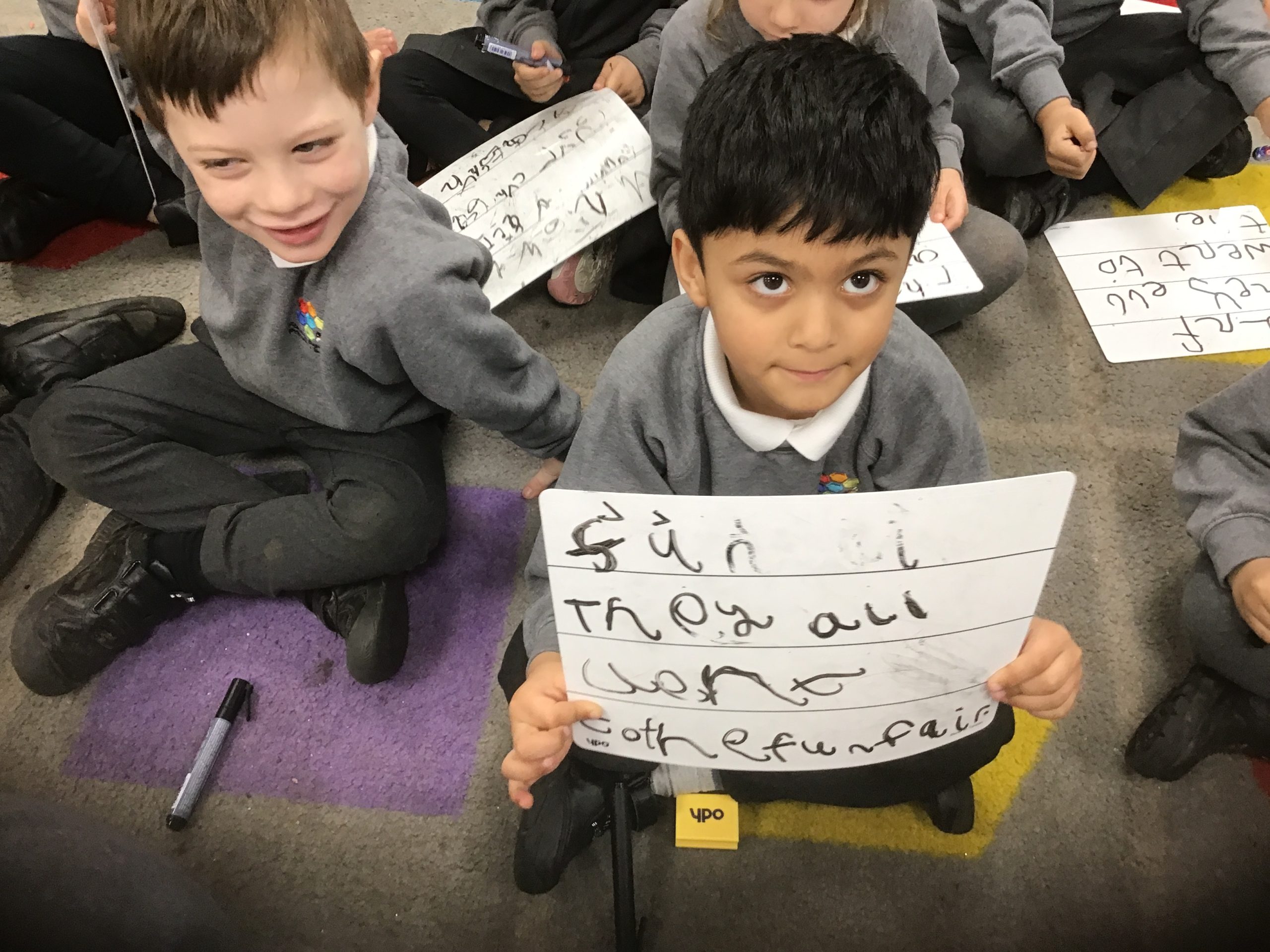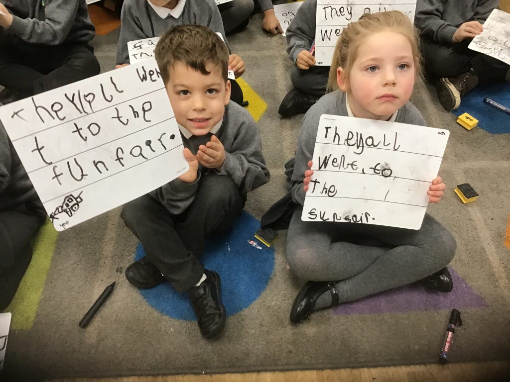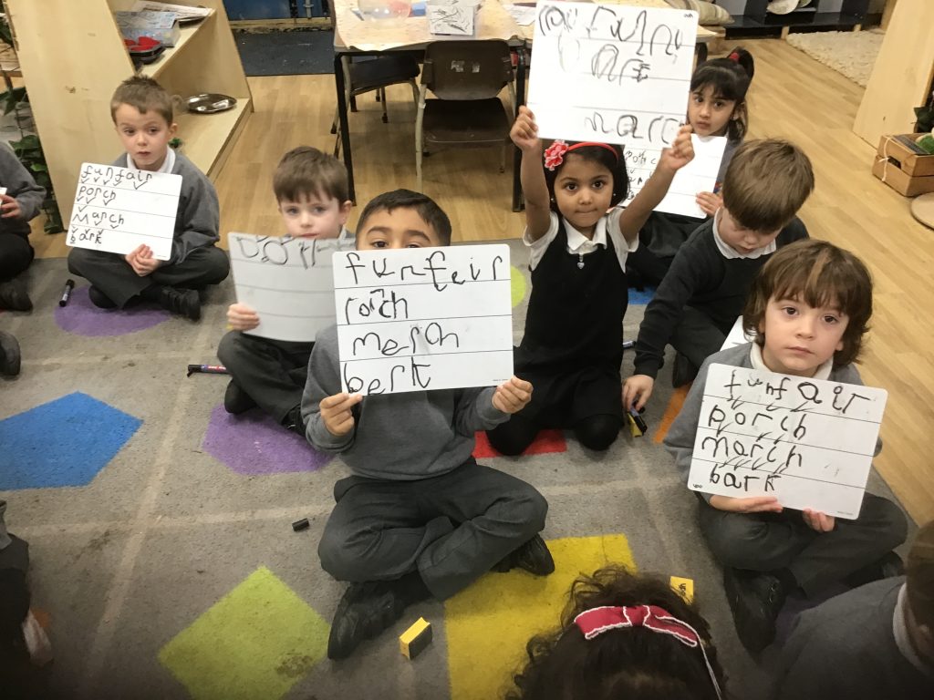 This week in phonics we have been revising all the digraphs and trigraphs we have learnt so far – ch, sh, th, ng, nk, ai, ee, igh, oa, oo (spoon), ar, ur, oo (book), or, ow (growl), oi, ear, ure, er, ow (snow), air. The children have also been looking at all the hard to read and spell words – a, I, the, no, put, of, is, to, his, as, pull, into, go, me, we, buses, she, he, push, my, her, was, be, are, all, they, you, what, when, tall, ball.