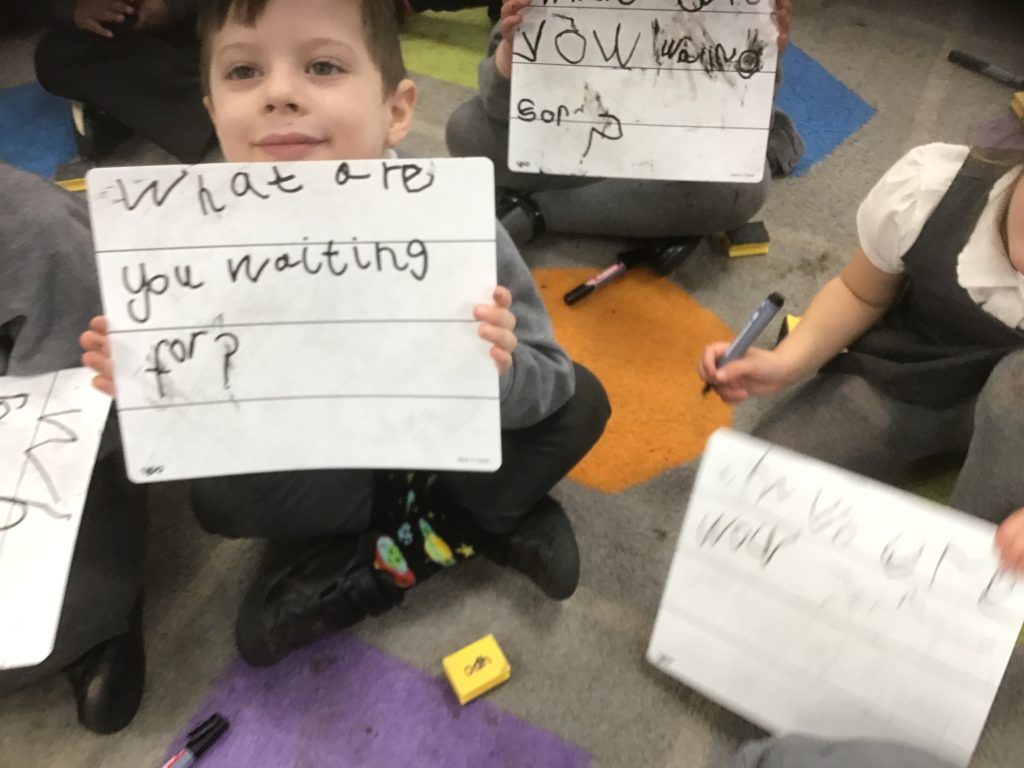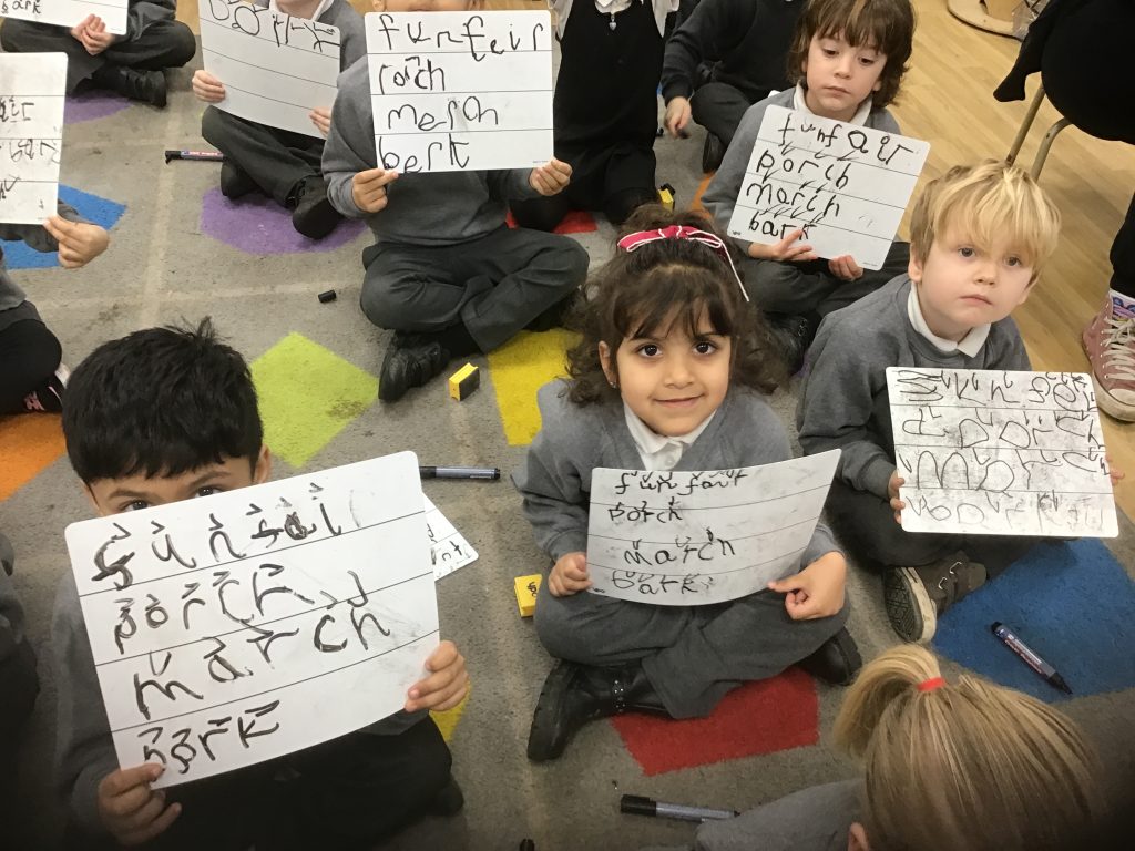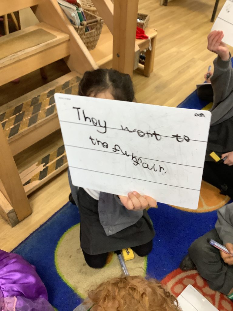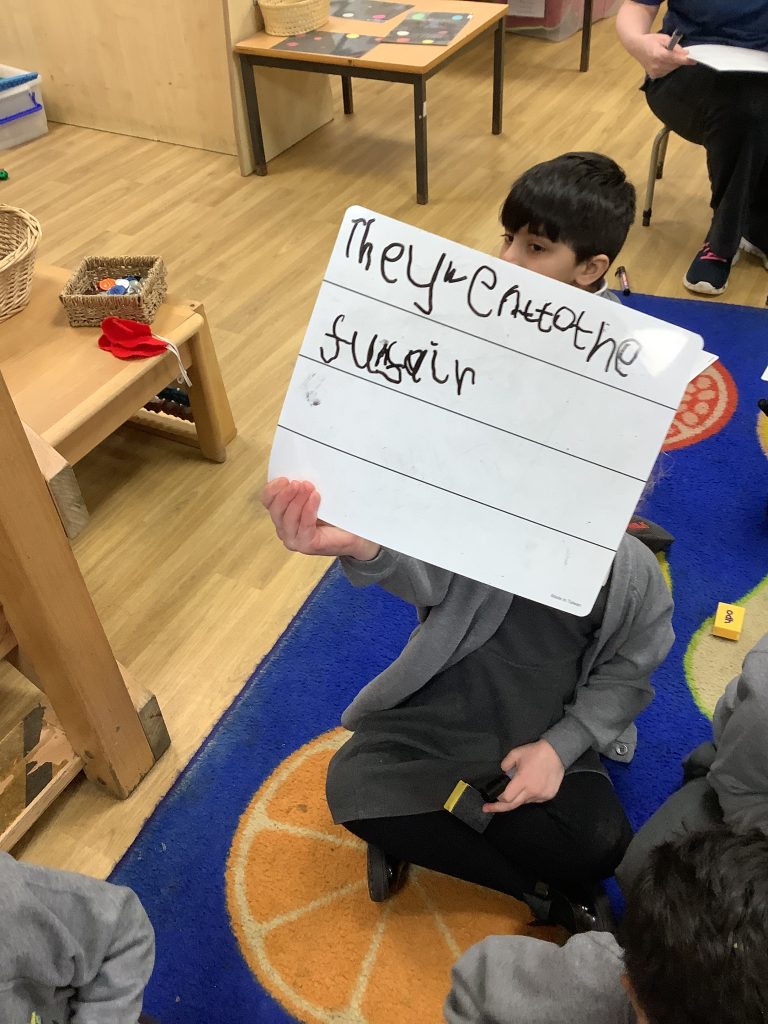 This week in phonics we have been revising all the digraphs and trigraphs we have learnt so far – ch, sh, th, ng, nk, ai, ee, igh, oa, oo (spoon), ar, ur, oo (book), or, ow (growl), oi, ear, ure, er, ow (snow), air. The children have also been looking at all the hard to read and spell words – a, I, the, no, put, of, is, to, his, as, pull, into, go, me, we, buses, she, he, push, my, her, was, be, are, all, they, you, what, when, tall, ball.