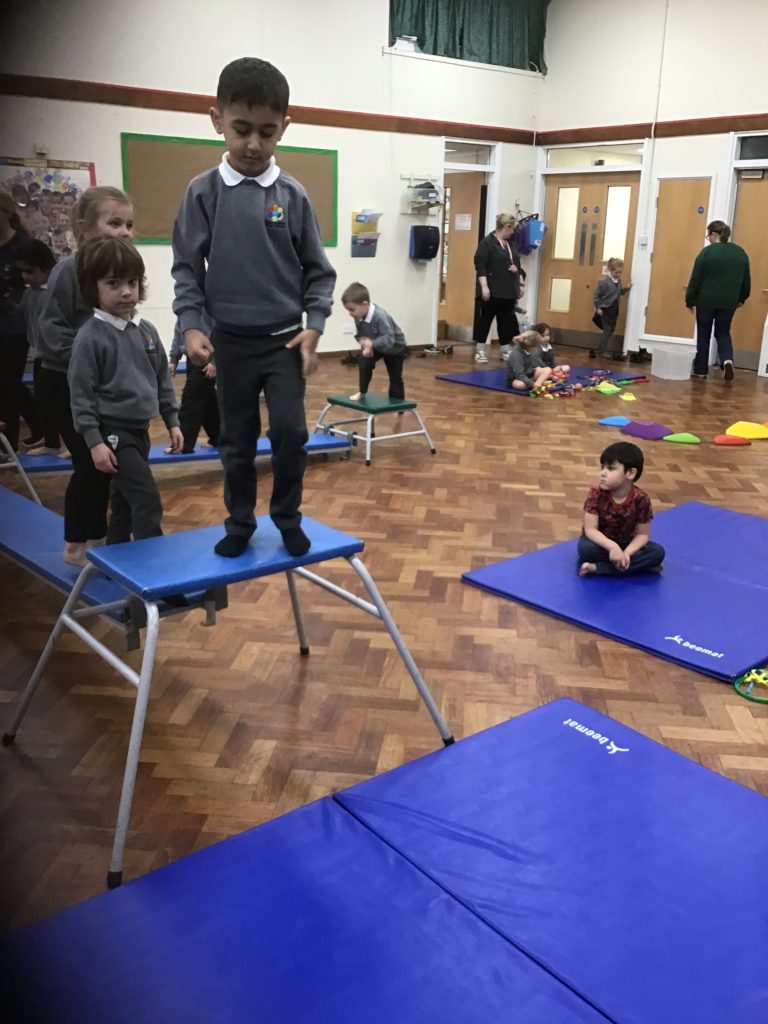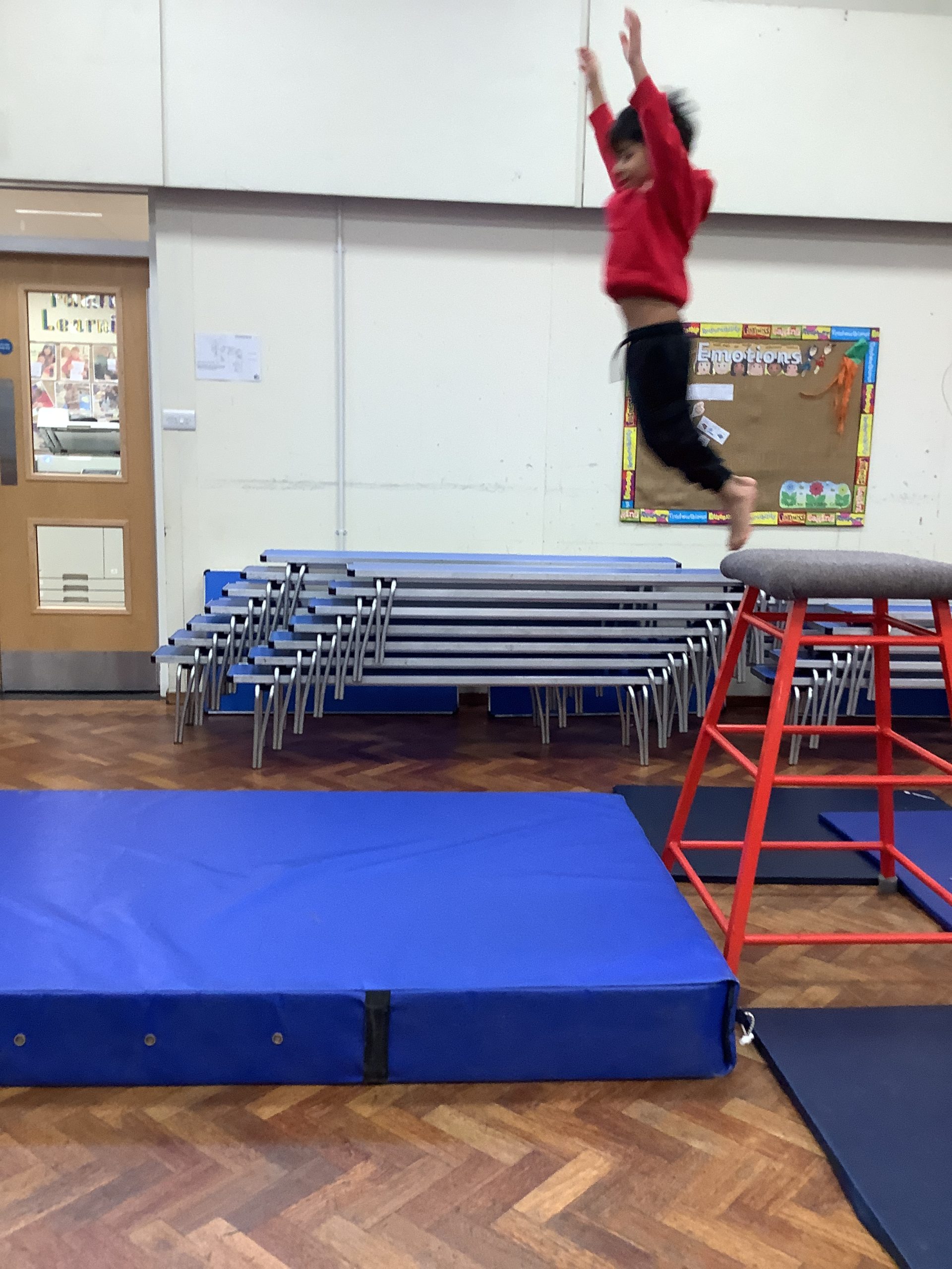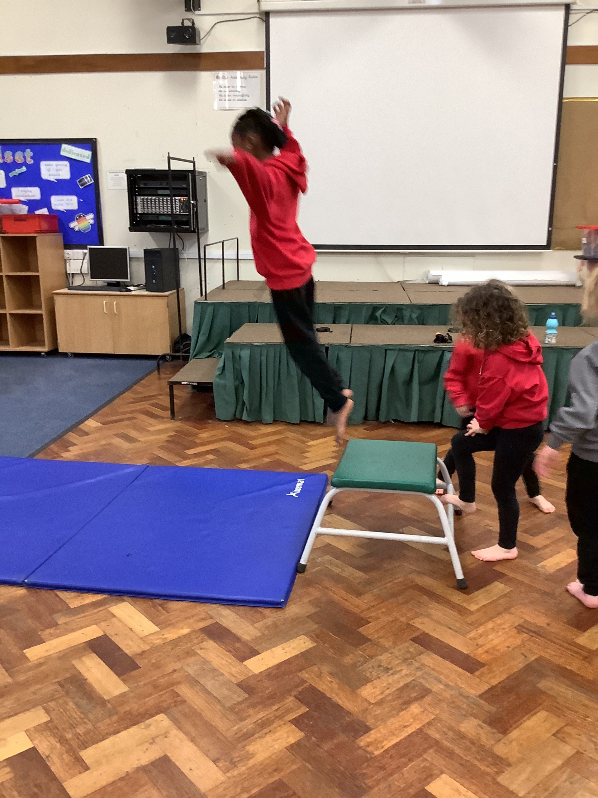 In PE we finished our unit on gymnastics. Today, we used the apparatus to practise everything that we have leaned: jumps, bunny hops, and balances. The children did incredibly well.