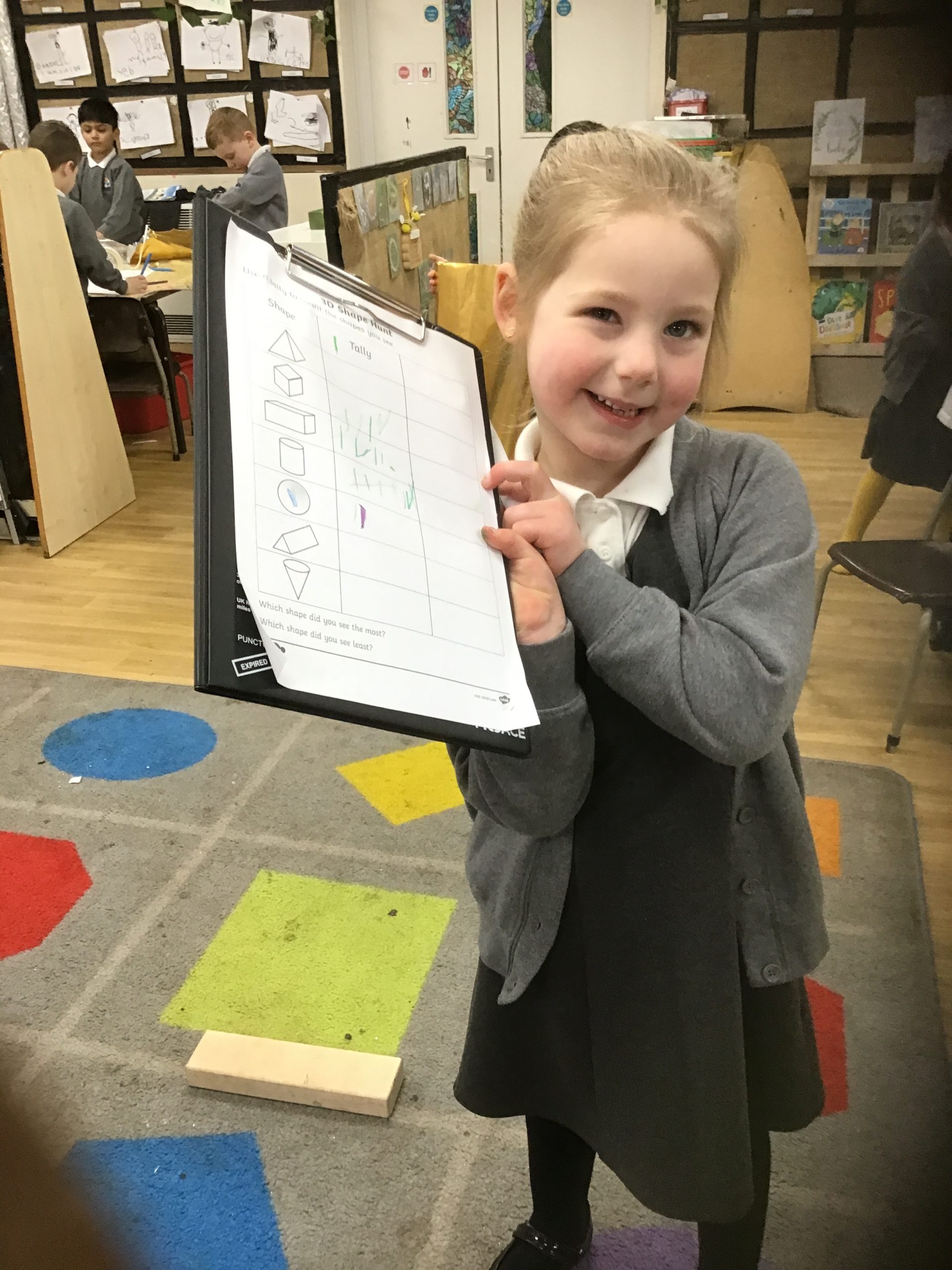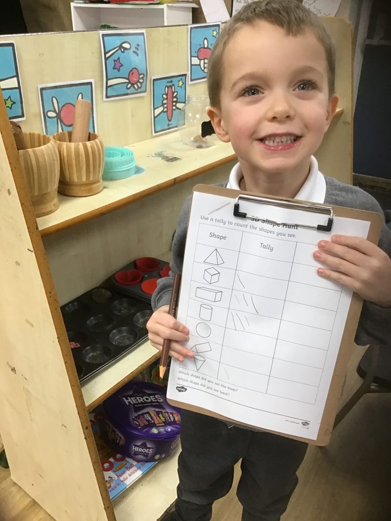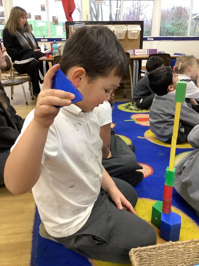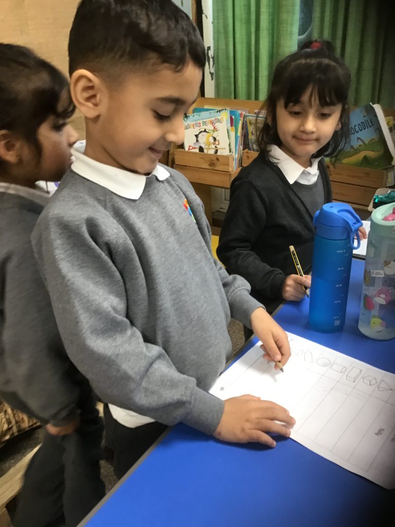 We have had lots of fun with 3D shapes this week. The children have enjoyed learning their names and their properties. They have been on a shape hunt around the classroom too. What facts can they remember?