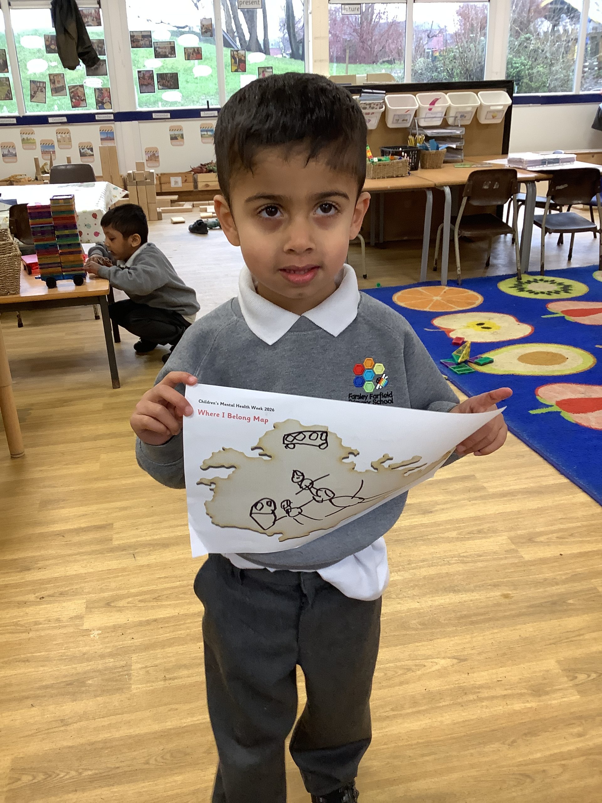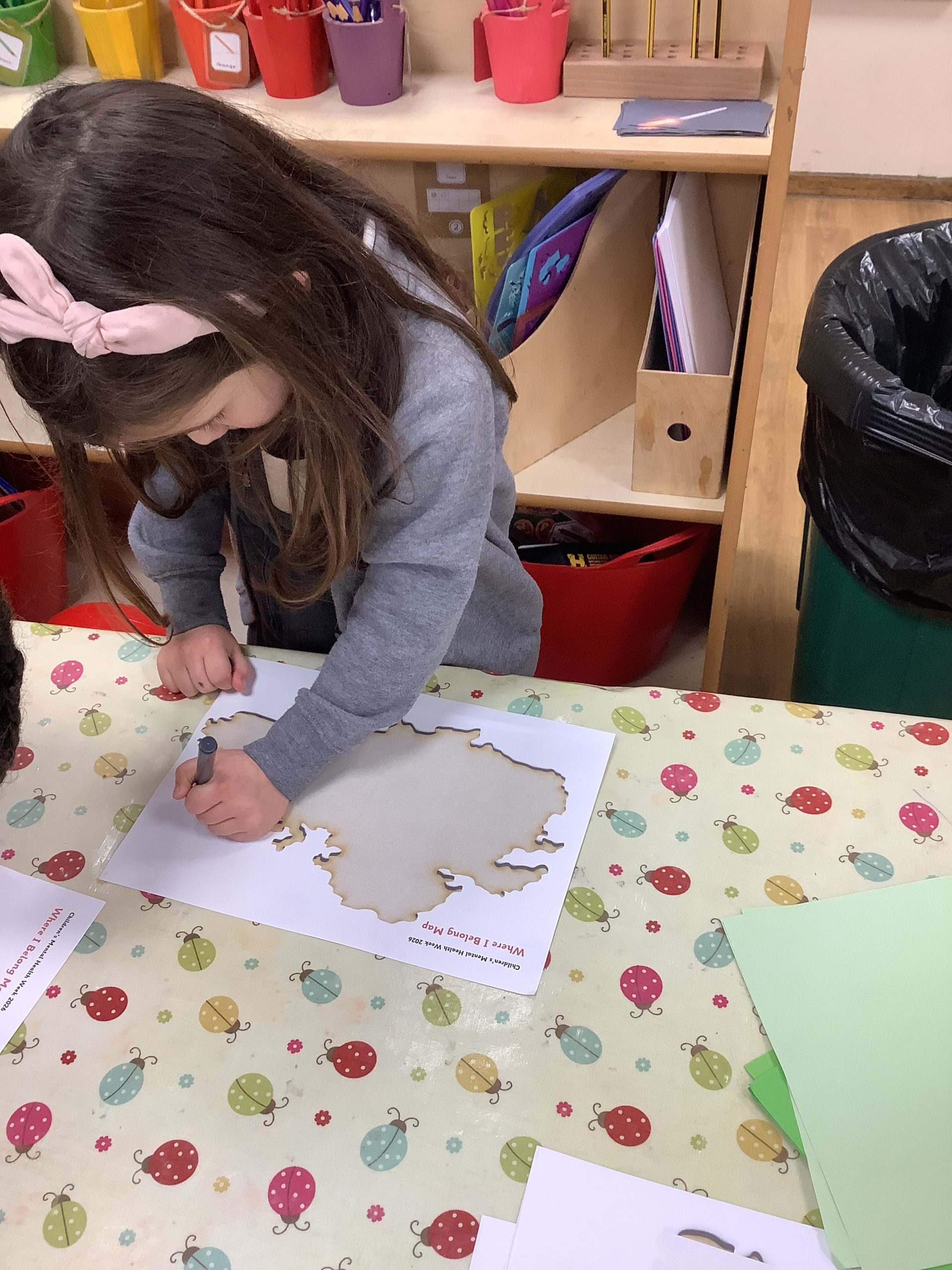 This week we have been talking to the children about ‘belonging’. Where do they belong? The children had some super ideas. We belong to.. our church, mosque, family, Rainbows, swimming class, school. We then made a map to show where we belong.