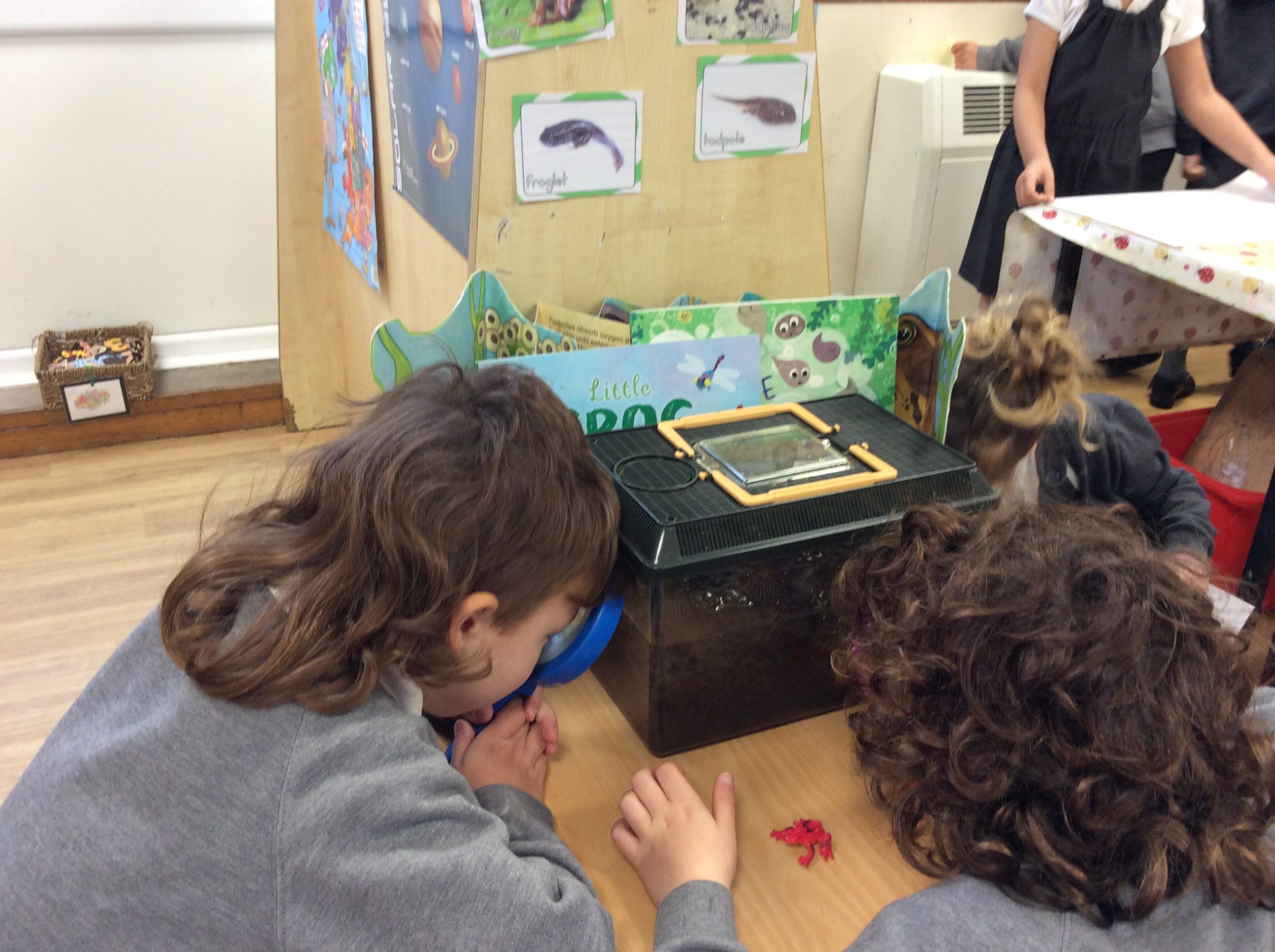 We have enjoyed learning about frogs this week. We went to the school pond and found lots of frogspawn. We are going to look after it in our classrooms and hopefully it will turn into tadpoles and then frogs!