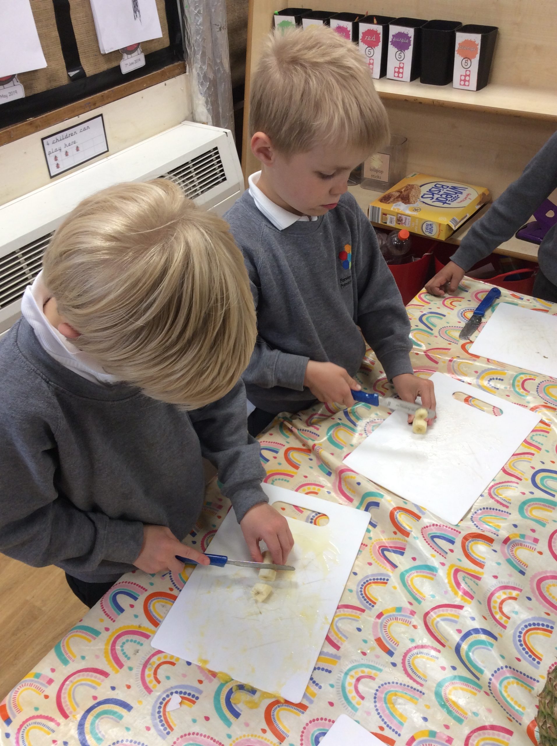Our focus book this half term is Oliver’s Fruit Salad. The children were keen to make their own fruit salad. It was delicious!