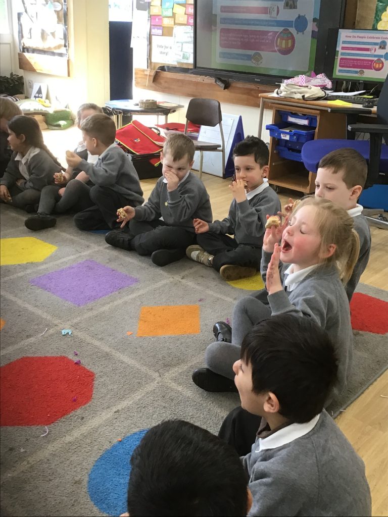 This week we have found out about why Christians celebrate Easter. (It isn’t just about the Easter bunny!) We looked at the cross on hot cross buns and how it reminds us about what happened to Jesus. We even got to eat hot cross buns too!