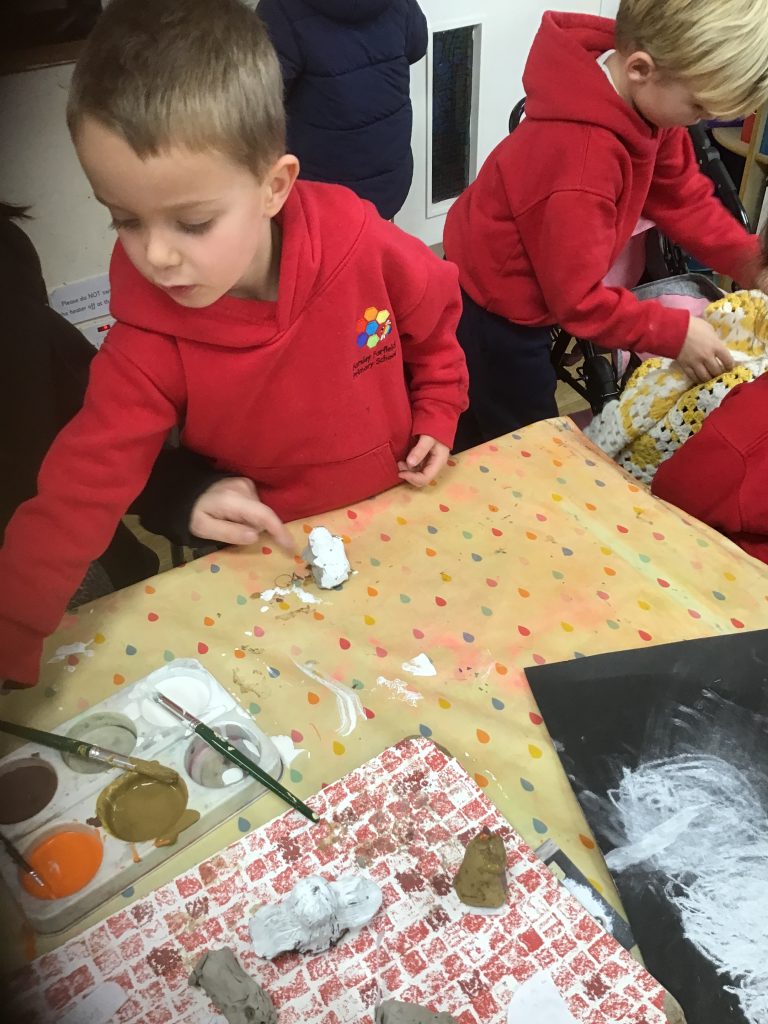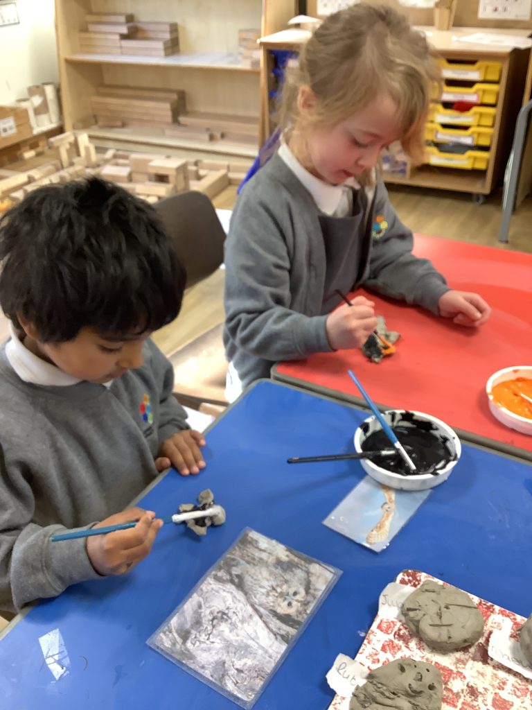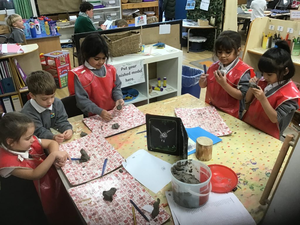 The children have looked carefully at the features of an owl and created some amazing clay sculptures, paintings, and crayon pictures.