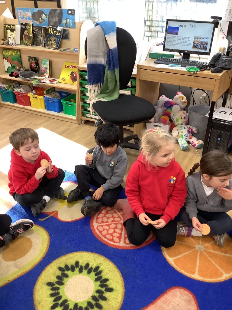 In our understanding the world lesson, we looked at what it means to belong to different faith communities. We talked about what it means to go to a church, a mosque, a temple, and a gurdwara, and what people do there. We discovered that a faith community is like a big family and that people from all faiths go to their special building to pray and worship. We also found that lots of faith communities share a special meal together. We had a class treat inspired by the Sikh tradition of langar.