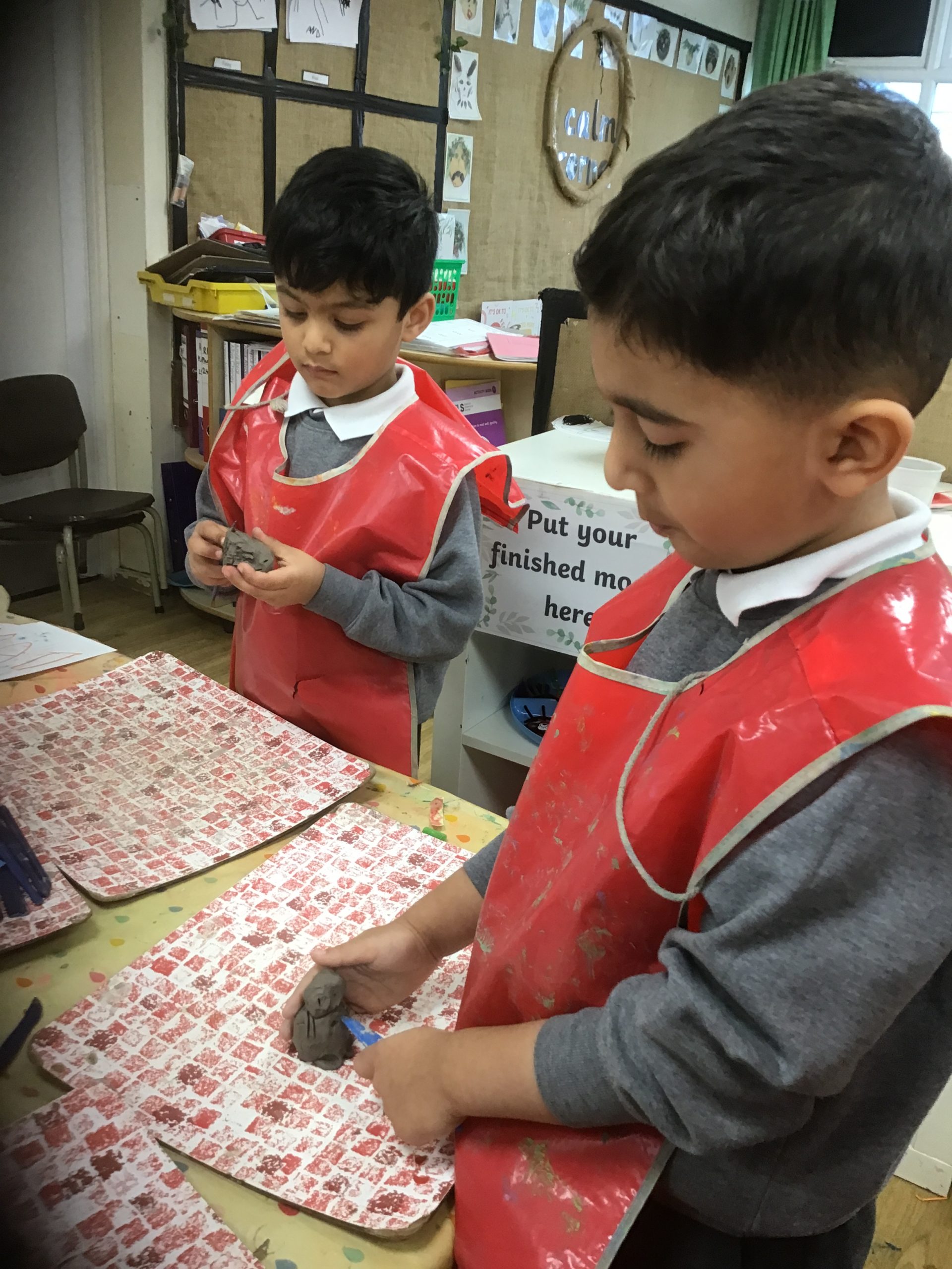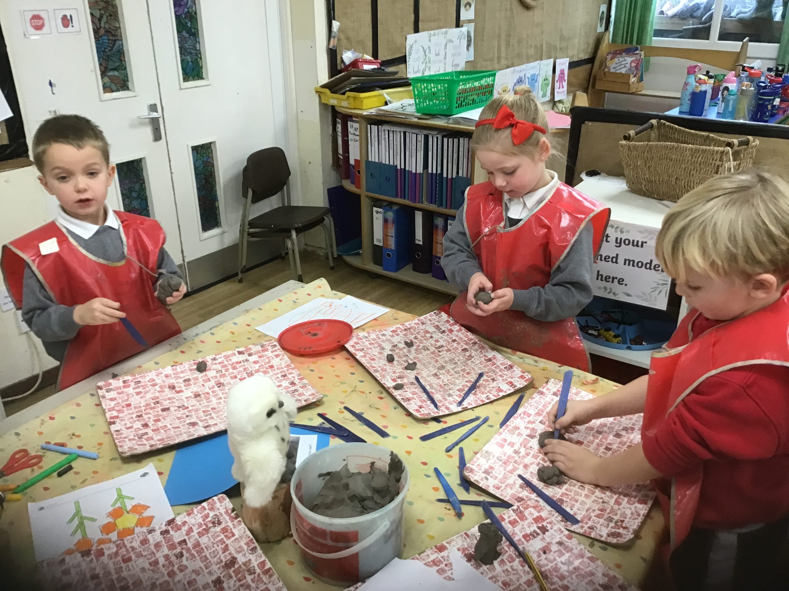 The children have looked carefully at the features of an owl and created some amazing clay sculptures, paintings, and crayon pictures.
