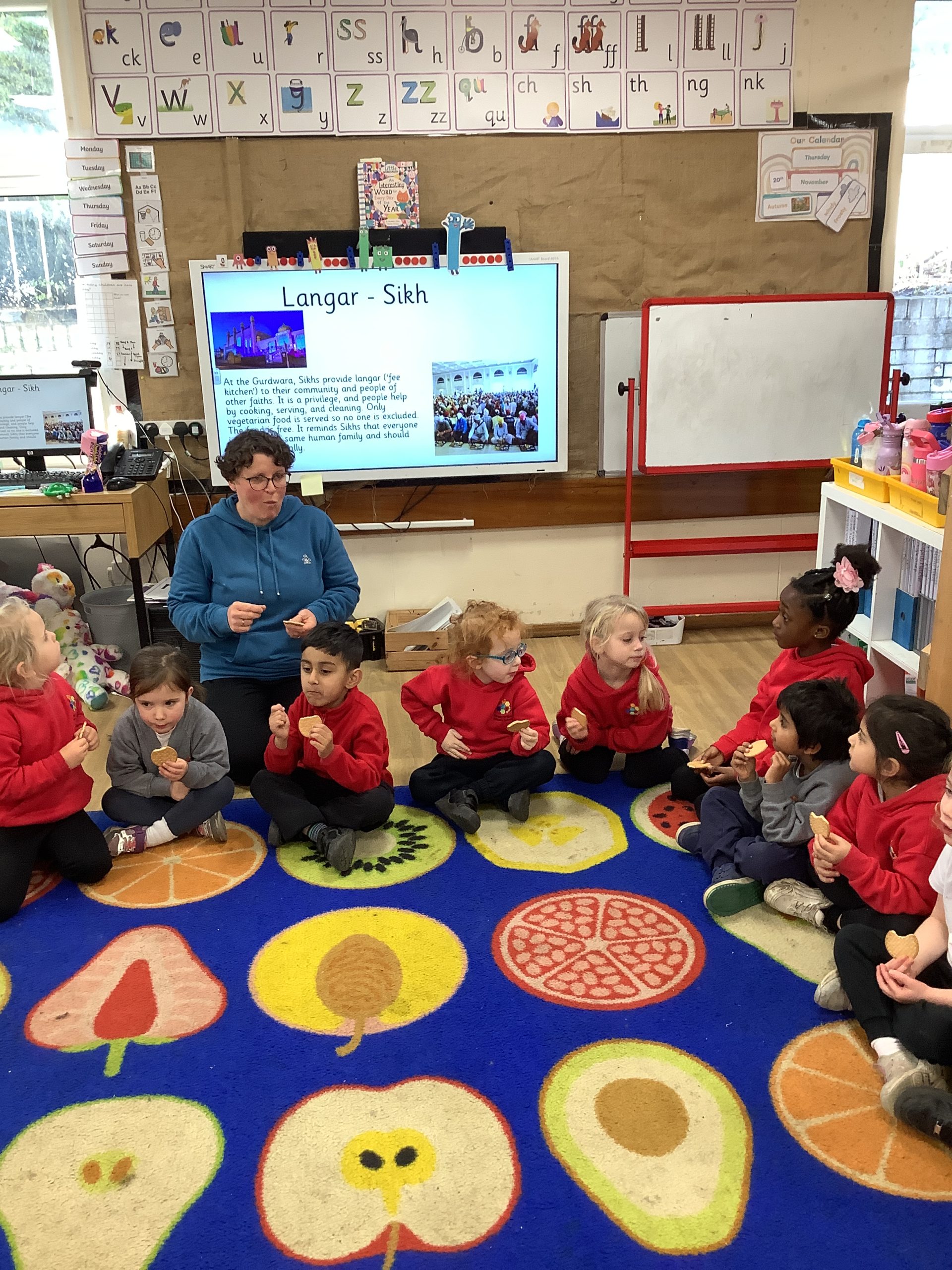 In our understanding the world lesson, we looked at what it means to belong to different faith communities. We talked about what it means to go to a church, a mosque, a temple, and a gurdwara, and what people do there. We discovered that a faith community is like a big family and that people from all faiths go to their special building to pray and worship. We also found that lots of faith communities share a special meal together. We had a class treat inspired by the Sikh tradition of langar.
