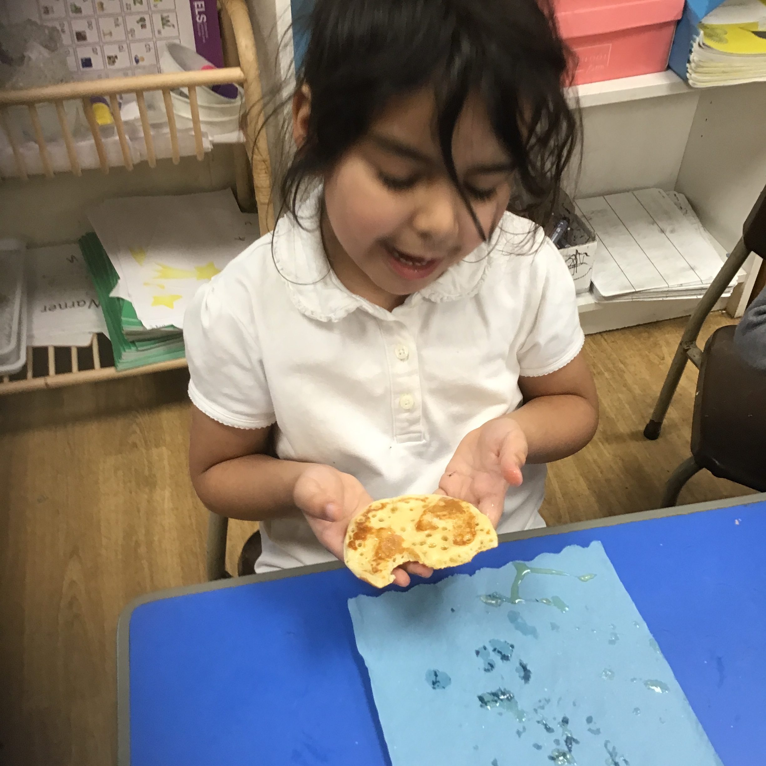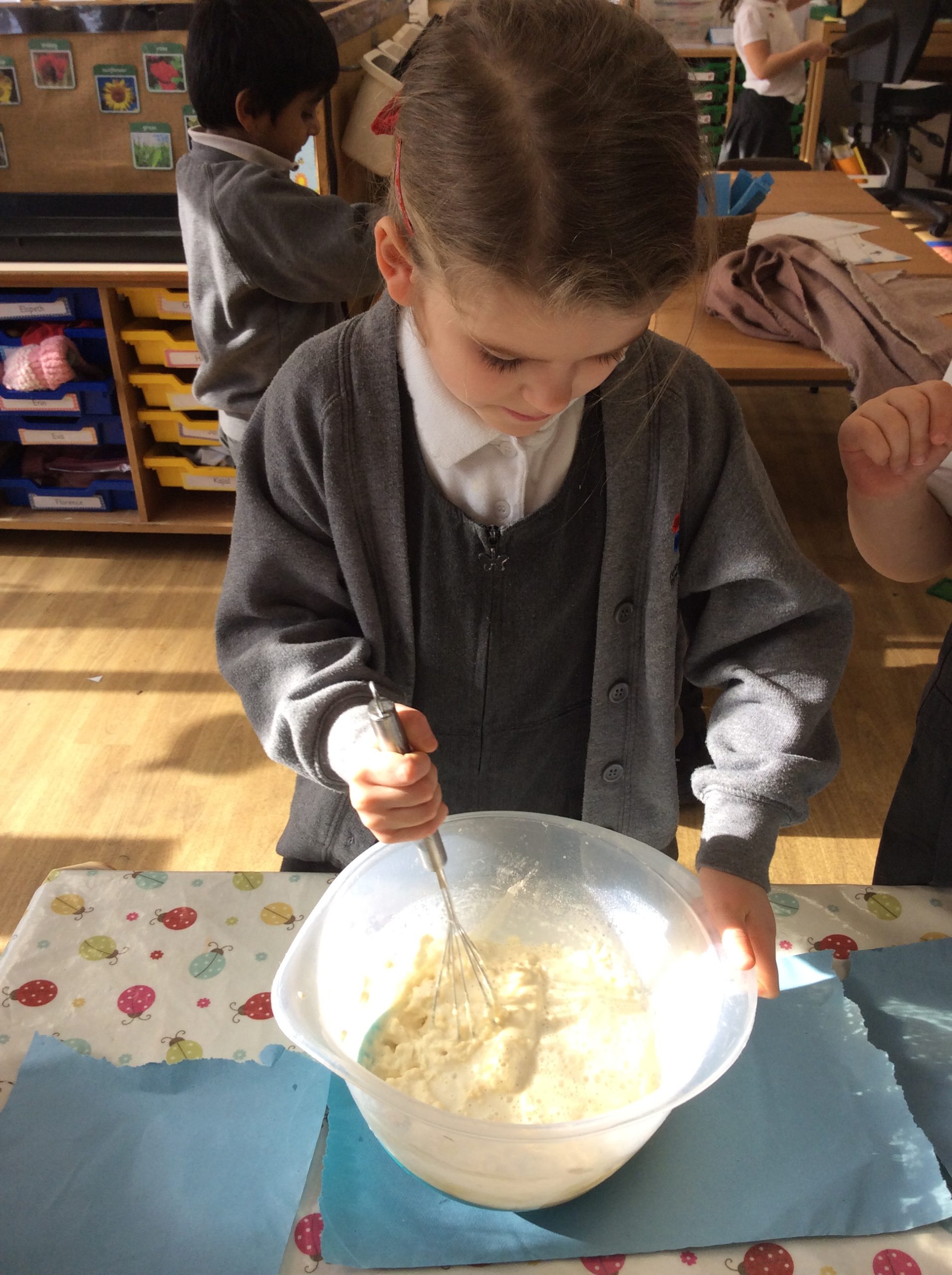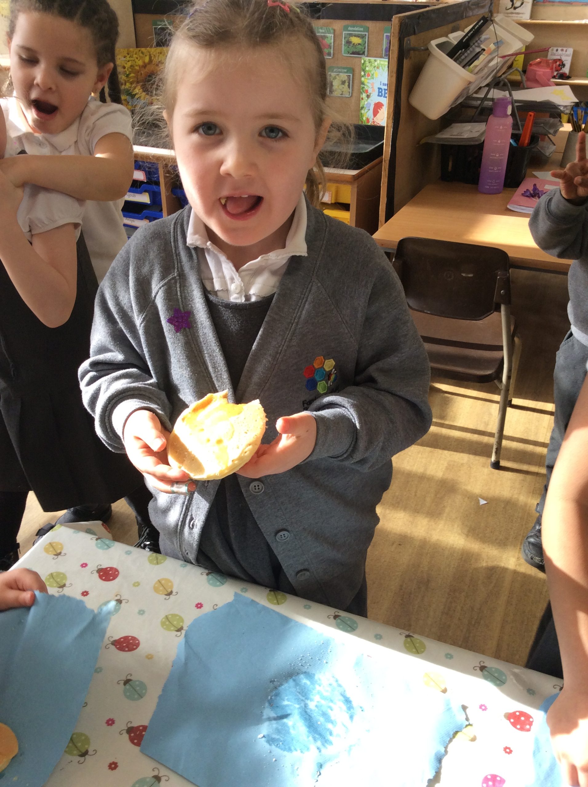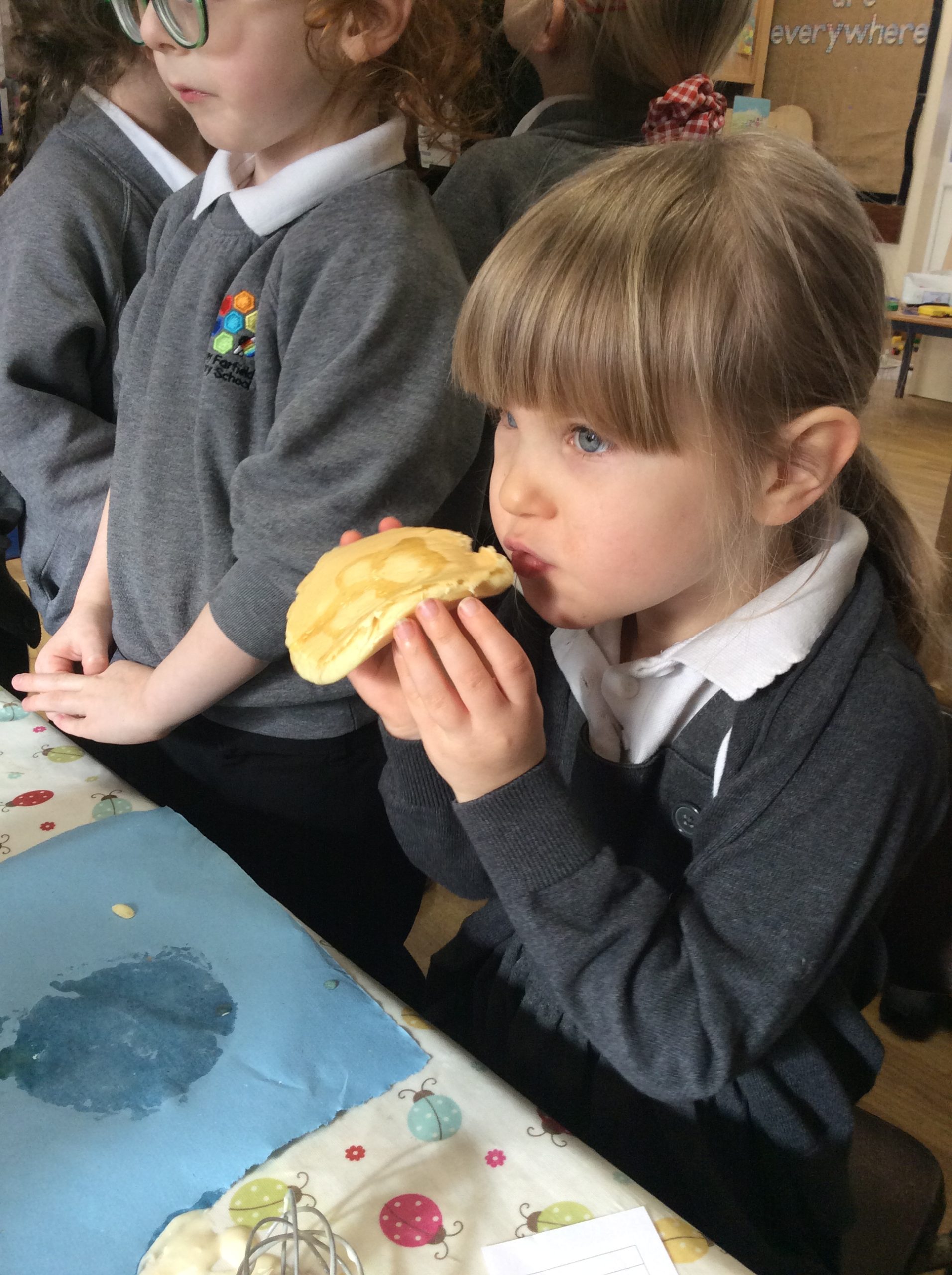 This week we celebrated ‘Shrove Tuesday’. We learnt that we celebrate ‘Pancake day’ because it was a way of Christians using up the ingredients before they gave them up for lent. The children used scales to measure out the ingredients and named the equipment used. They cooked their own pancake and chose their own topping. Both RKT and RPT ‘s favourite topping was syrup and sugar. We had a lot of fun tossing the pancakes and enjoying the book ‘Mr Wolf’s Pancakes’.
