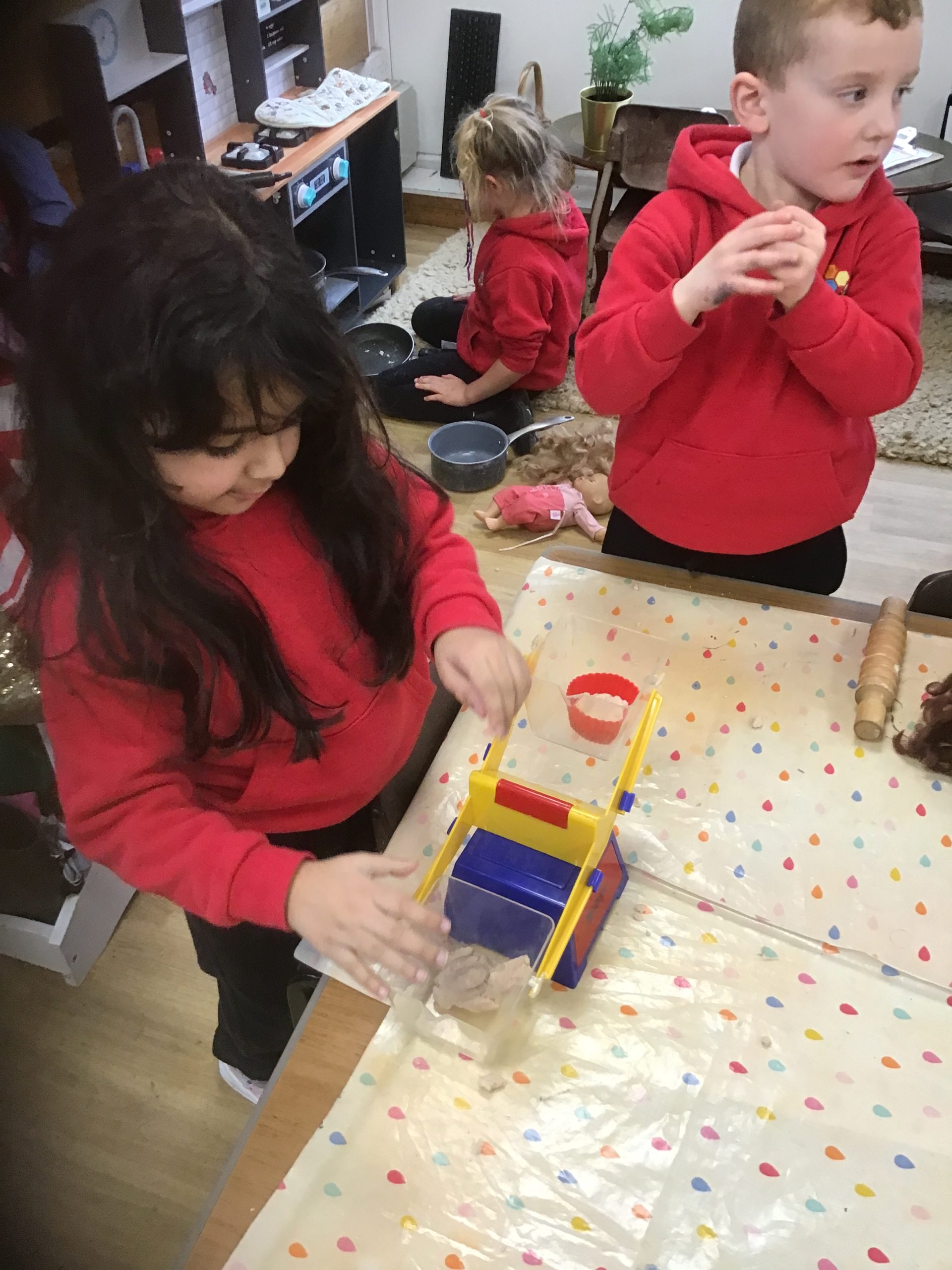 This week we have focused on mass. The children have compared ingredients and objects using the words heavier and lighter. They have explored balance scales and enjoyed creating some human balance scales too! Can they find objects at home to compare?