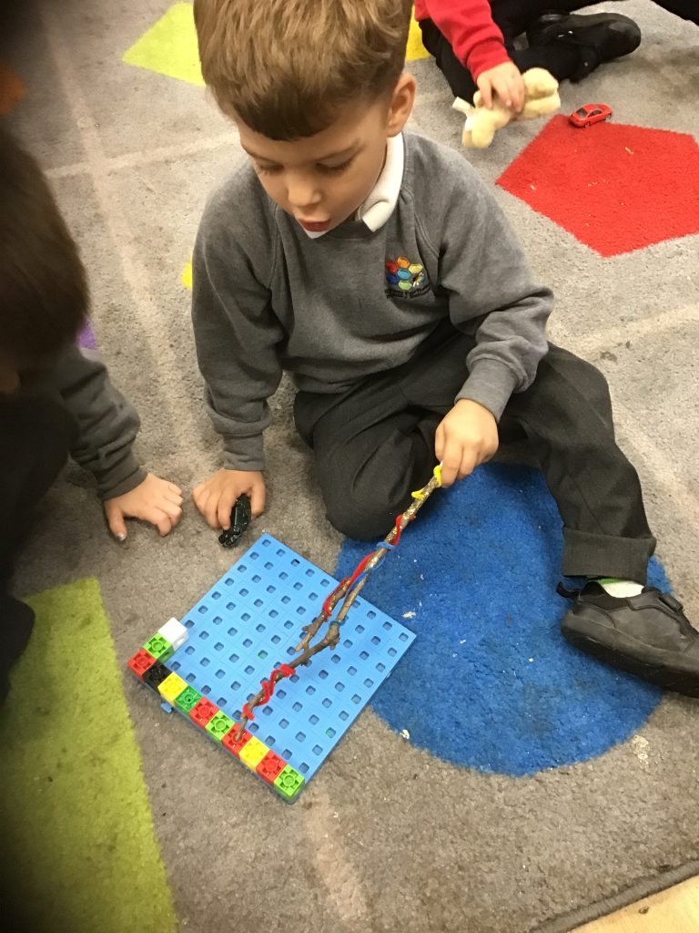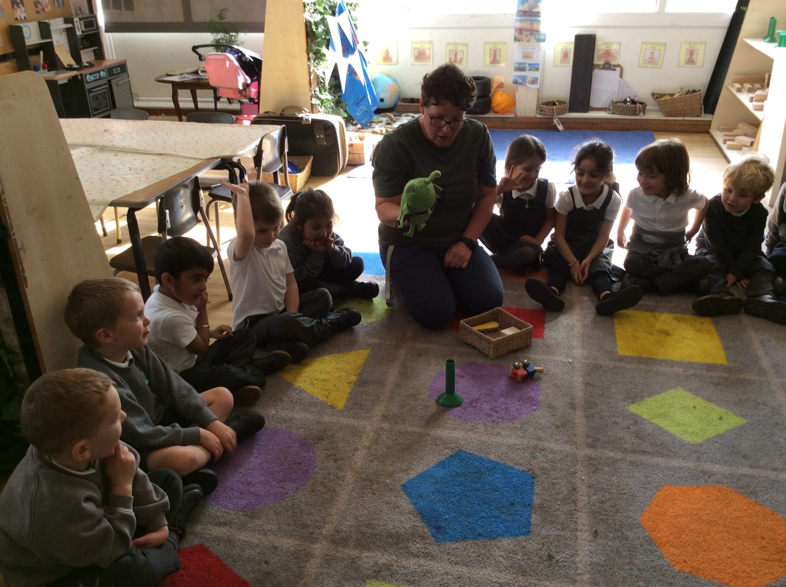 We have been been practicing counting. The children have enjoyed singing some number songs like 1, 2, 3, 4, 5 Once I Caught a Fish Alive. We also met our friend Gertrude (puppet) she isn’t very good at counting so we have been helping her! We have shown her how to put objects in a line and count them slowly by pointing to each one.