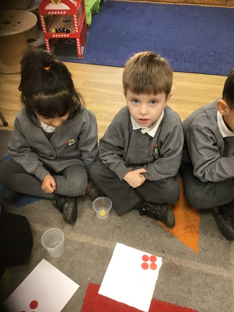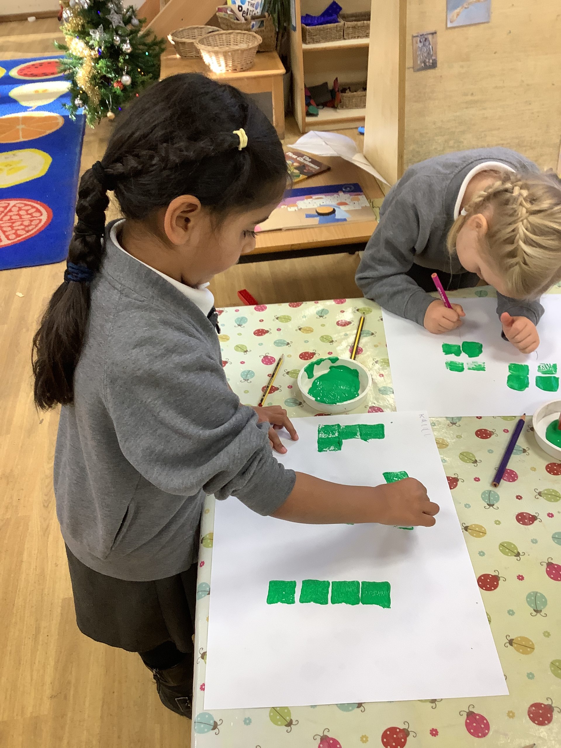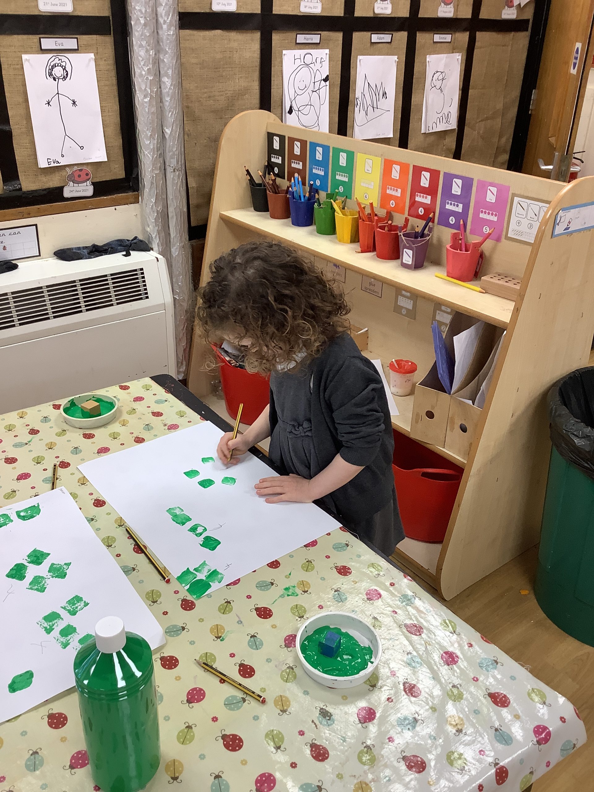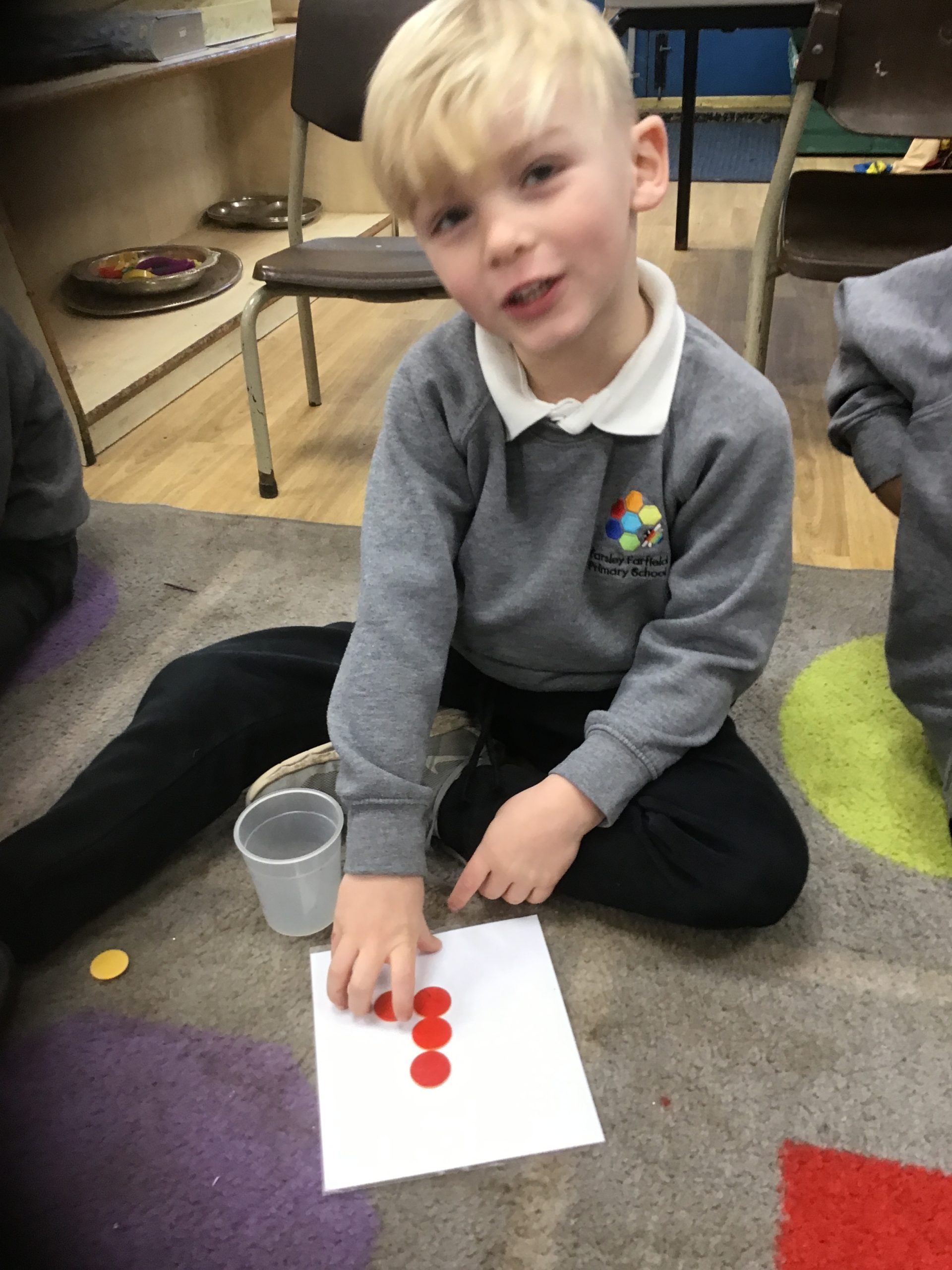 This week, the children have built on their understanding of the composition of numbers by investigating the composition of 3, 4 and 5. Composing and de-composing numbers involves the children investigating part–part–whole relations, e.g. seeing that 3 can be composed of 1 and 2. They enjoyed watching an episode of Numberblocks where they were on a stampoline. The children had fun making their own ‘stampoline’ pictures.