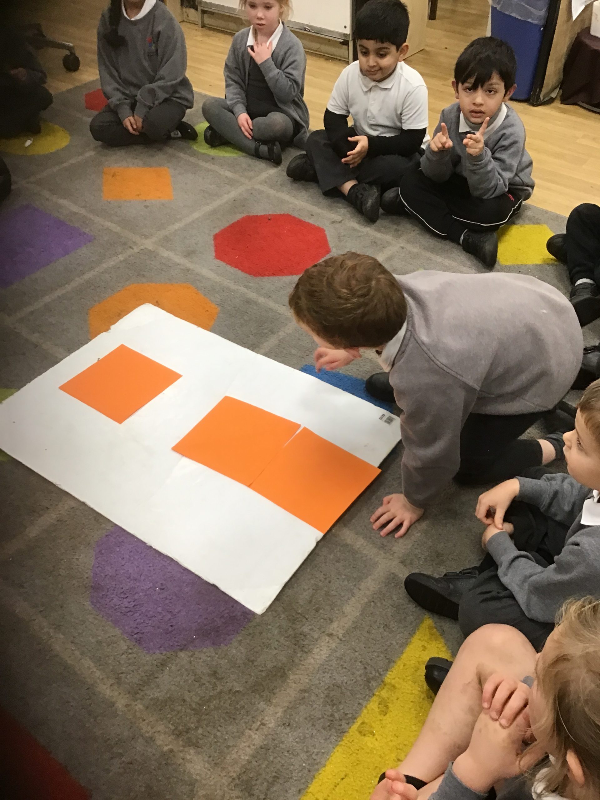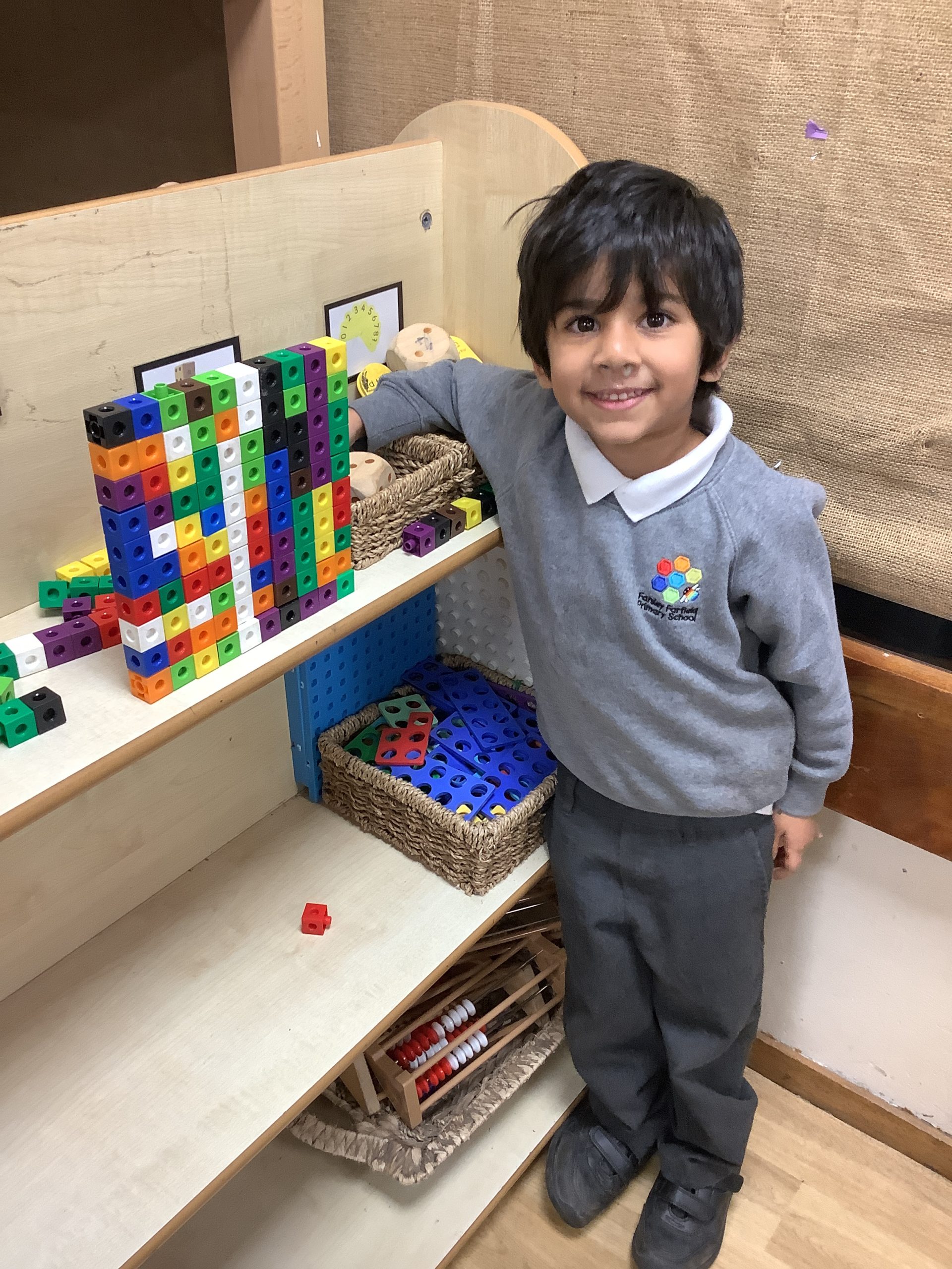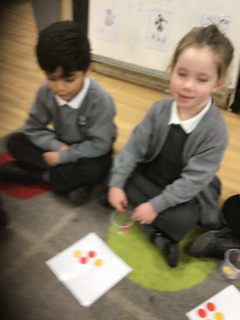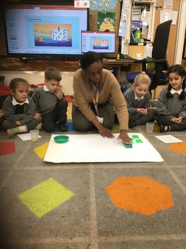 This week, the children have built on their understanding of the composition of numbers by investigating the composition of 3, 4 and 5. Composing and de-composing numbers involves the children investigating part–part–whole relations, e.g. seeing that 3 can be composed of 1 and 2. They enjoyed watching an episode of Numberblocks where they were on a stampoline. The children had fun making their own ‘stampoline’ pictures.