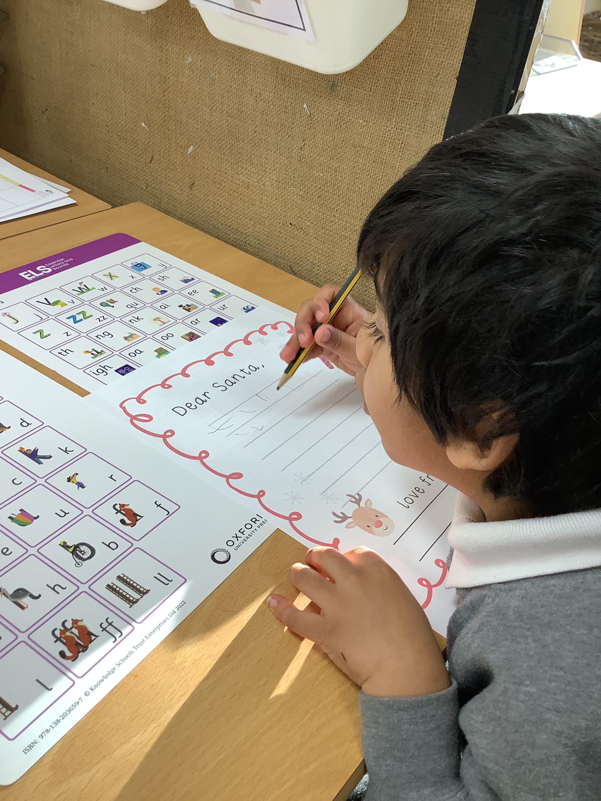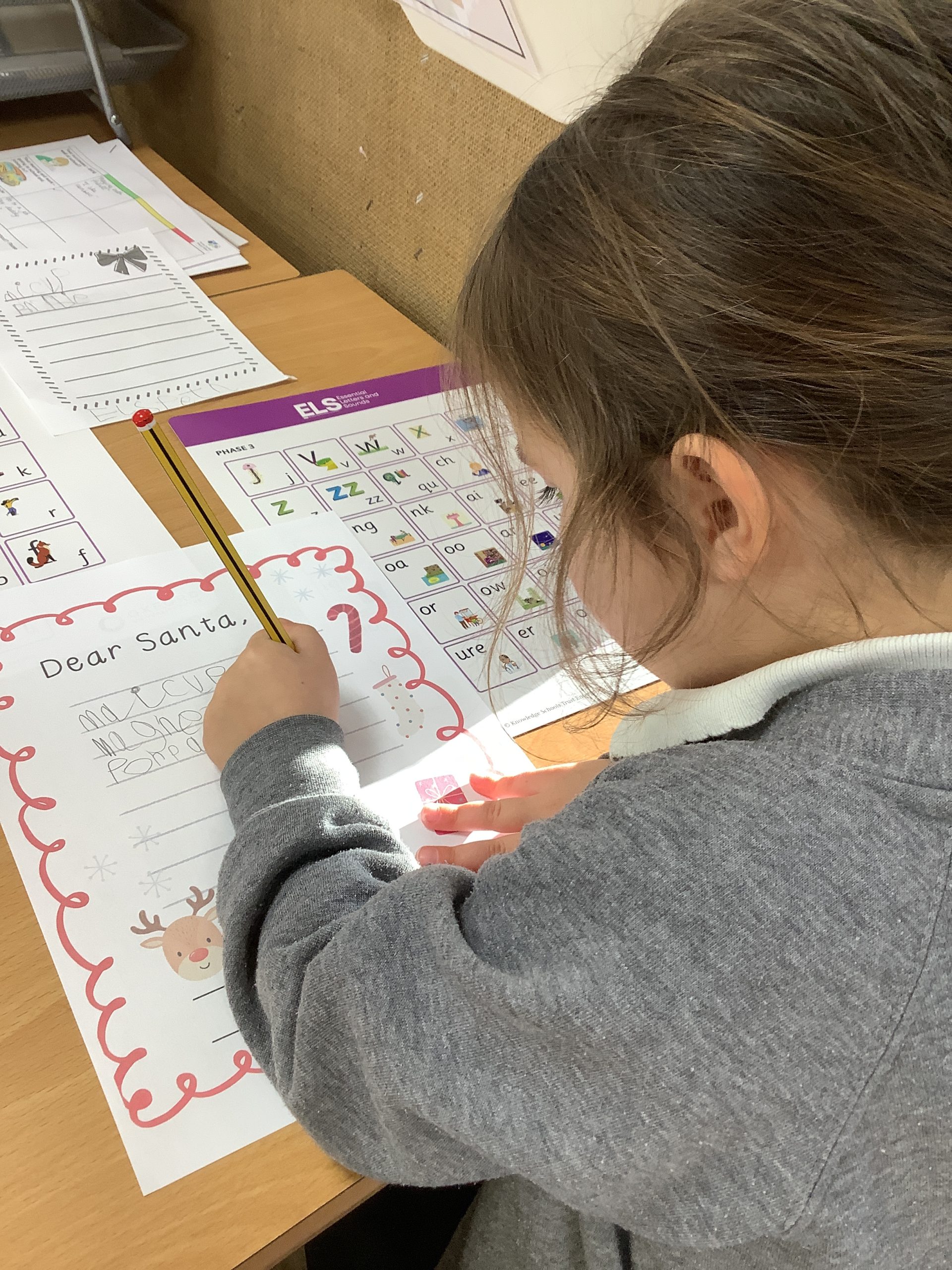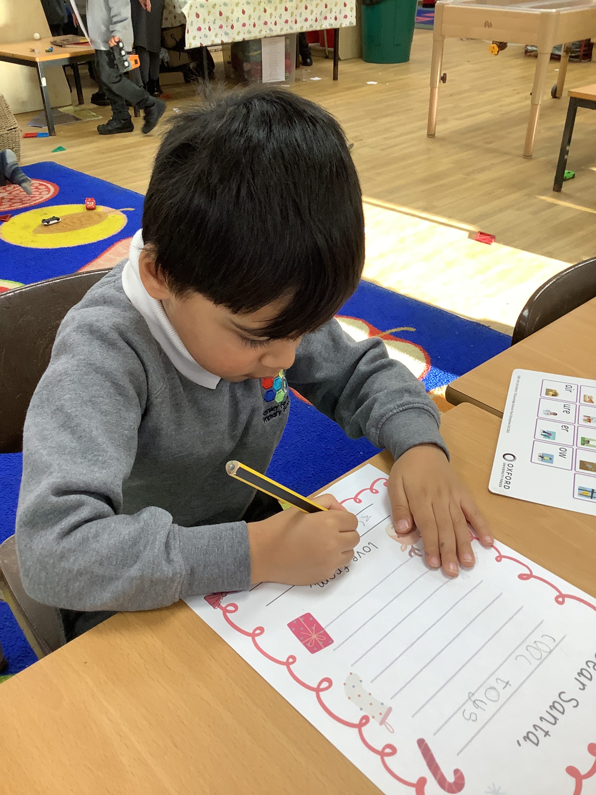 The children are busy writing their Christmas lists! They have done some really good sounding out, blending and formation of the letters.