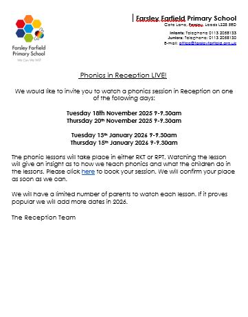There is still time to sign up for watching a live phonics lesson. We have limited places on Tuesday 18th November and Thursday 20th November. Plenty of spaces left in January! Please get in touch to book your place.