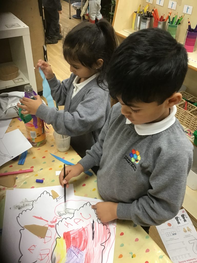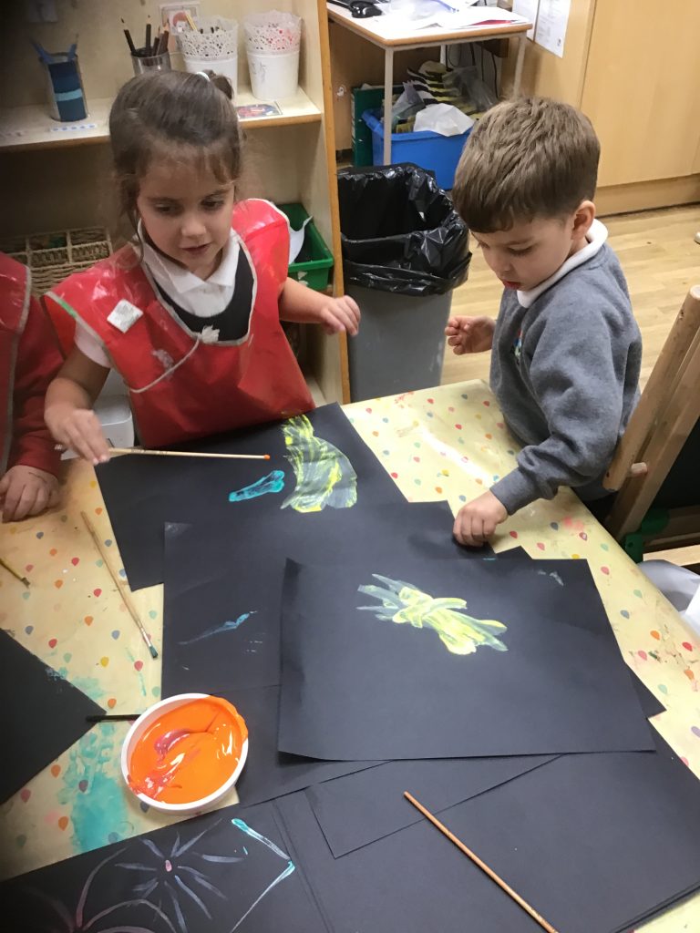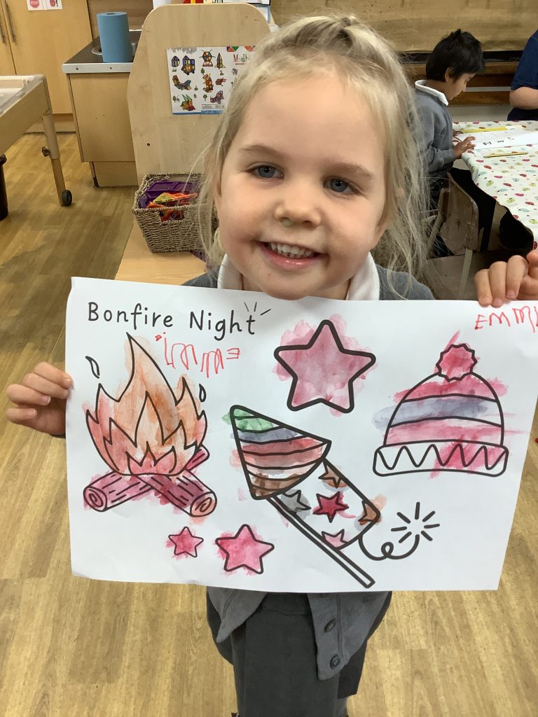 This week we have been talking about Bonfire Night and why it is celebrated on the 5th November. We have had lots of fun making rockets, painting Bonfire night pictures and creating firework pictures using coloured pastels.