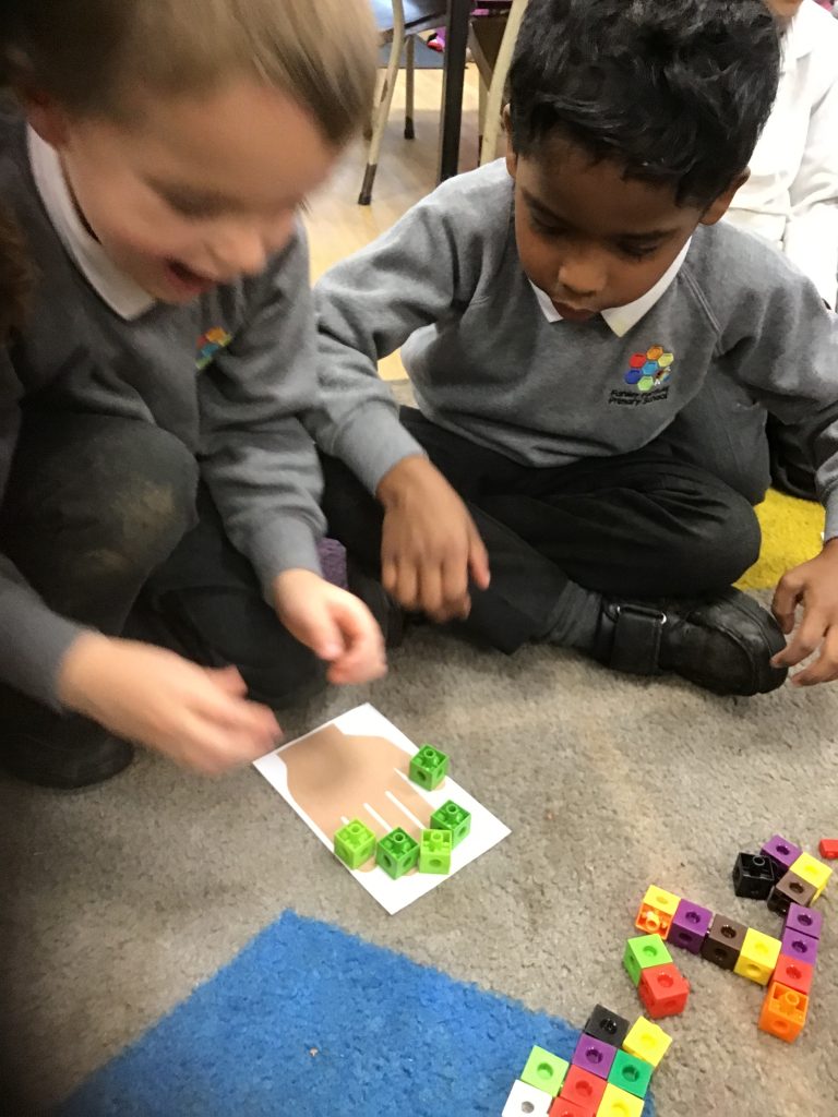 The key focus this week has been deepening their understanding of 5. The children have represented 5 in different ways using their fingers and a Hungarian number pattern.