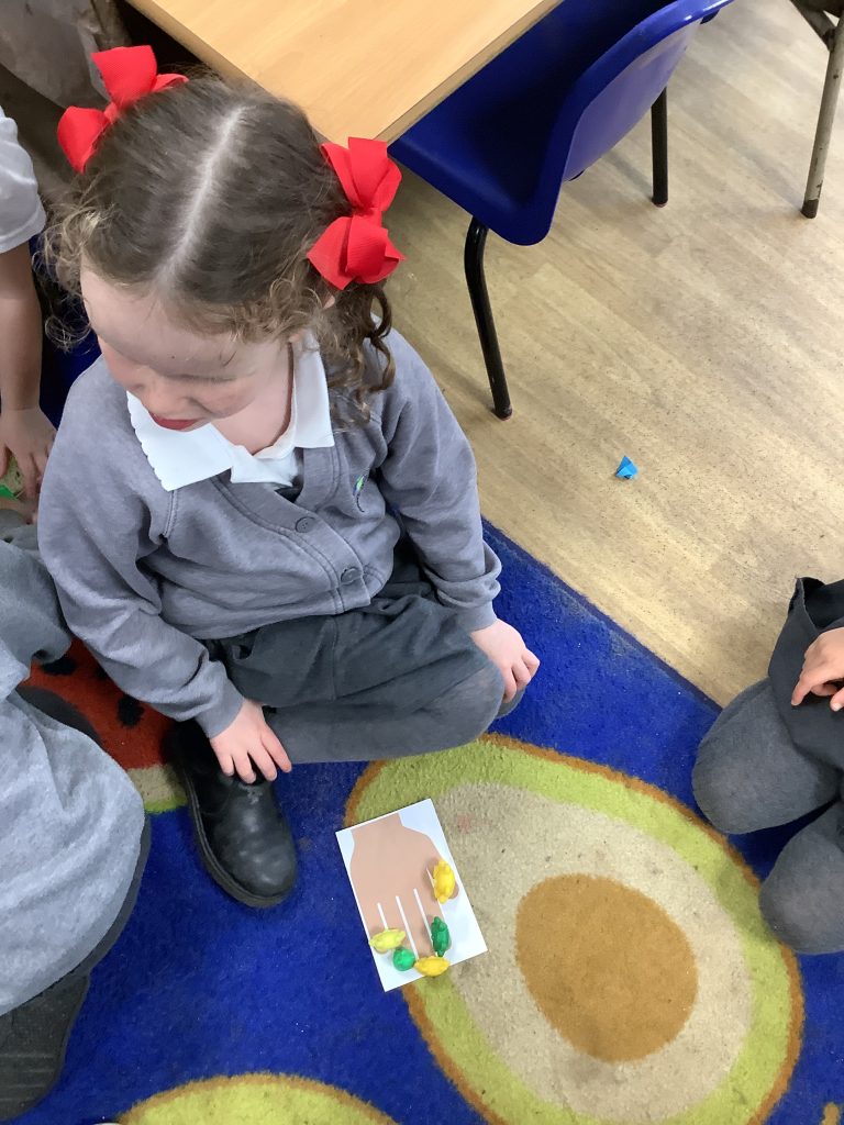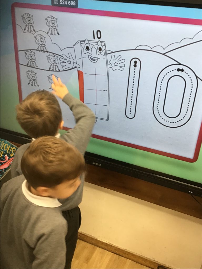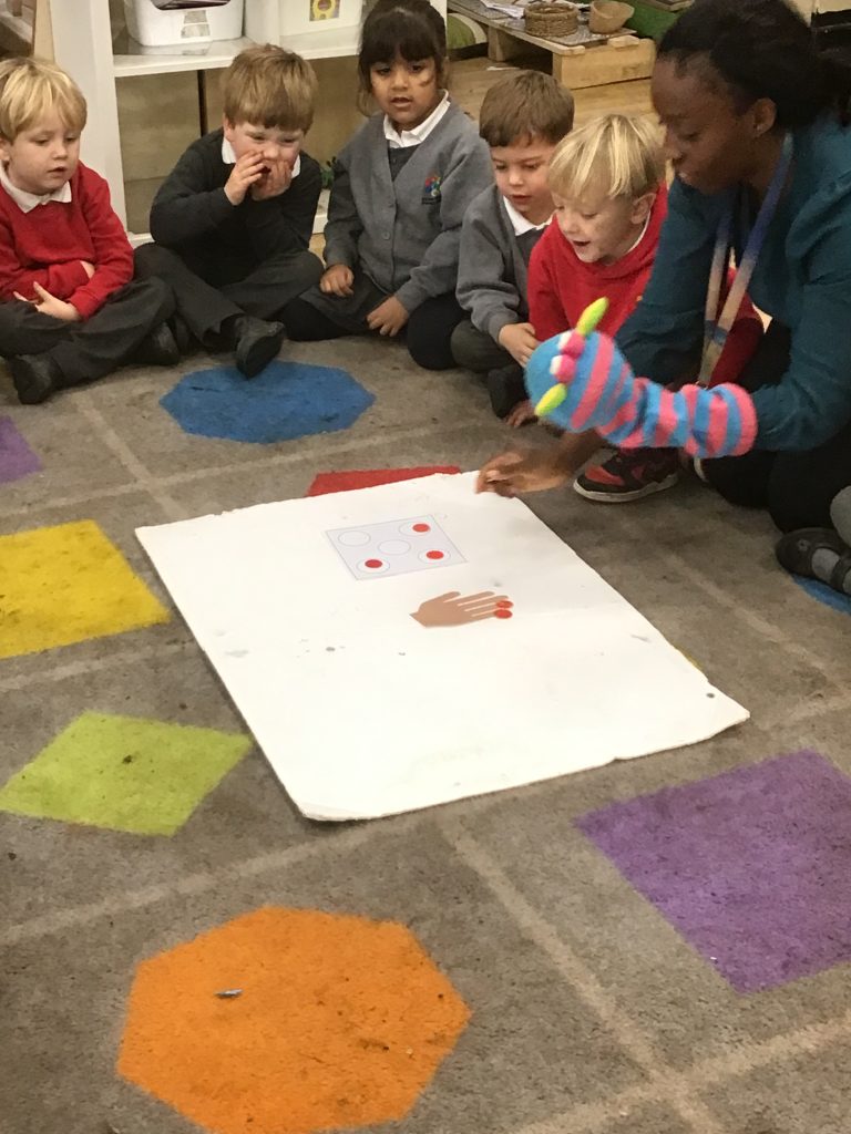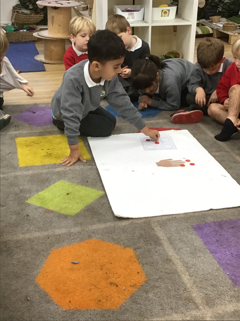 This week the children have practised the counting principles with a focus on cardinality (how many objects there are altogether). They have also practised their 1:1 correspondence skill, by counting numbers at the same time as moving or tagging objects.