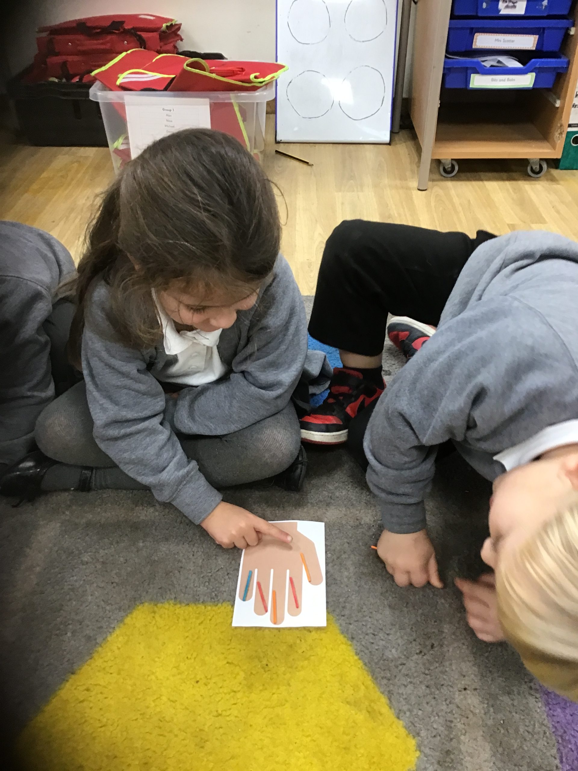 The key focus this week has been deepening their understanding of 5. The children have represented 5 in different ways using their fingers and a Hungarian number pattern.