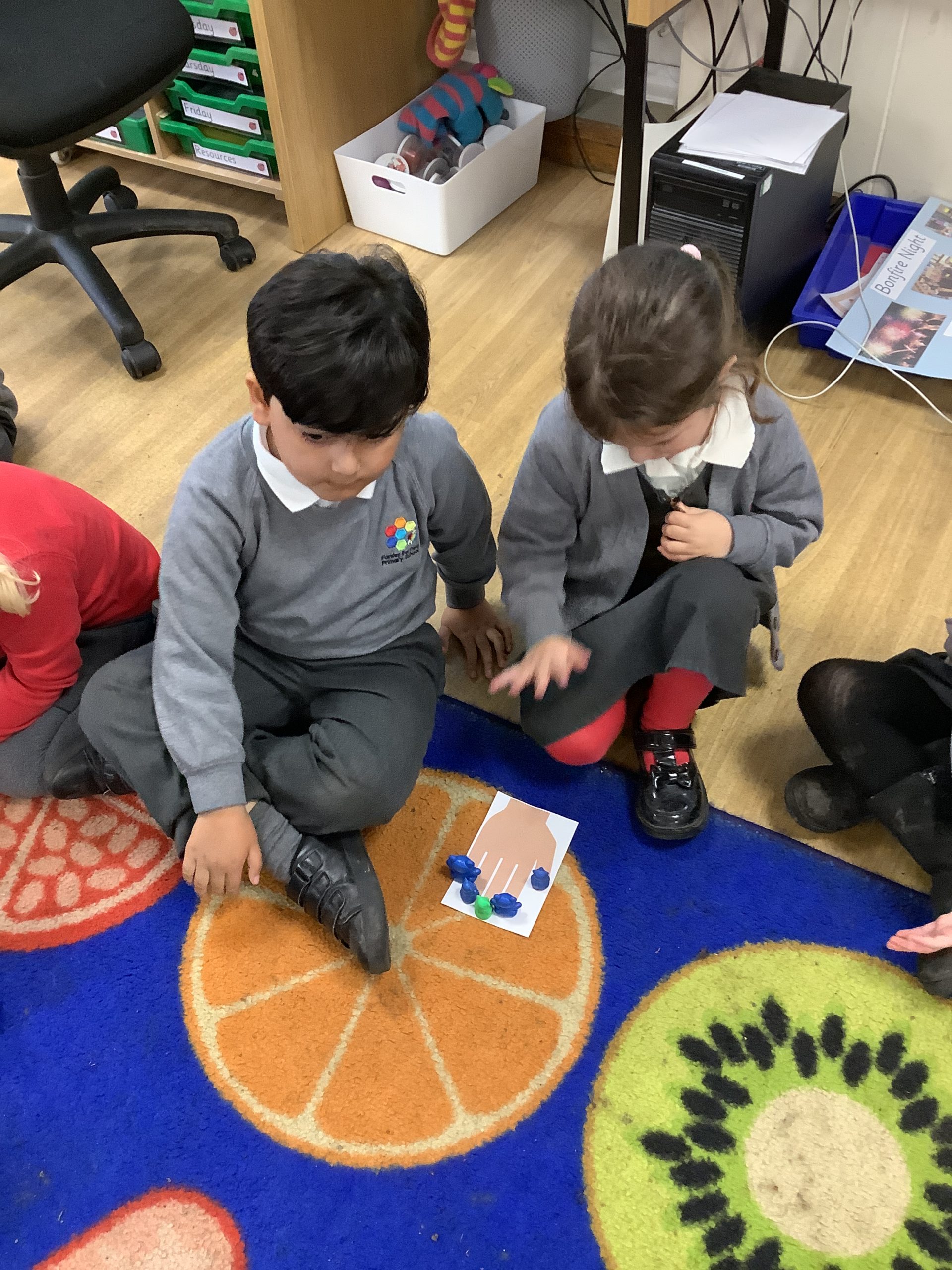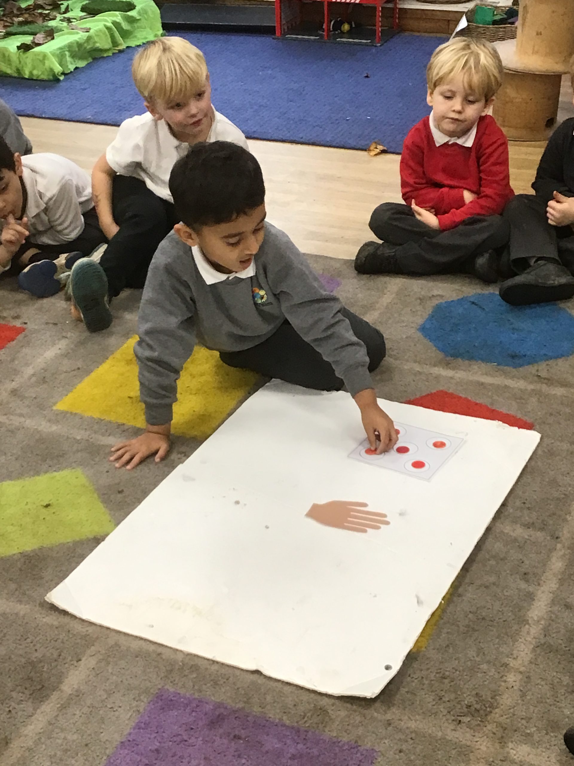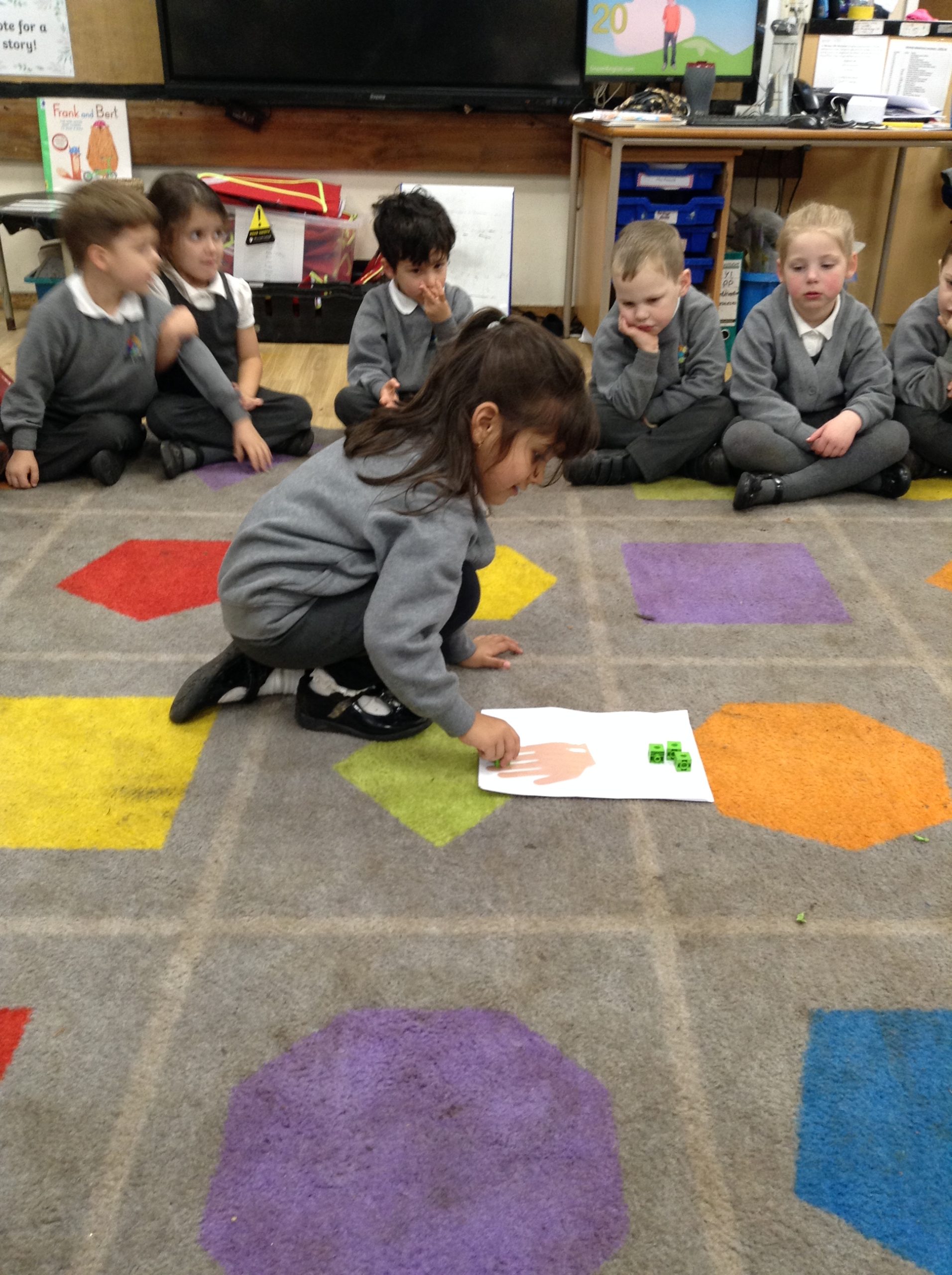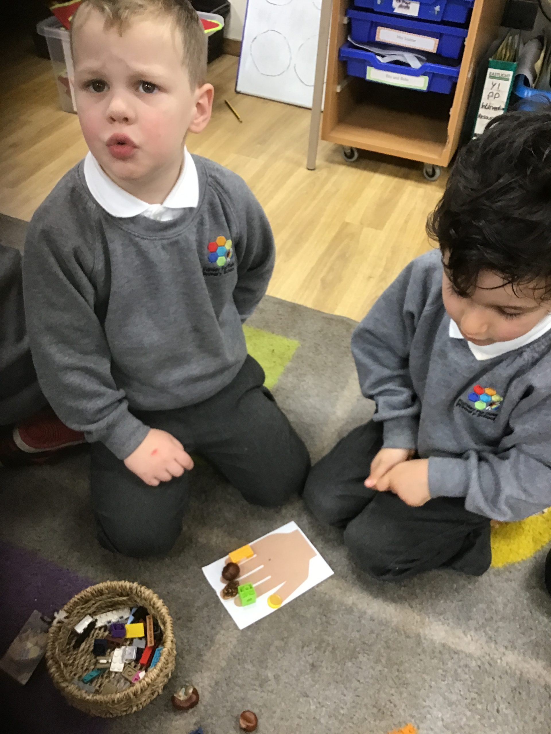 This week the children have practised the counting principles with a focus on cardinality (how many objects there are altogether). They have also practised their 1:1 correspondence skill, by counting numbers at the same time as moving or tagging objects.
