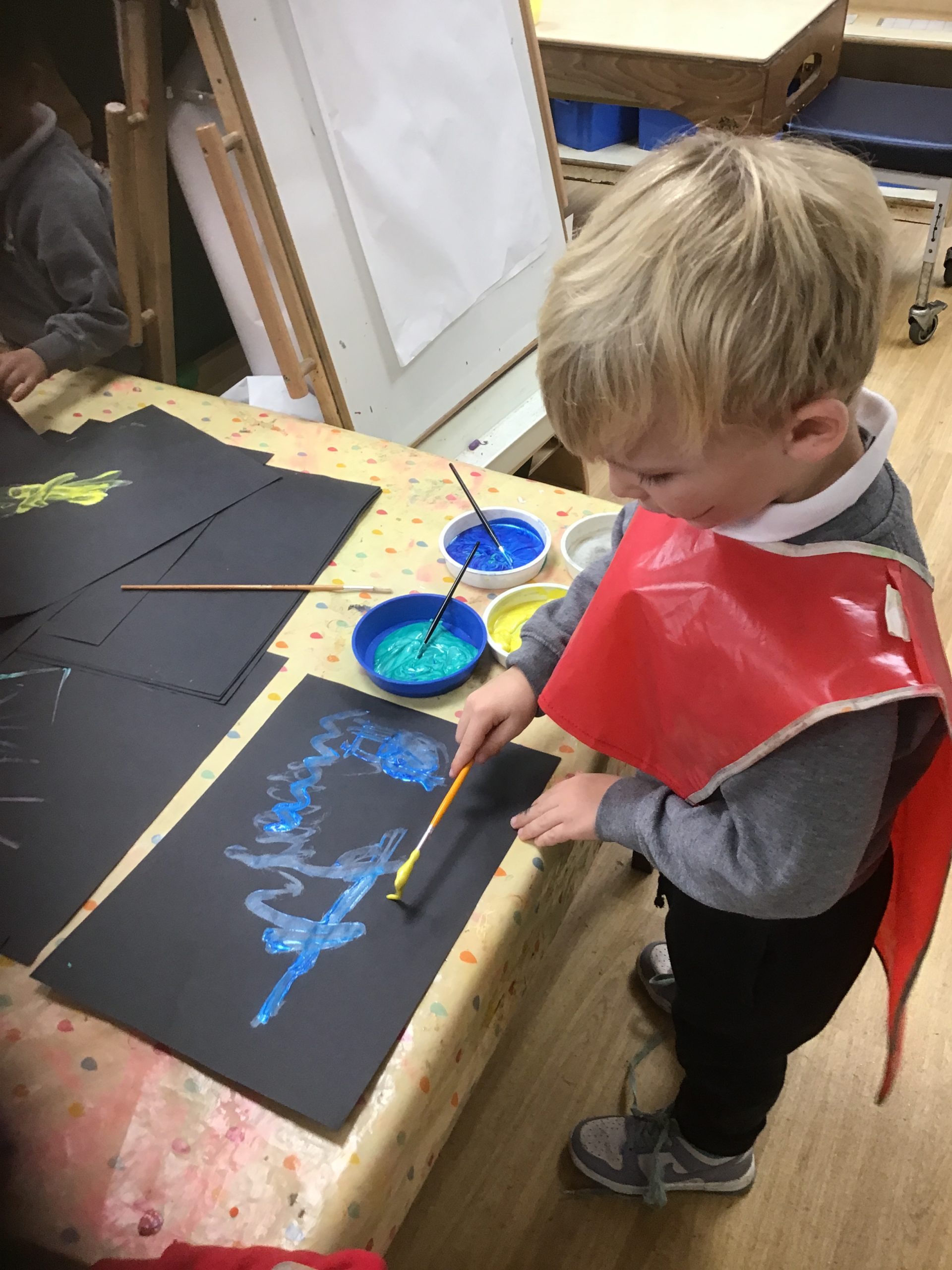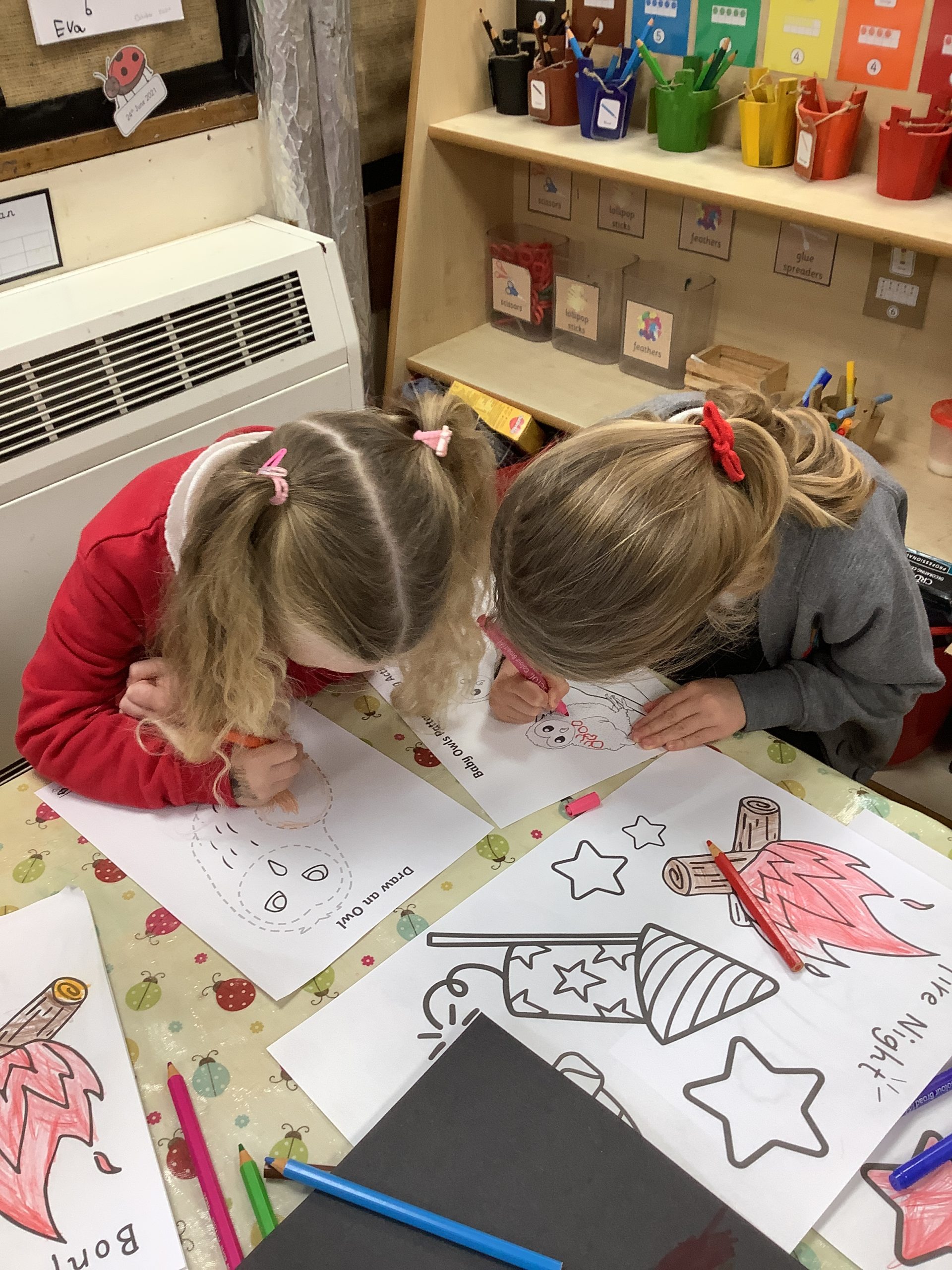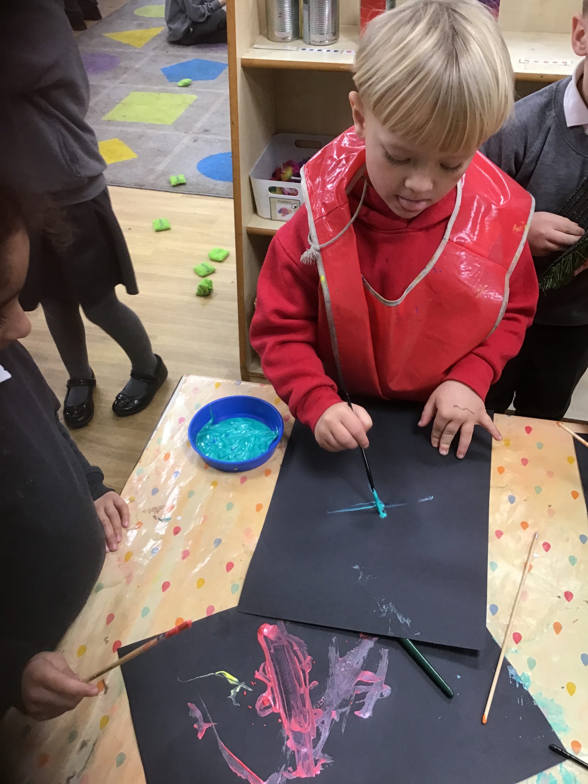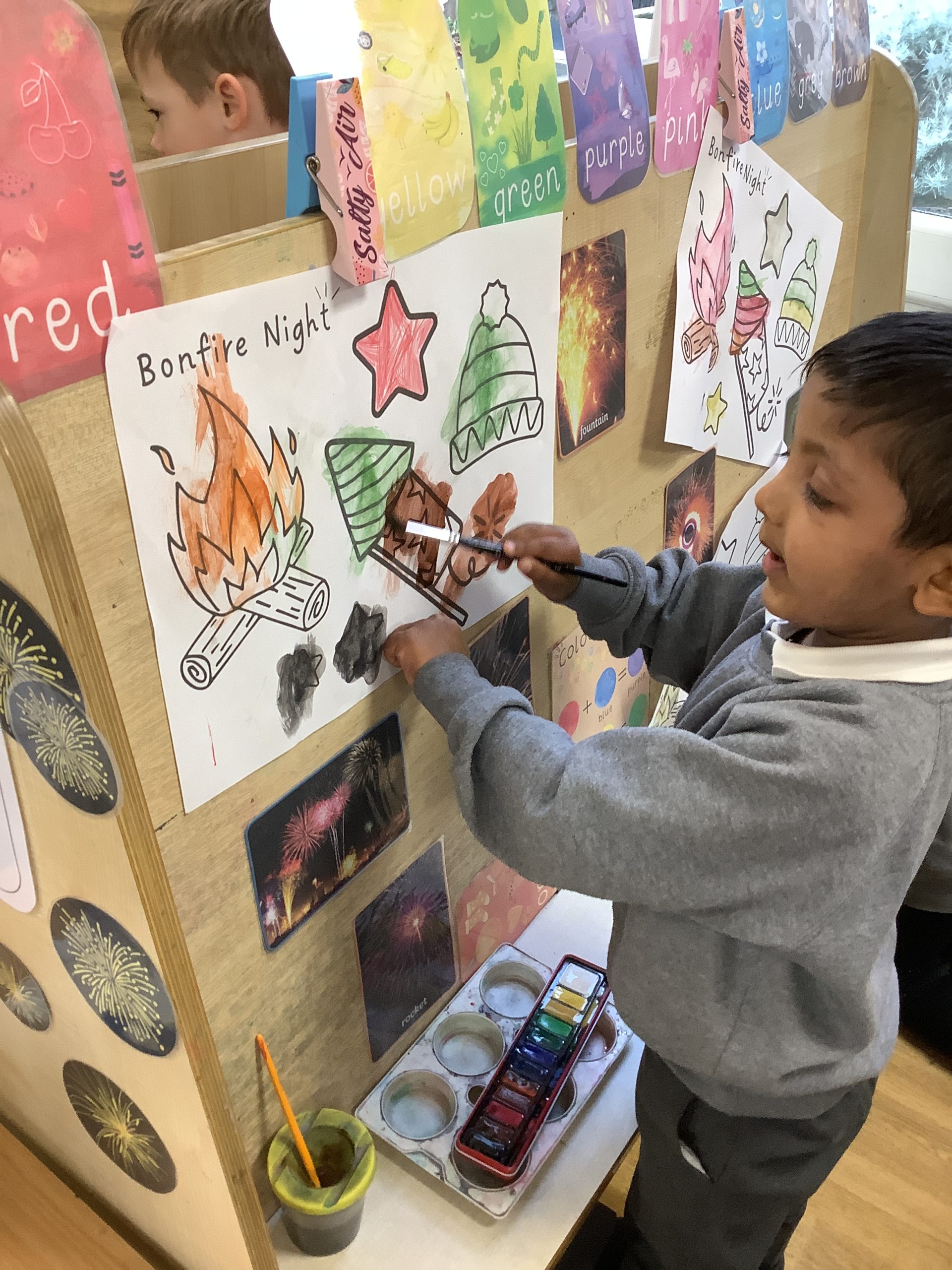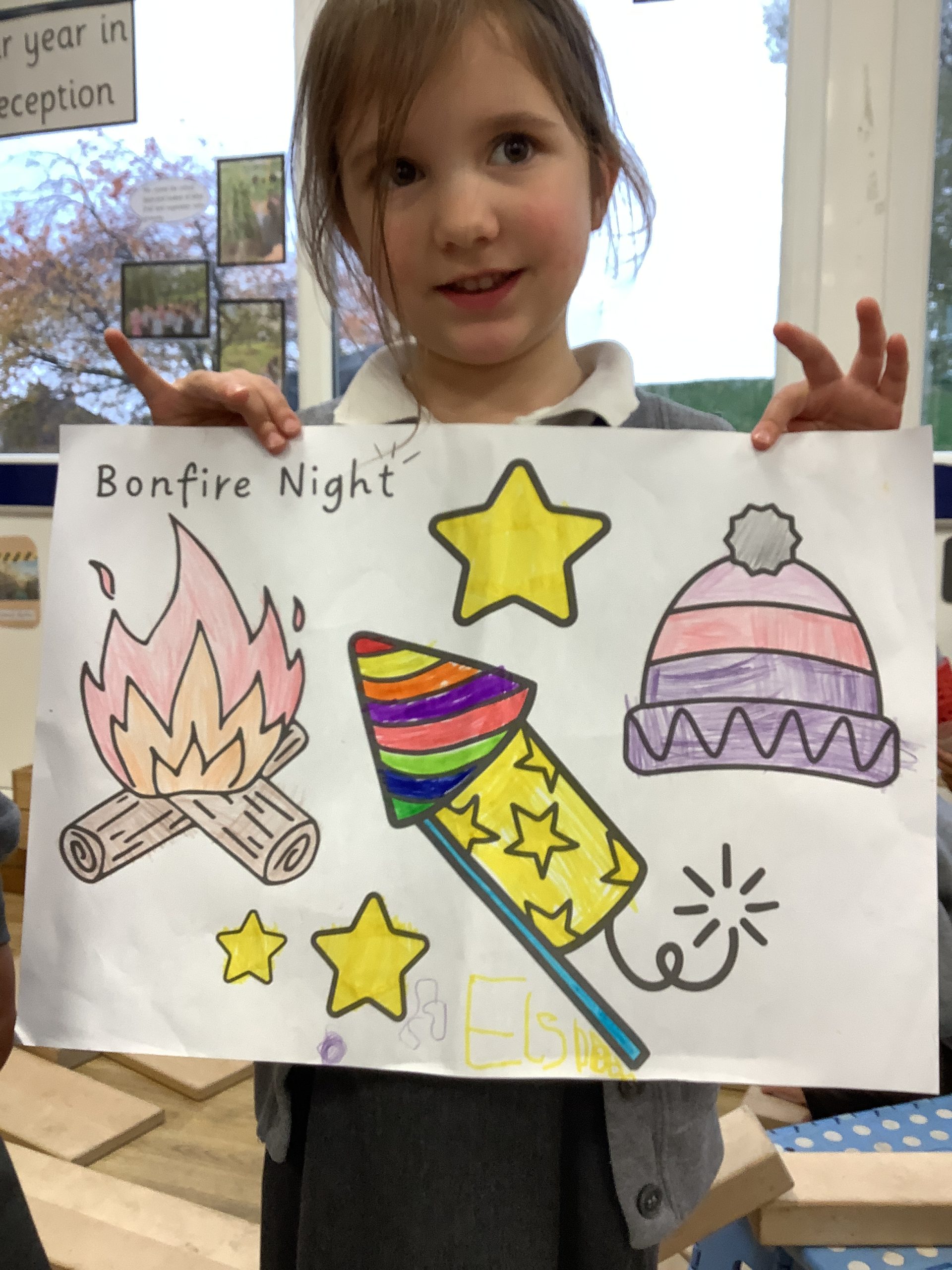 This week we have been talking about Bonfire Night and why it is celebrated on the 5th November. We have had lots of fun making rockets, painting Bonfire night pictures and creating firework pictures using coloured pastels.
