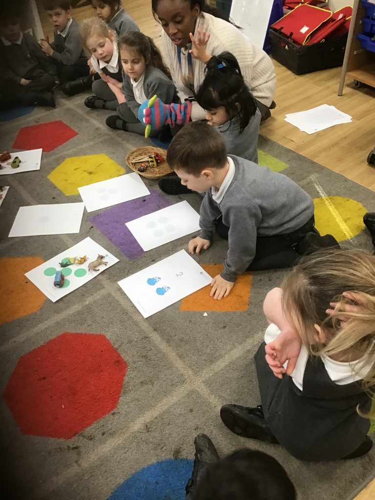 This week the children have continued to engage with counting activities. They have worked hard to match collections of objects to their representations. We have discussed the concept of cardinality and the children have developed their understanding of it being the last number in the count which tells us ‘how many’ things there are altogether. The children are beginning to count more abstract things such as claps and jumps.