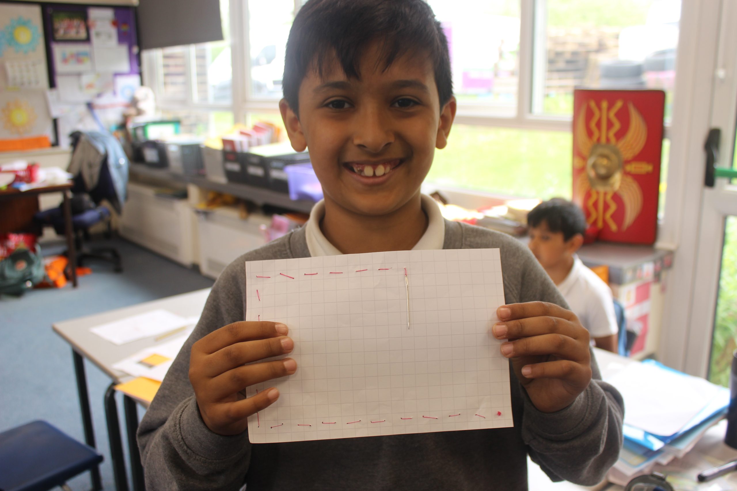 The children have been very excited to start their new D.T project – making Roman-inspired purses. This week, we thought about the design of our purse and we practised the running stitch. The children did so well with this, persevering and waiting patiently for help with threading needles and tying knots, taking such care with their stitches and helping each other where they could. We are all looking forward to making our purses next week!