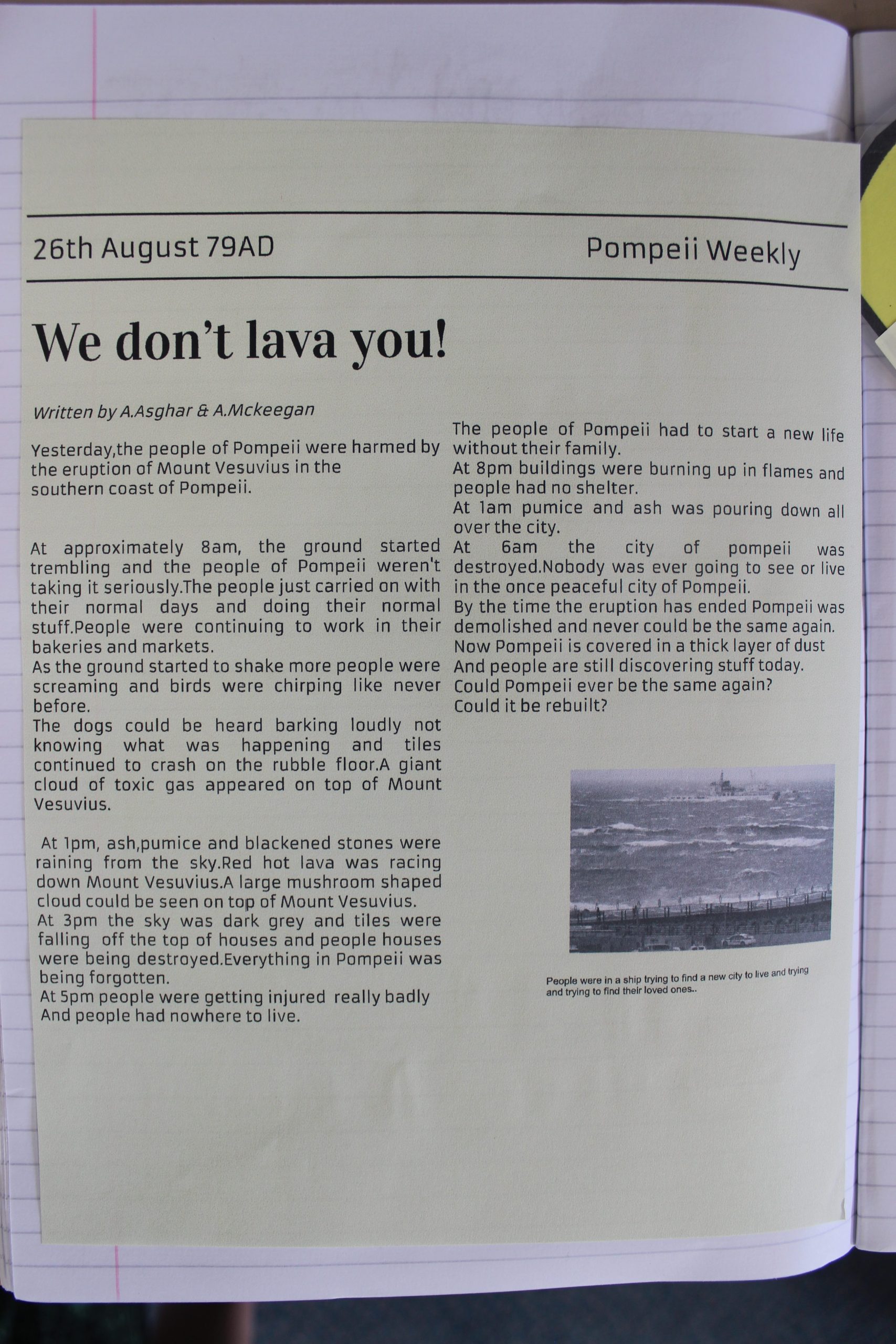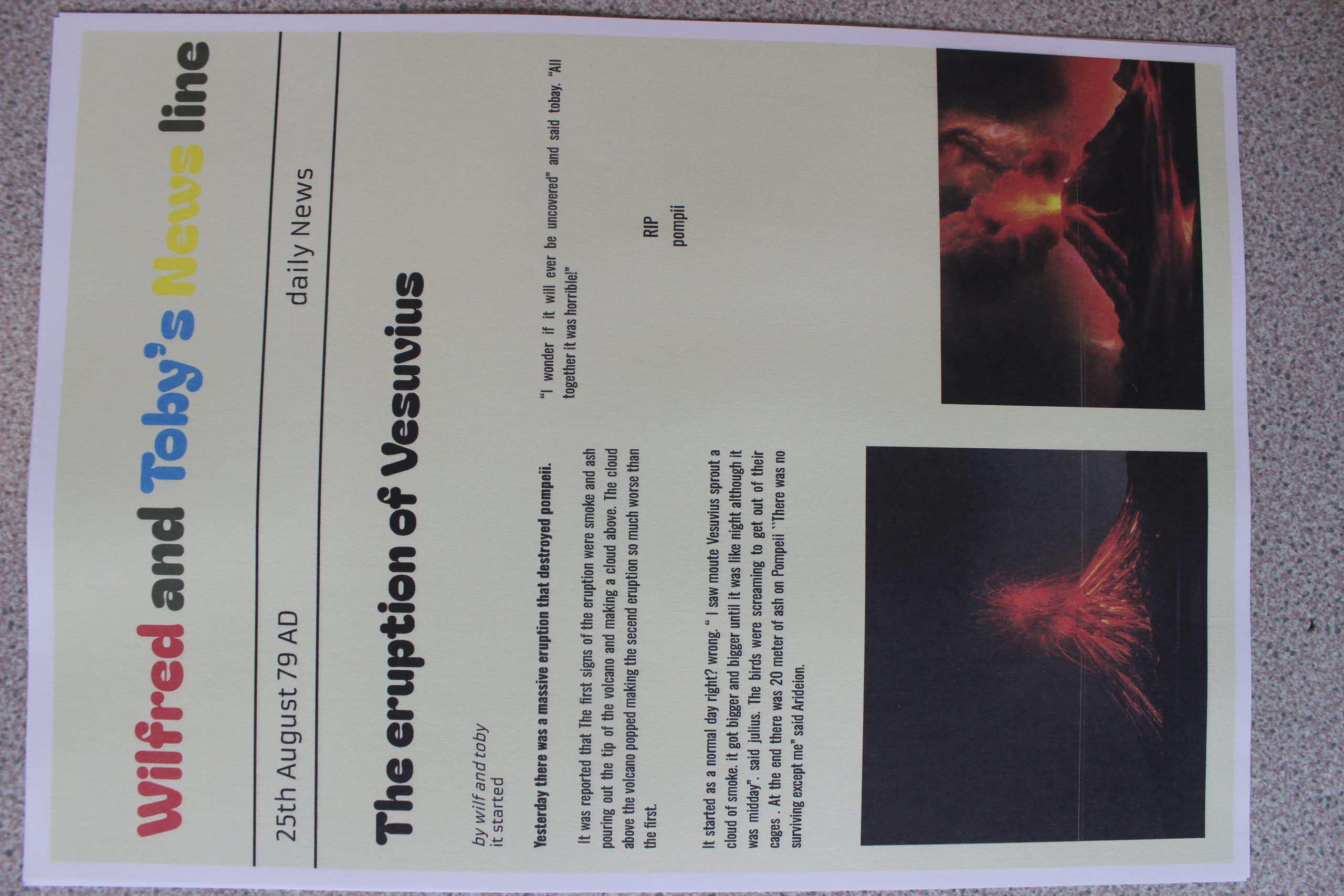 In English, the children finished writing their newspaper reports about Pompeii. They did a super job and tried really hard to use the features we had talked about.