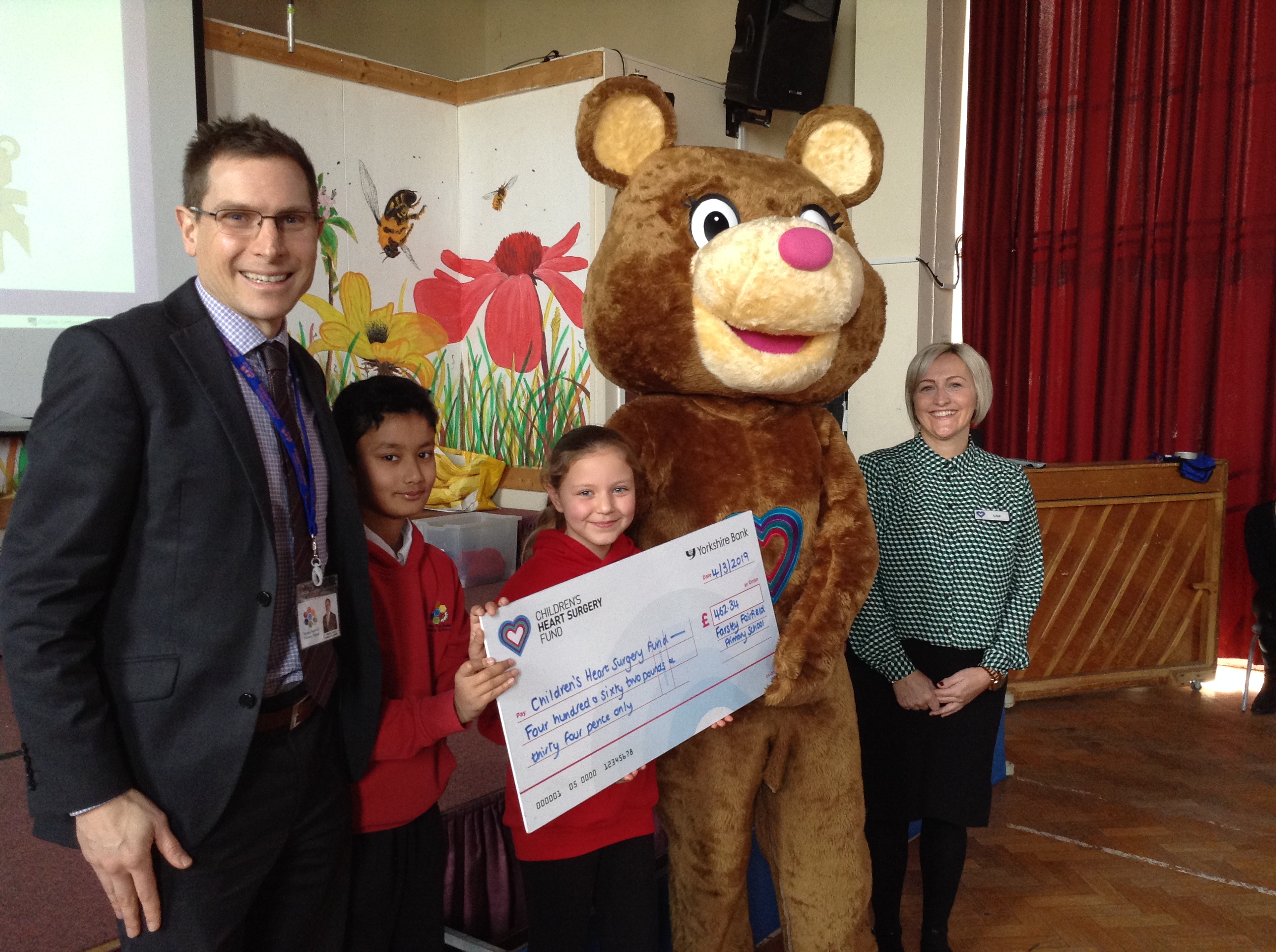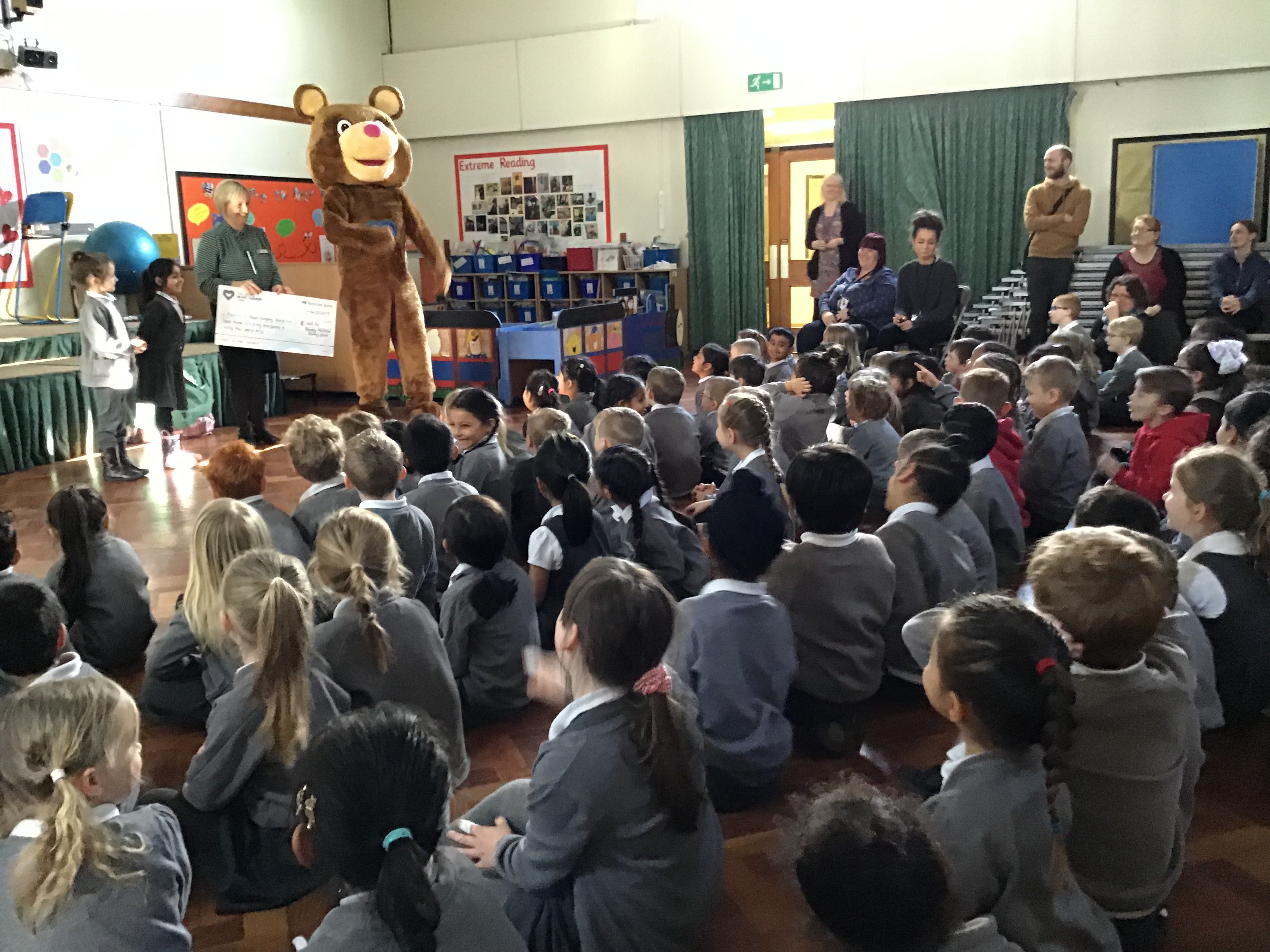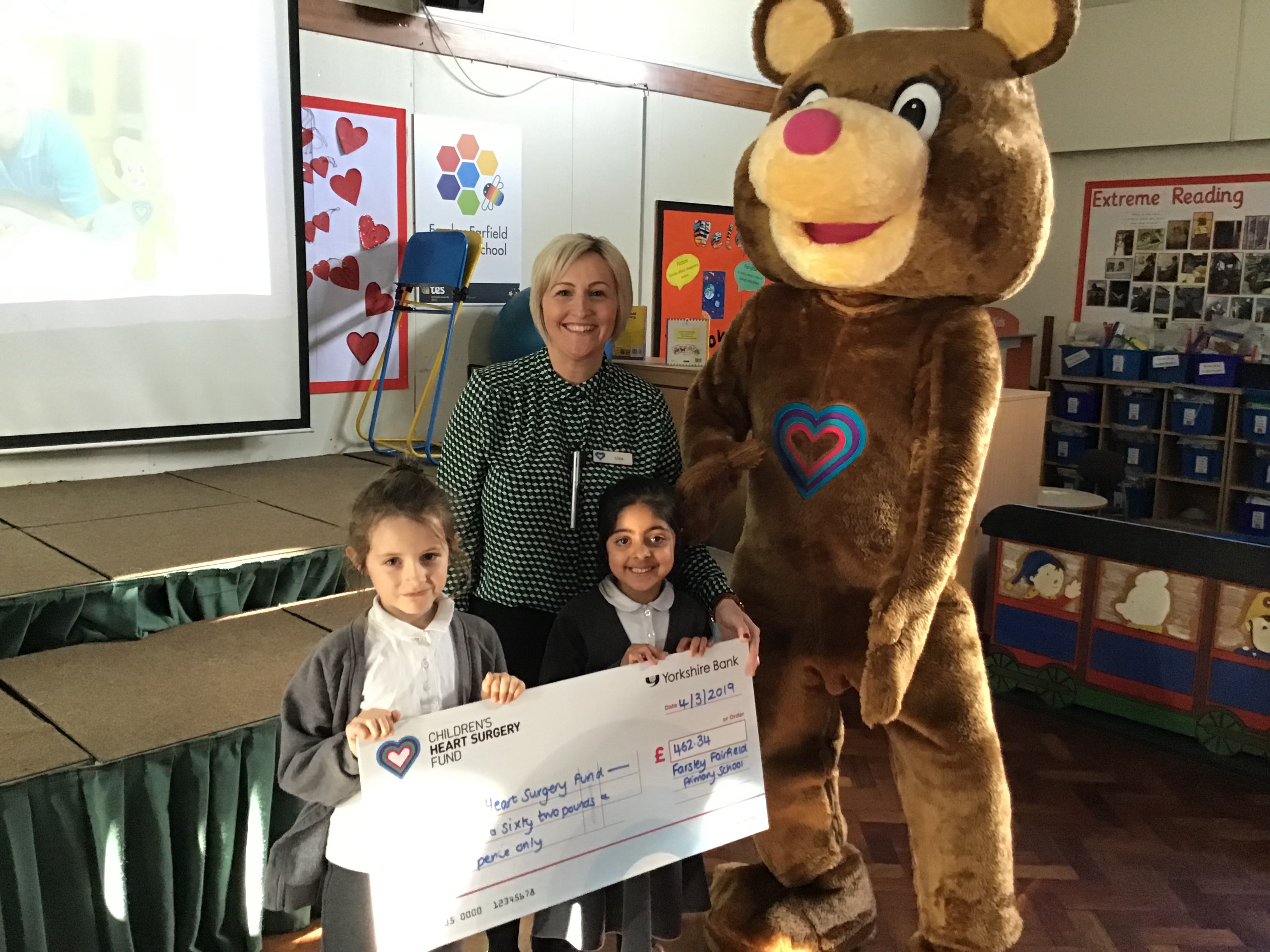Lisa from The Children’s Heart Surgery Fund came to speak to the children about the charity. Lisa told us about what the money goes to support. We watched a video about a young girl who had had heart surgery. ‘Katie Bear’ came in to the hall and we presented a school cheque – a total of £462.34 which was raised from our wear red day.
