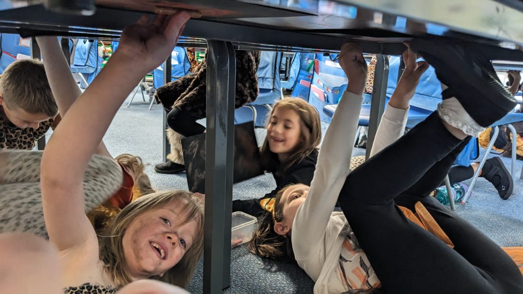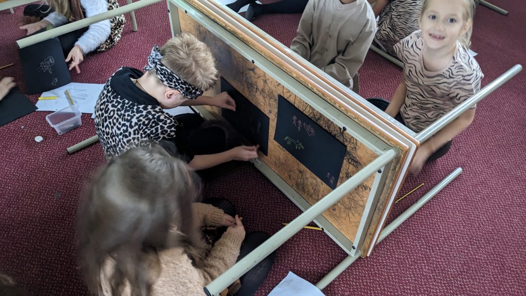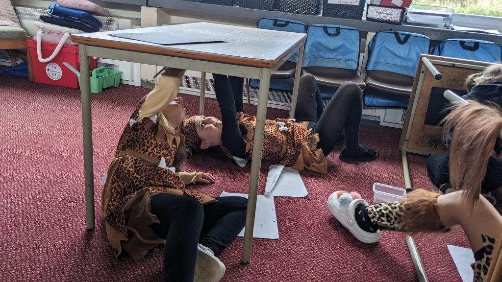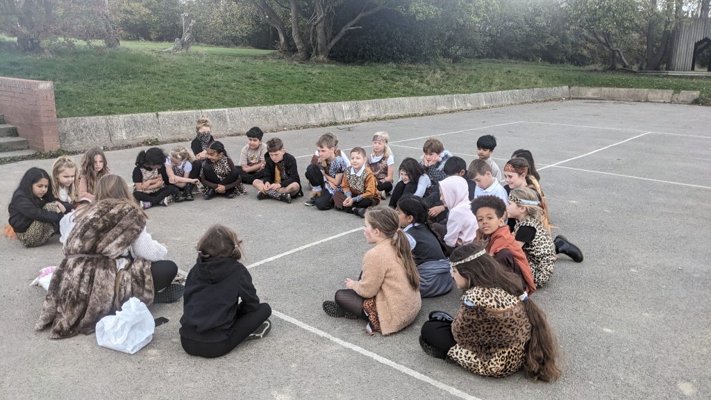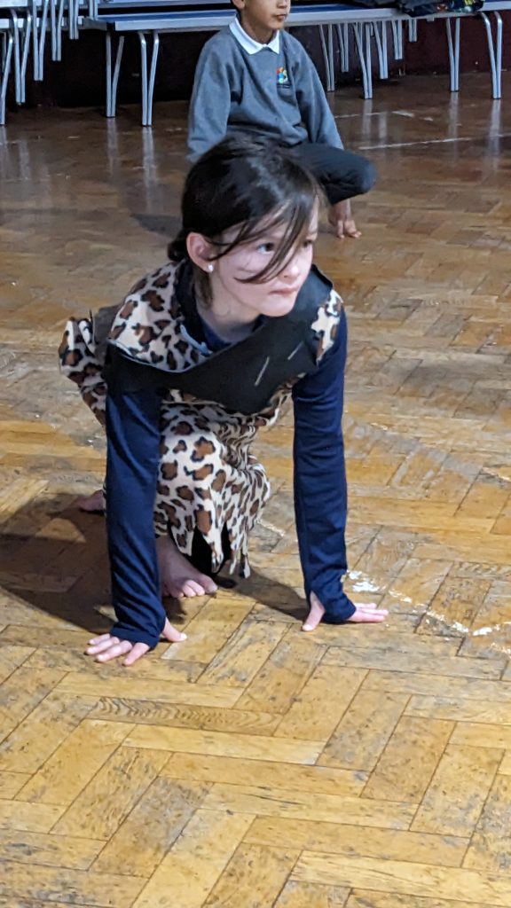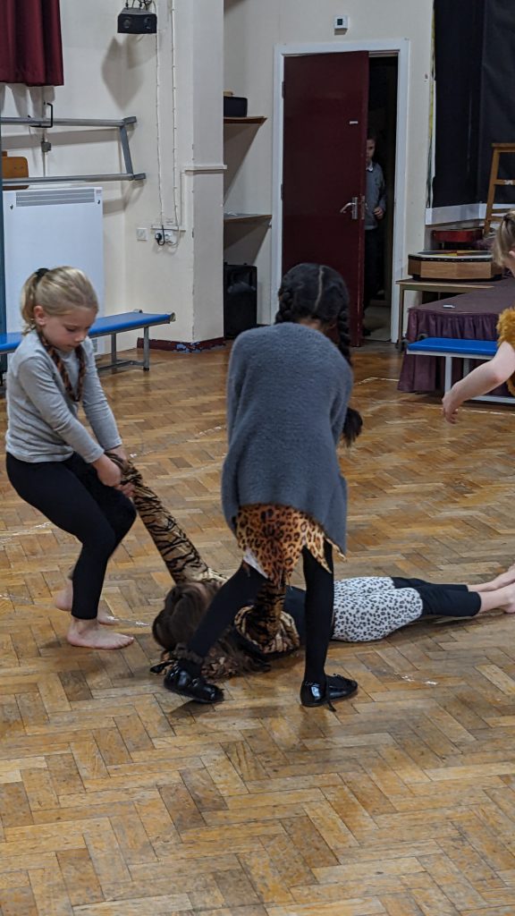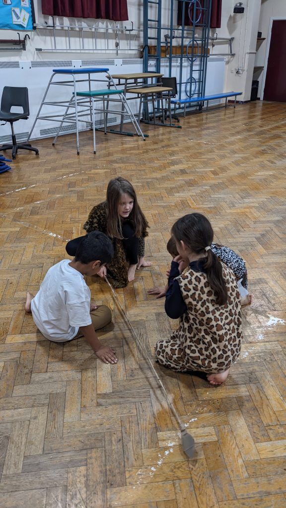 The children imagined themselves living in the Stone Age in our dance session and worked in groups to create short routines inspired by activities from the Stone Age, such as hunting, foraging, making tools and cooking. The children practised travelling in different ways depending on the scenario (e.g. creeping while hunting and stretching tall for foraging) and also created some freeze frames to represent different activities.