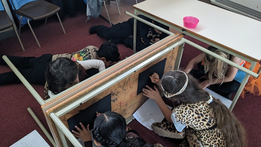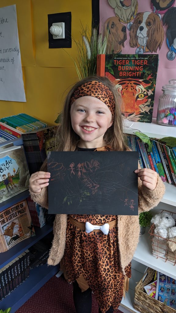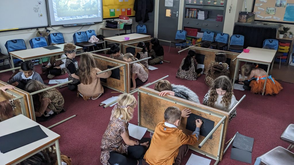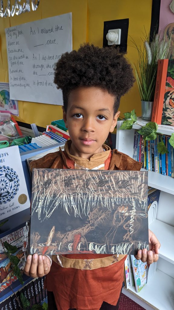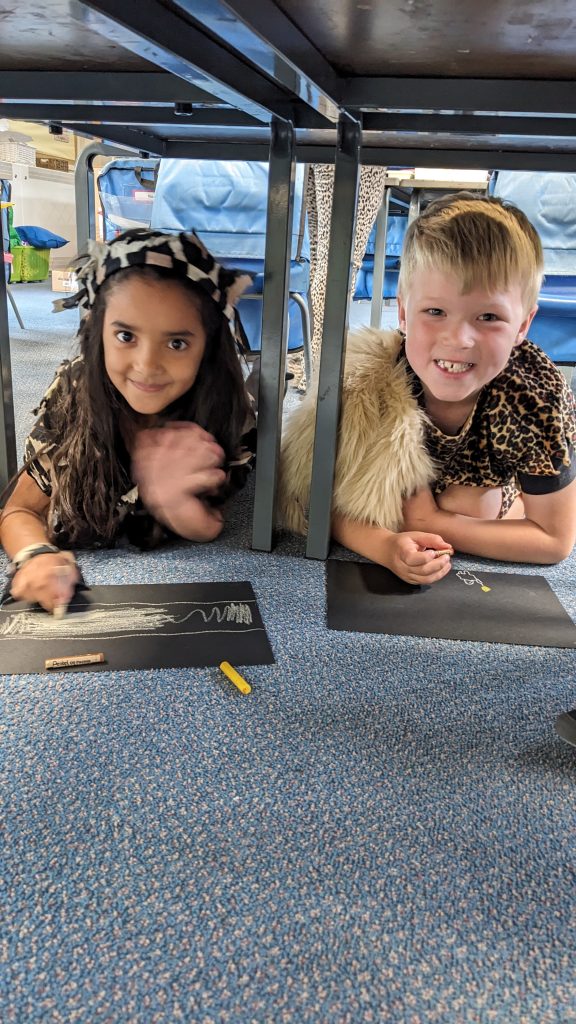 Cave paintings from the Stone Age have been found all over the world and the children enjoyed looking at some examples of them today, before creating their own! They thought about what materials would have been available in the Stone Age and made sure to use similar colours on their own artwork. Using chalk, charcoal and pastel, the children created some amazing cave paintings of their own! We even turned their tables into ‘caves’ to help them feel inspired!