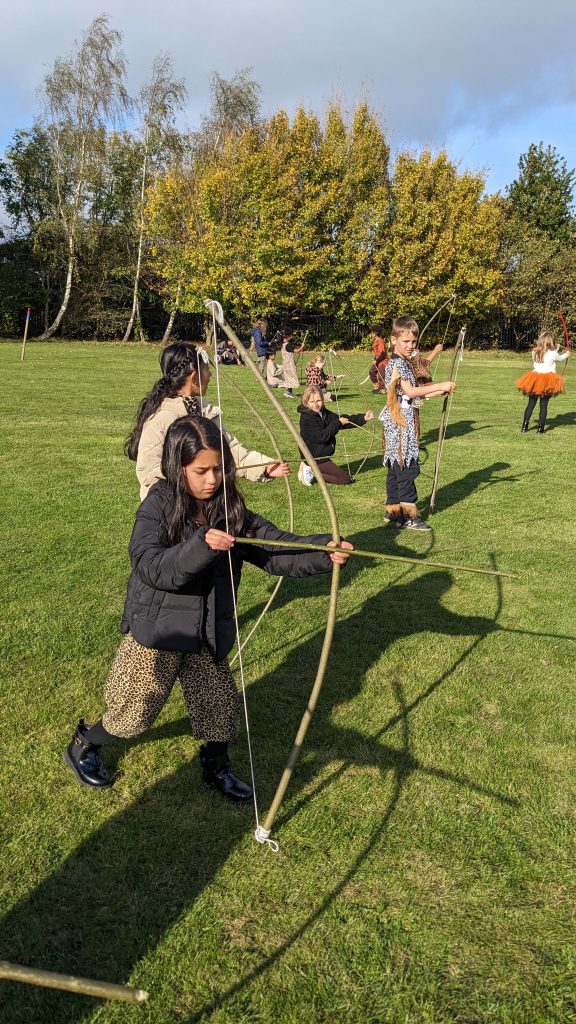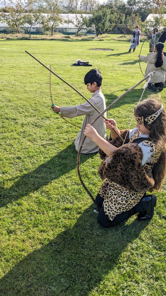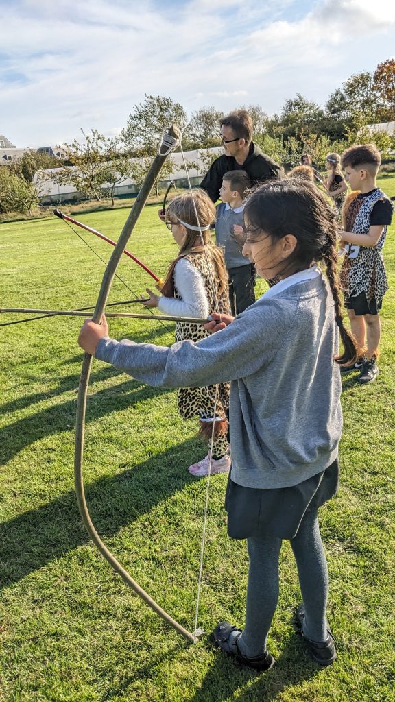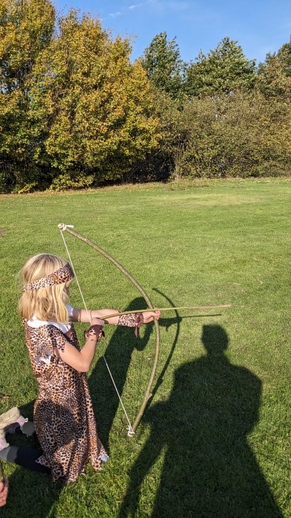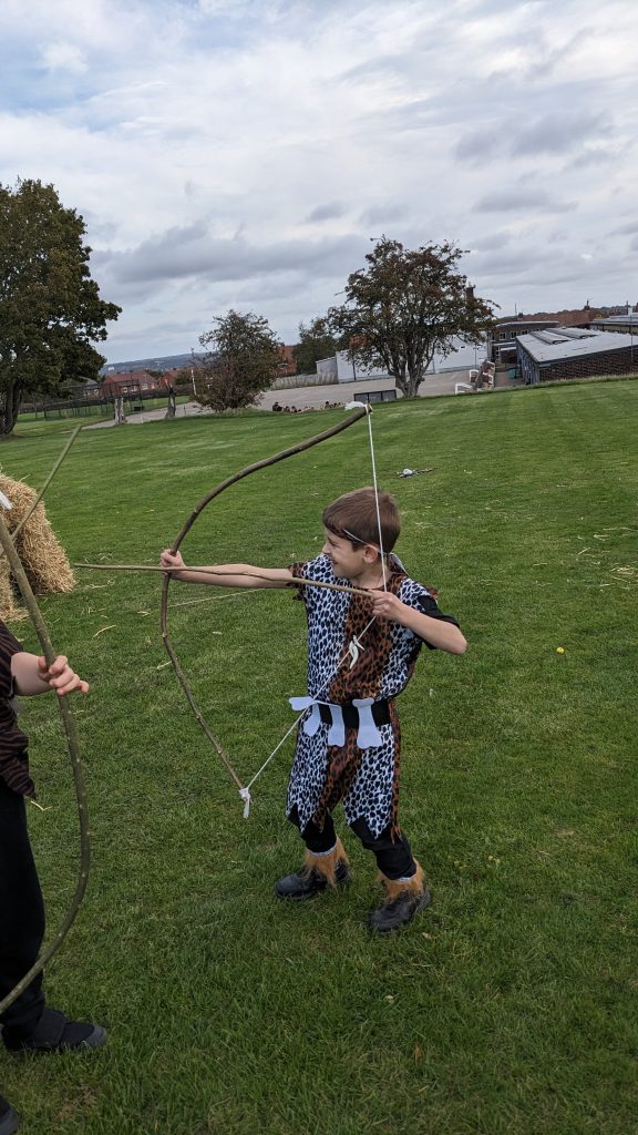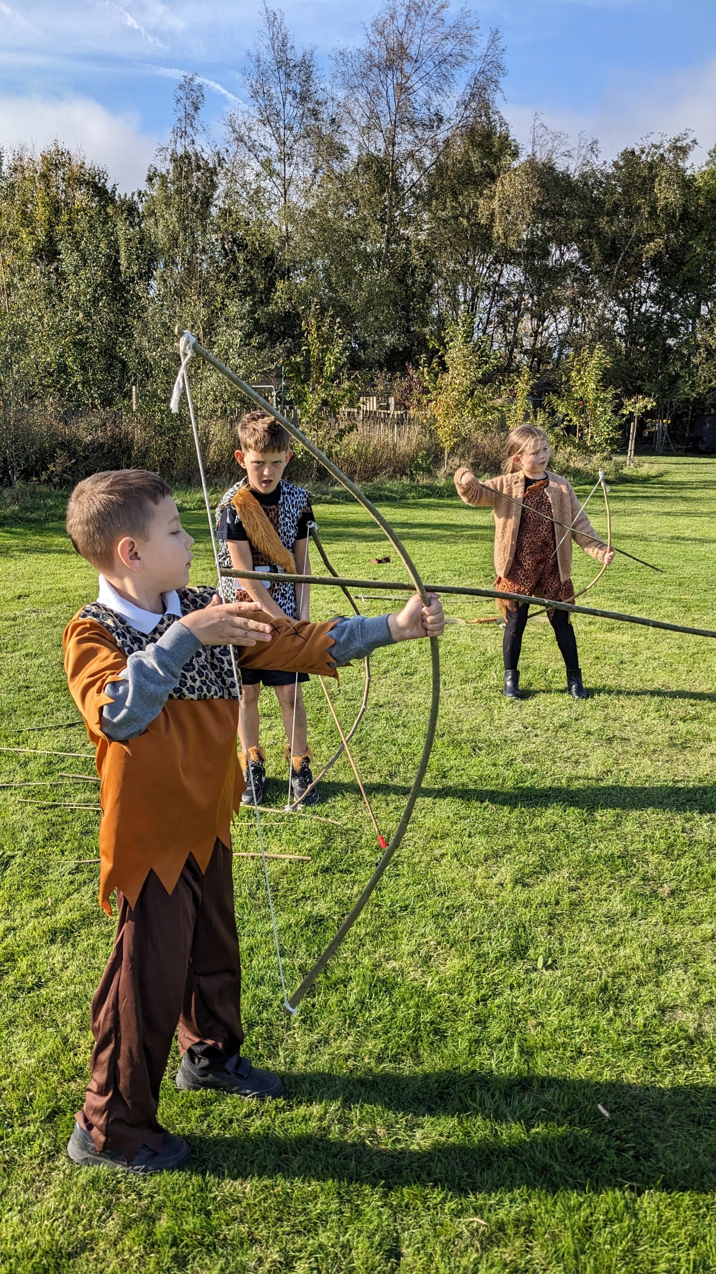 Year 3 were very excited about their session with Mr Harris in archery. Mr Harris talked to them about the bows and arrows and how to use them. Children had different targets to aim for to get their food. They had to work out how to hold a bow and arrow and aim with enough force on the string. Some of our hunter-gatherers successfully met some targets and enjoyed reflecting on their success once they were back in the classroom!
