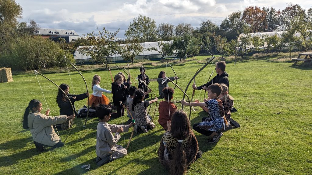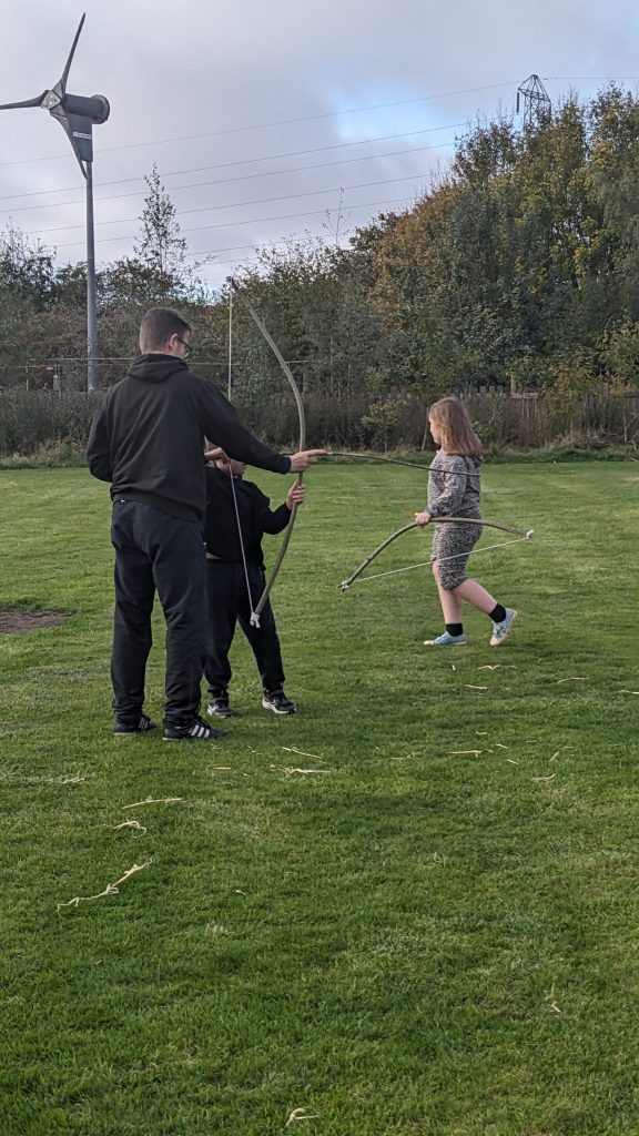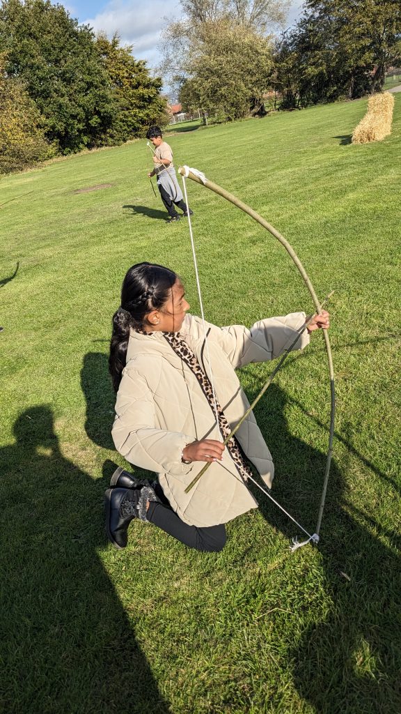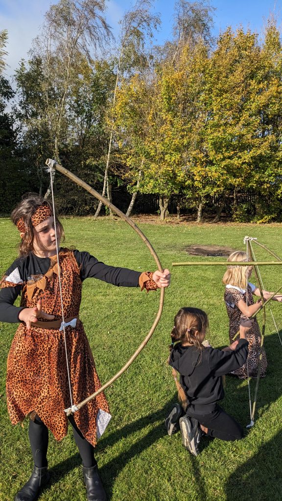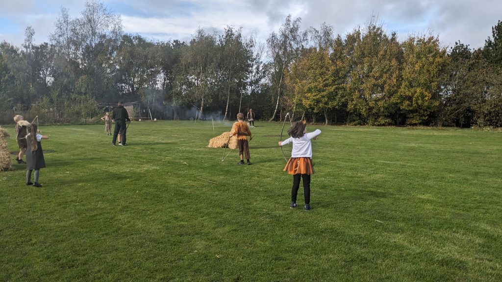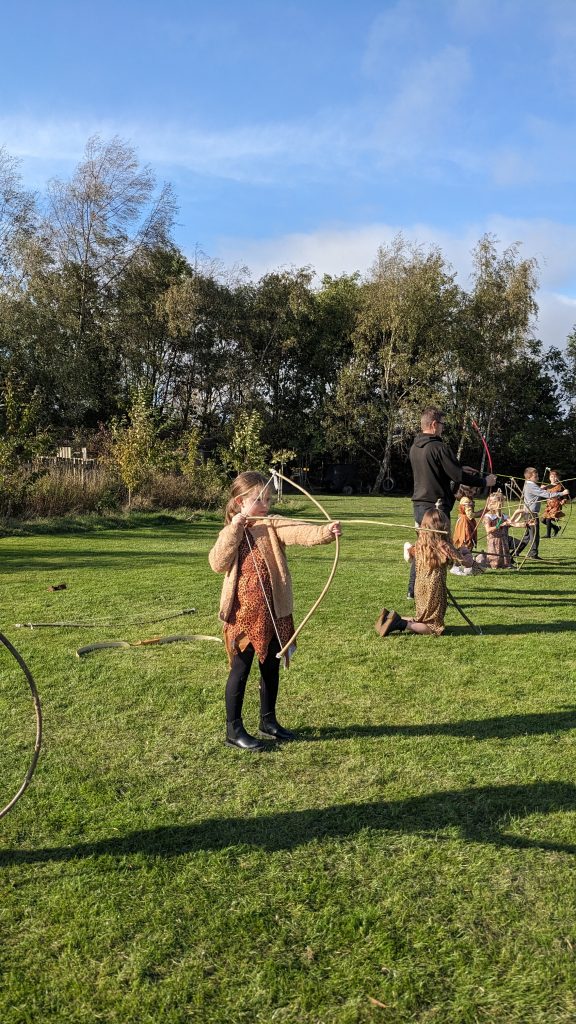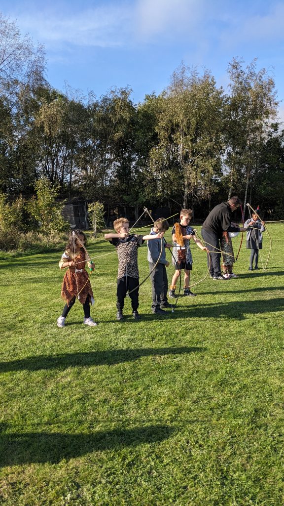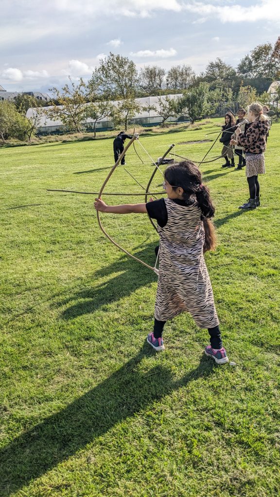 Year 3 were very excited about their session with Mr Harris in archery. Mr Harris talked to them about the bows and arrows and how to use them. Children had different targets to aim for to get their food. They had to work out how to hold a bow and arrow and aim with enough force on the string. Some of our hunter-gatherers successfully met some targets and enjoyed reflecting on their success once they were back in the classroom!