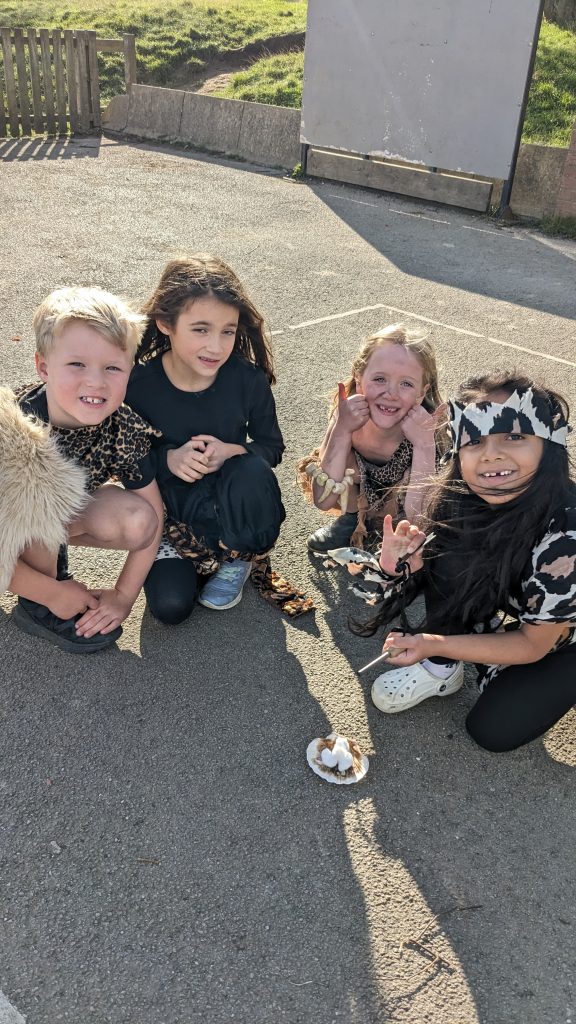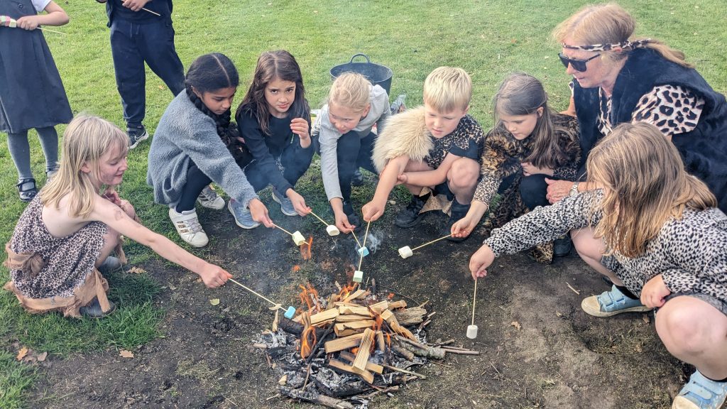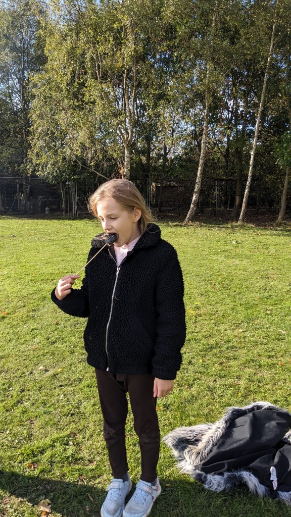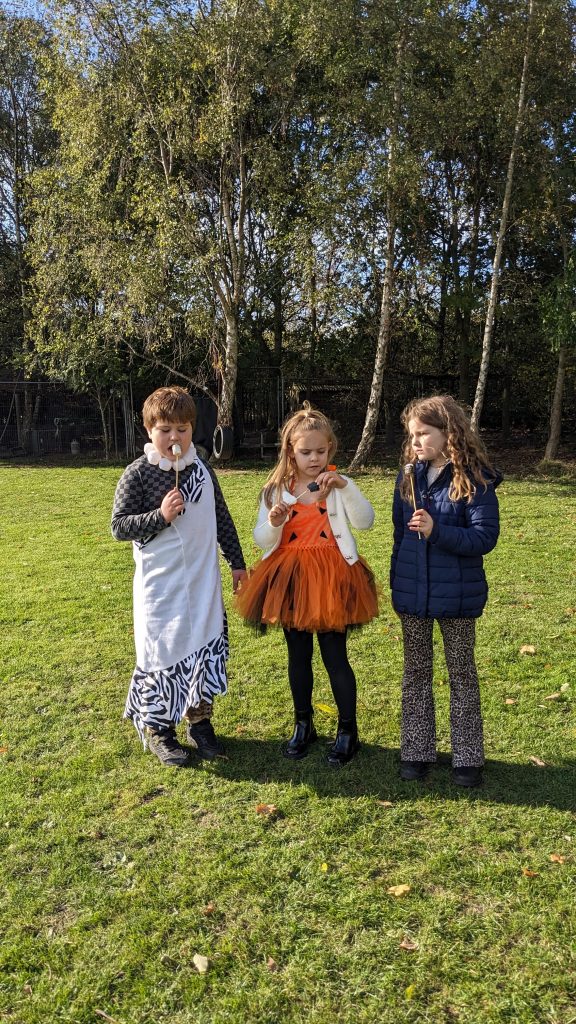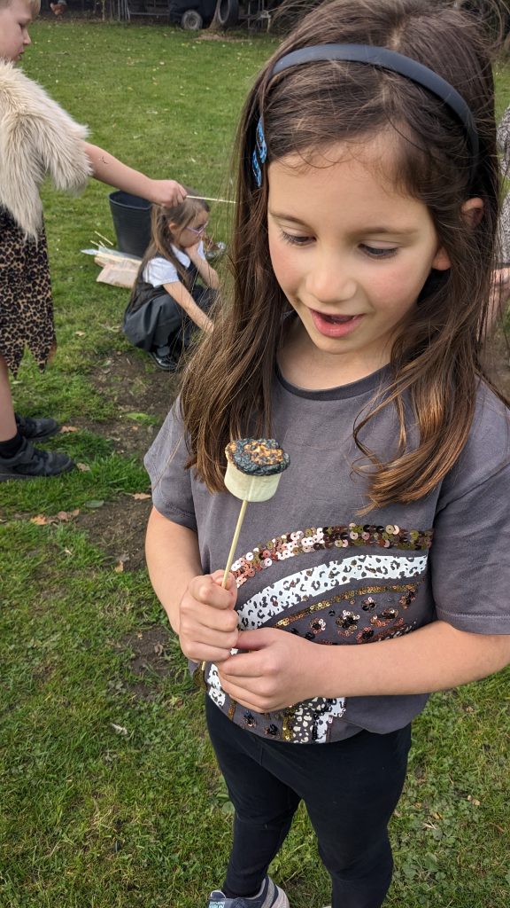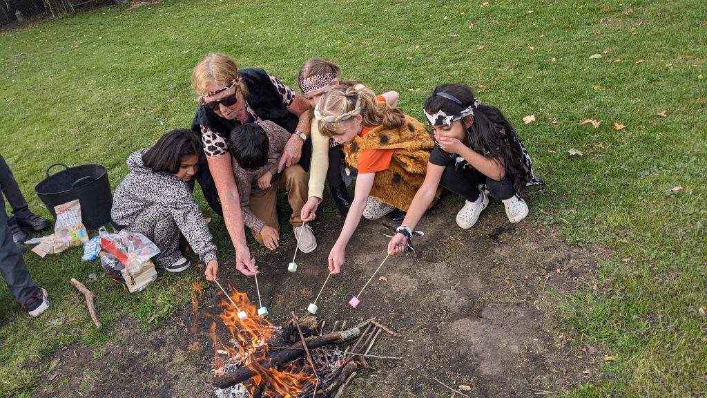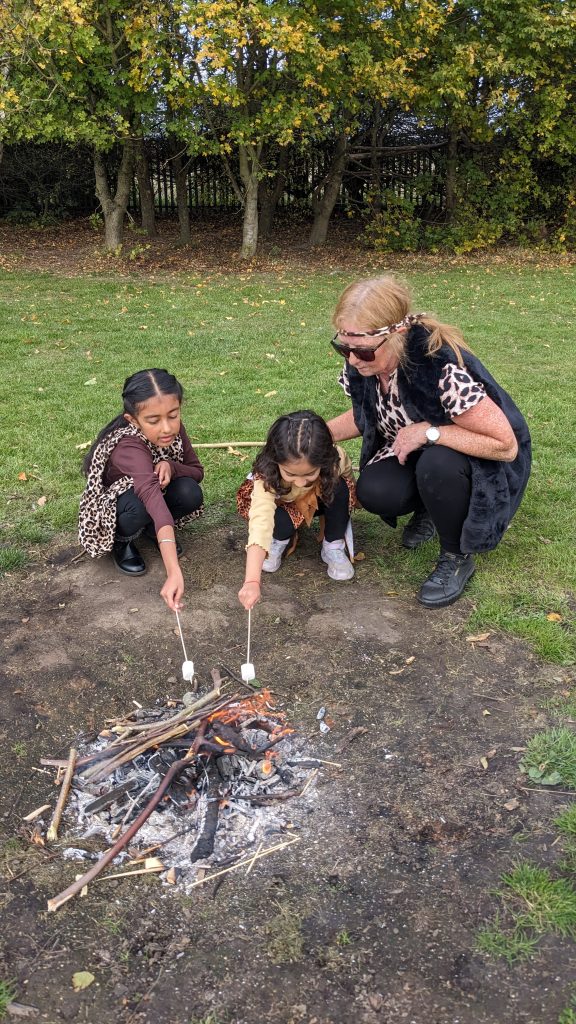 Throughout the afternoon, a small fire was being made by Mrs Higgins and Mrs Kaur, and the children discussed the difficulty in keeping this going, especially if it was made for more than one purpose: for example, keeping warm for a large group and using the fire for cooking. Year 3 loved the opportunity to toast their marshmallows – a perfect addition to our day!