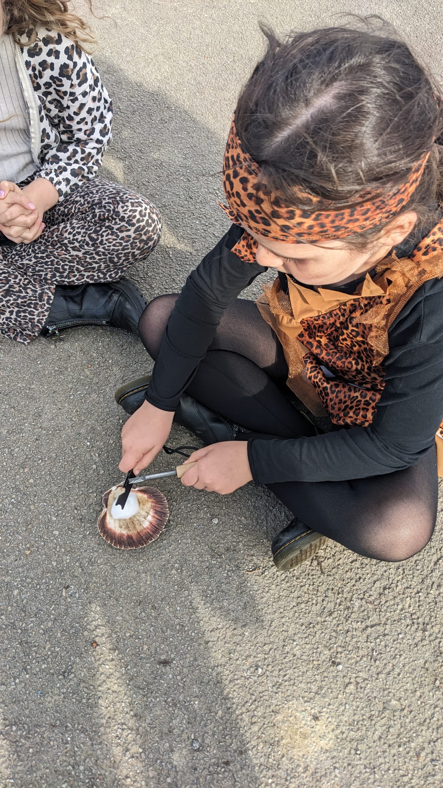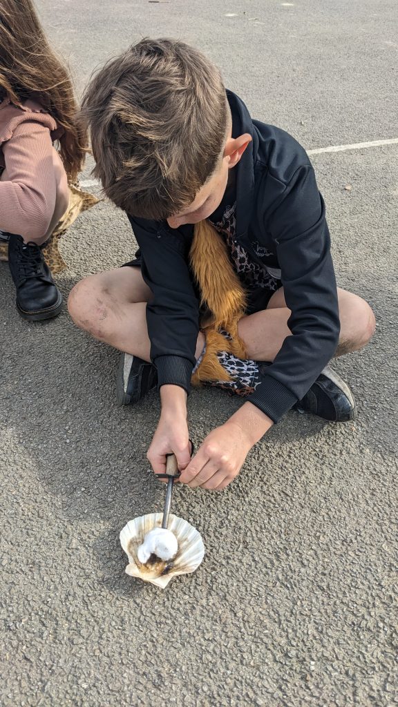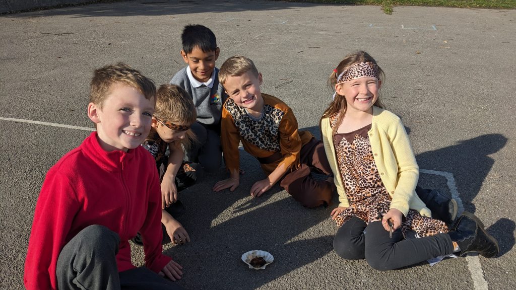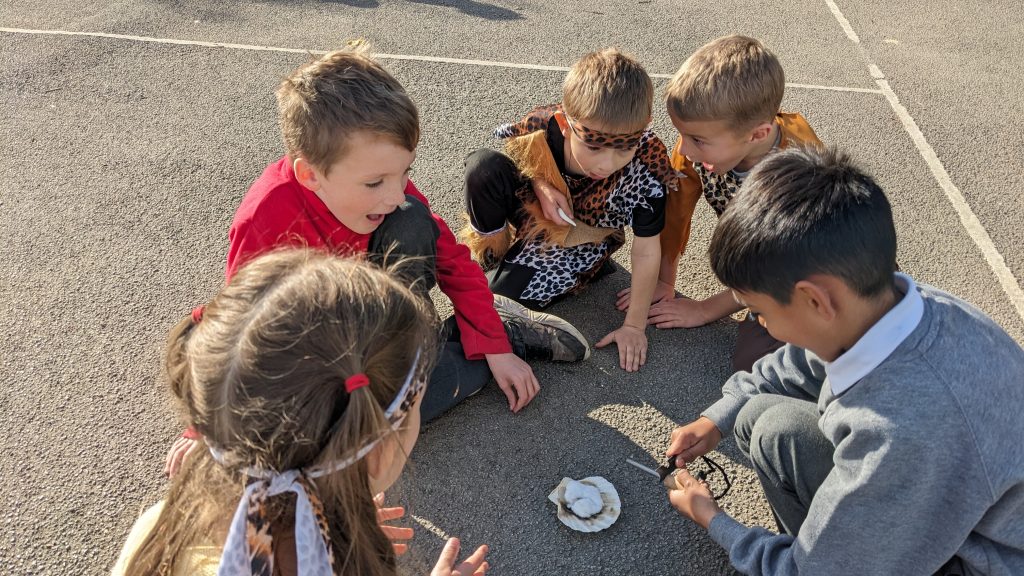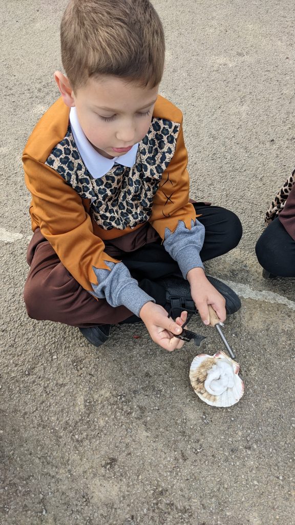 The afternoon was spent outside, where children learned more about the significance of fire, including how it was made and its purpose. After examining various pieces of flint and discussing their carving techniques, they went outside to try their hand at it. Using a shell, cotton balls, and a flint and steel tool, children worked in groups, taking turns to make a fire. Given the dry conditions and breeze, the children were surprised by the impact and their ability to make a fire. They thought that it would be simple! This led to some brilliant discussions on the difficulty of building a fire and keeping it going, especially when this grew in size for different reasons, including keeping a large group warm and cooking. We were very impressed with the children’s perseverance. We managed to make some fires!