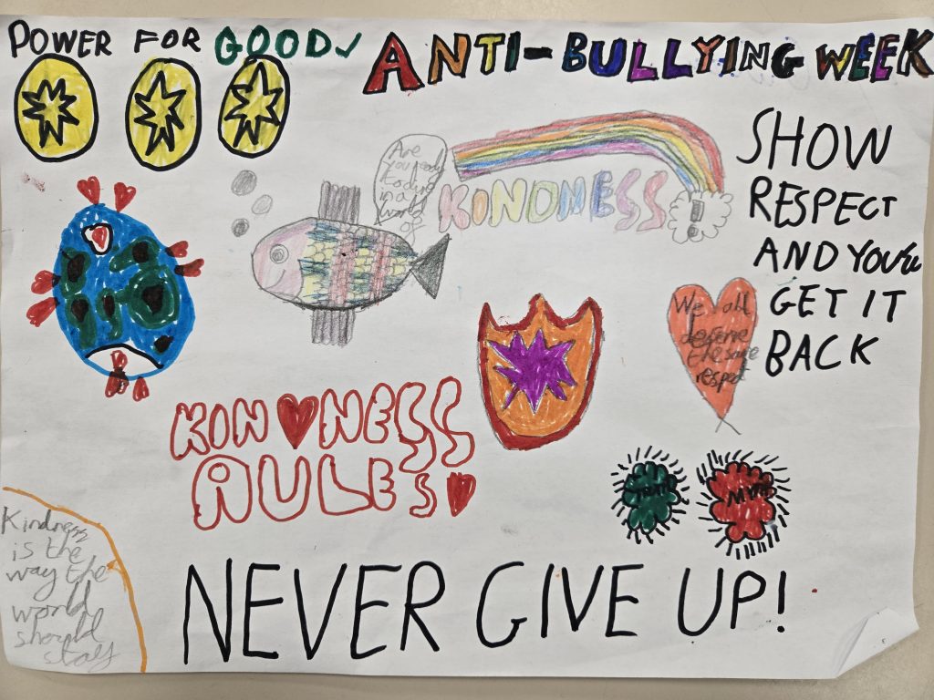 The theme of this year’s anti-bullying week was ‘Power for Good’. We started off with our odd socks day, celebrating the fact that we are all different and unique. We then thought about our own powers, and how we can use our powers to make sure we are upstanders, rather than bystanders, speaking out and supporting others. The children then made some fantastic posters.
