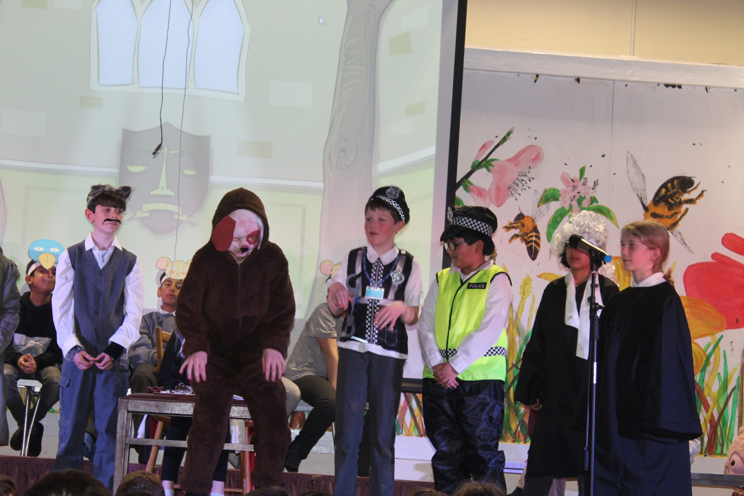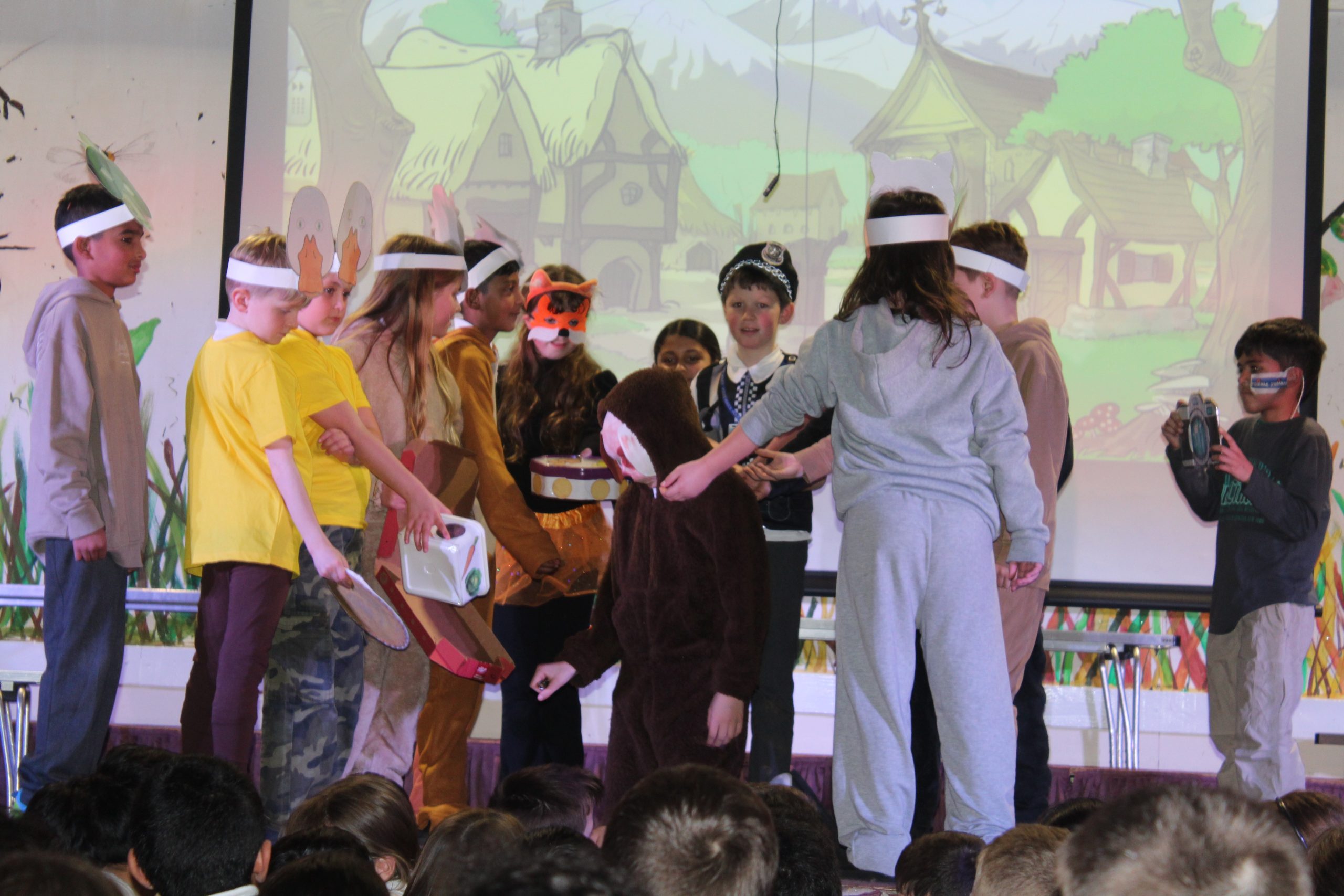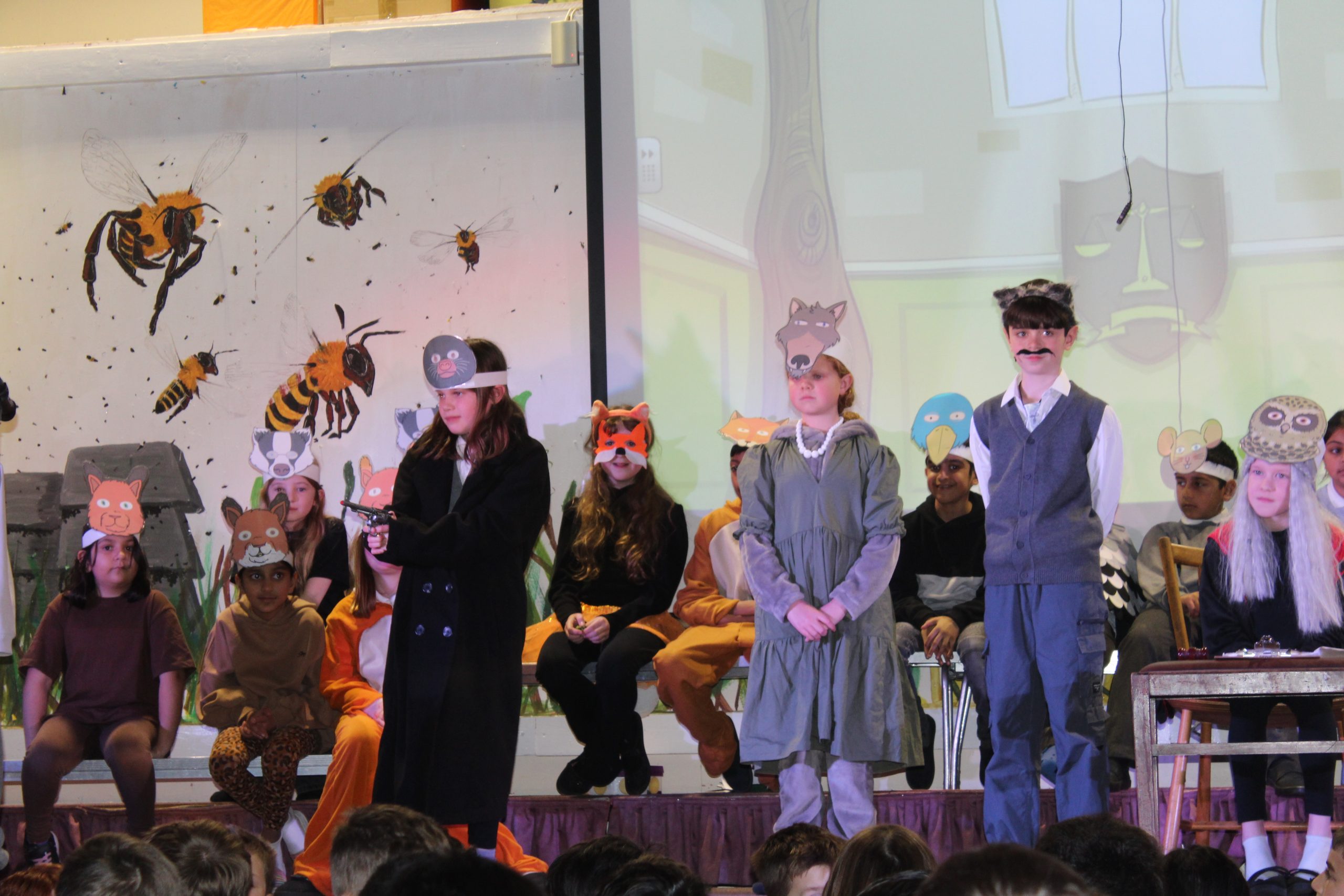 Year 5, supported by other KS2 classes, put on a great show with: What’s the Crime Mr Wolf? There were great songs, lots of fine acting and a huge amount of words to learn. The children did very, very well. We hope that you enjoyed the show!