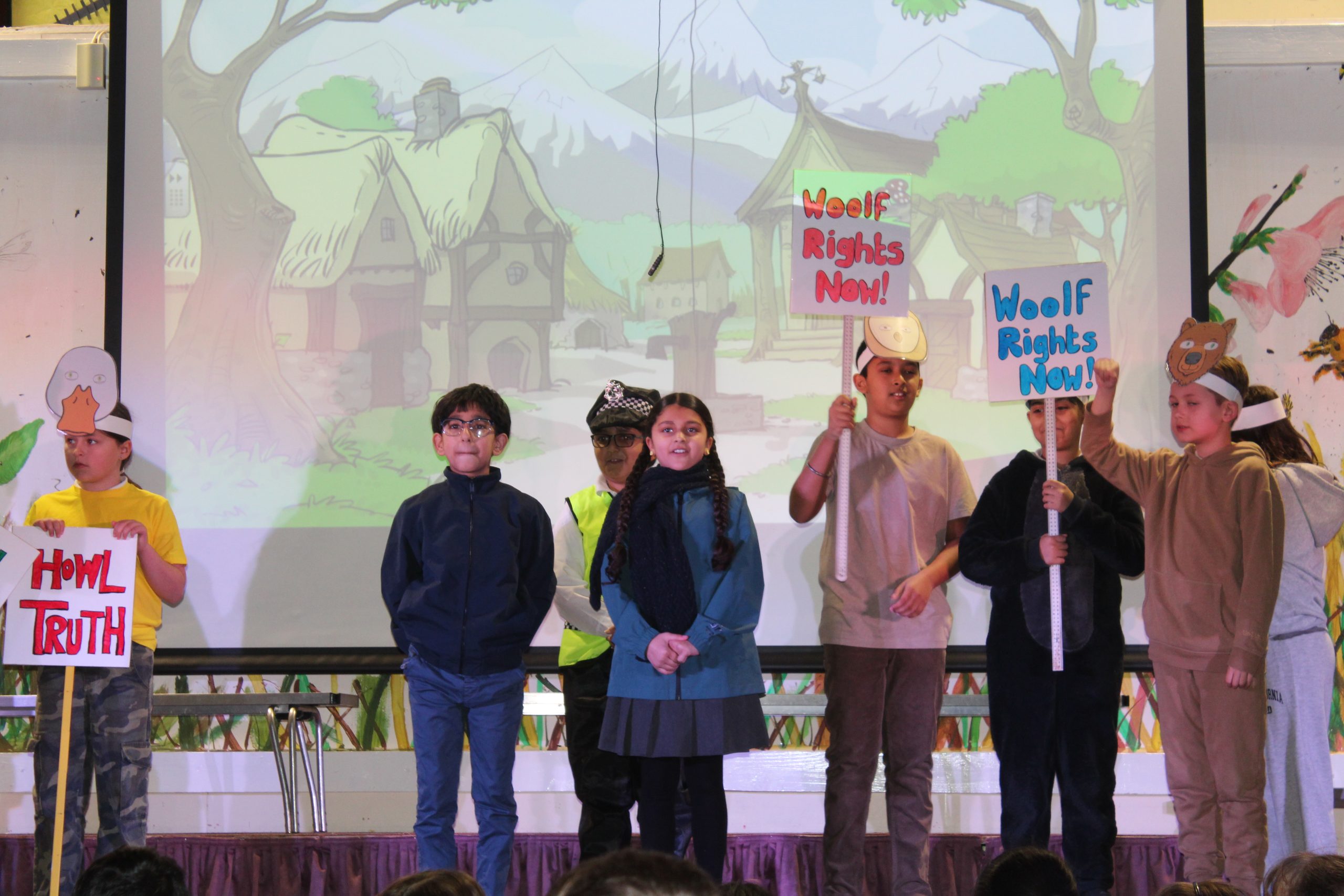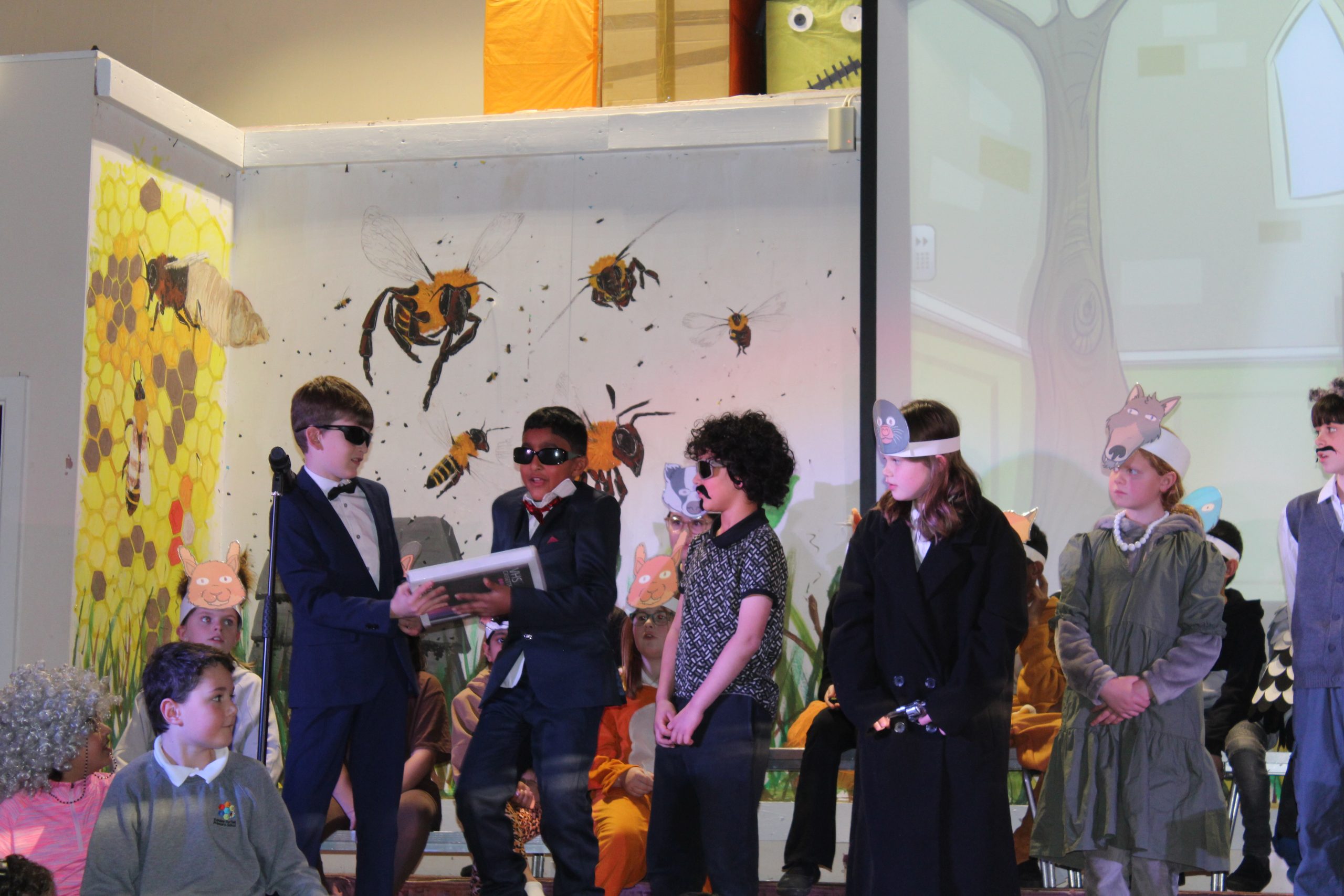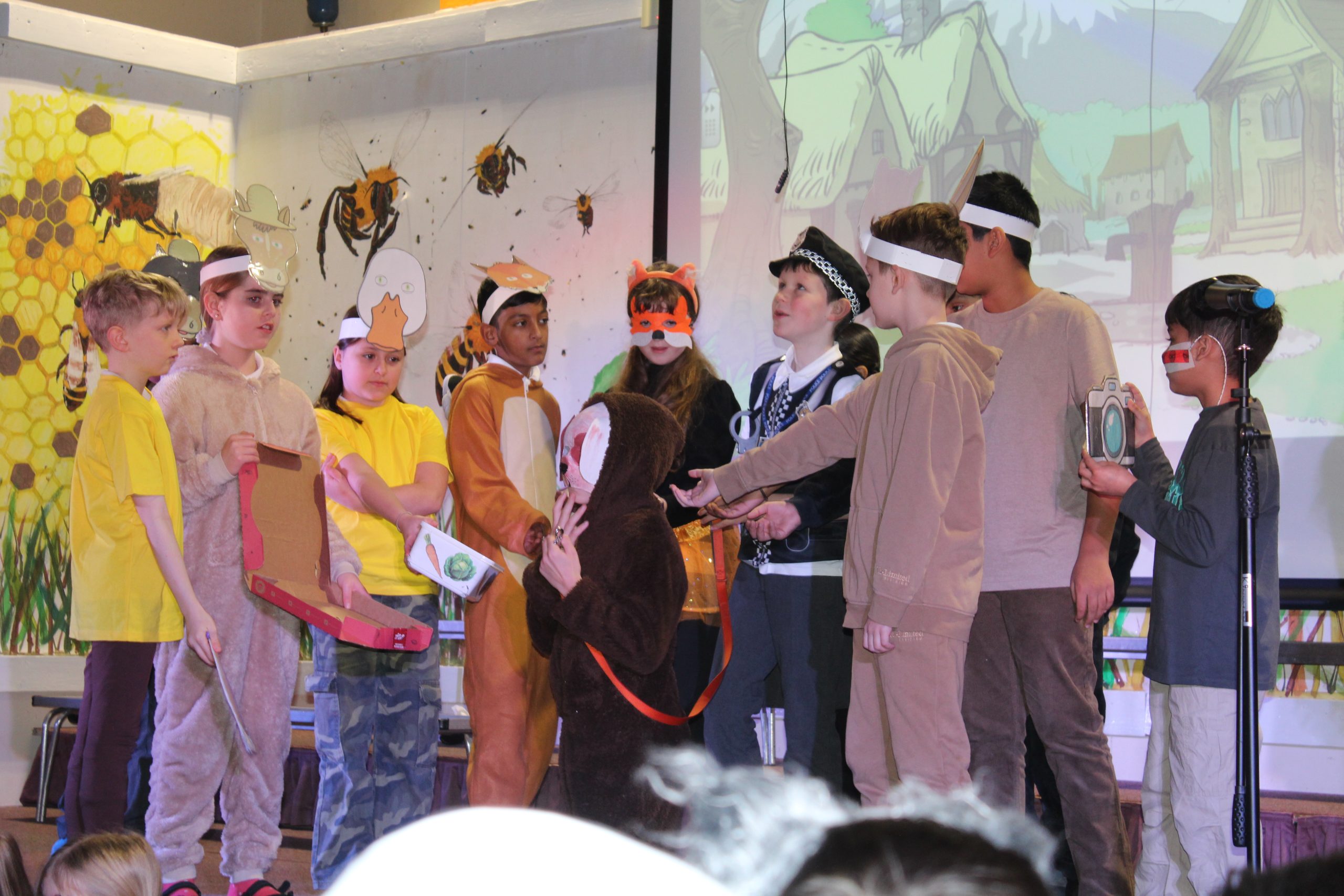 Year 5, supported by other KS2 classes, put on a great show with: What’s the Crime Mr Wolf? There were great songs, lots of fine acting and a huge amount of words to learn. The children did very, very well. We hope that you enjoyed the show!