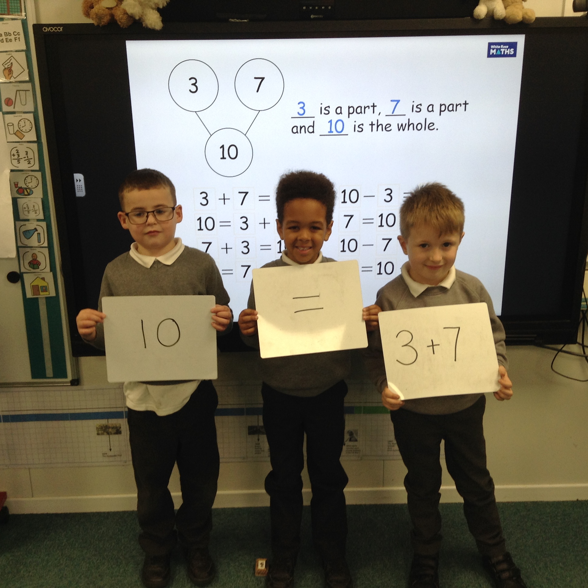 During our maths sessions, we have been learning about fact families. We have learnt that we can get four addition and four subtraction facts from one part-whole model to make a fact family.
