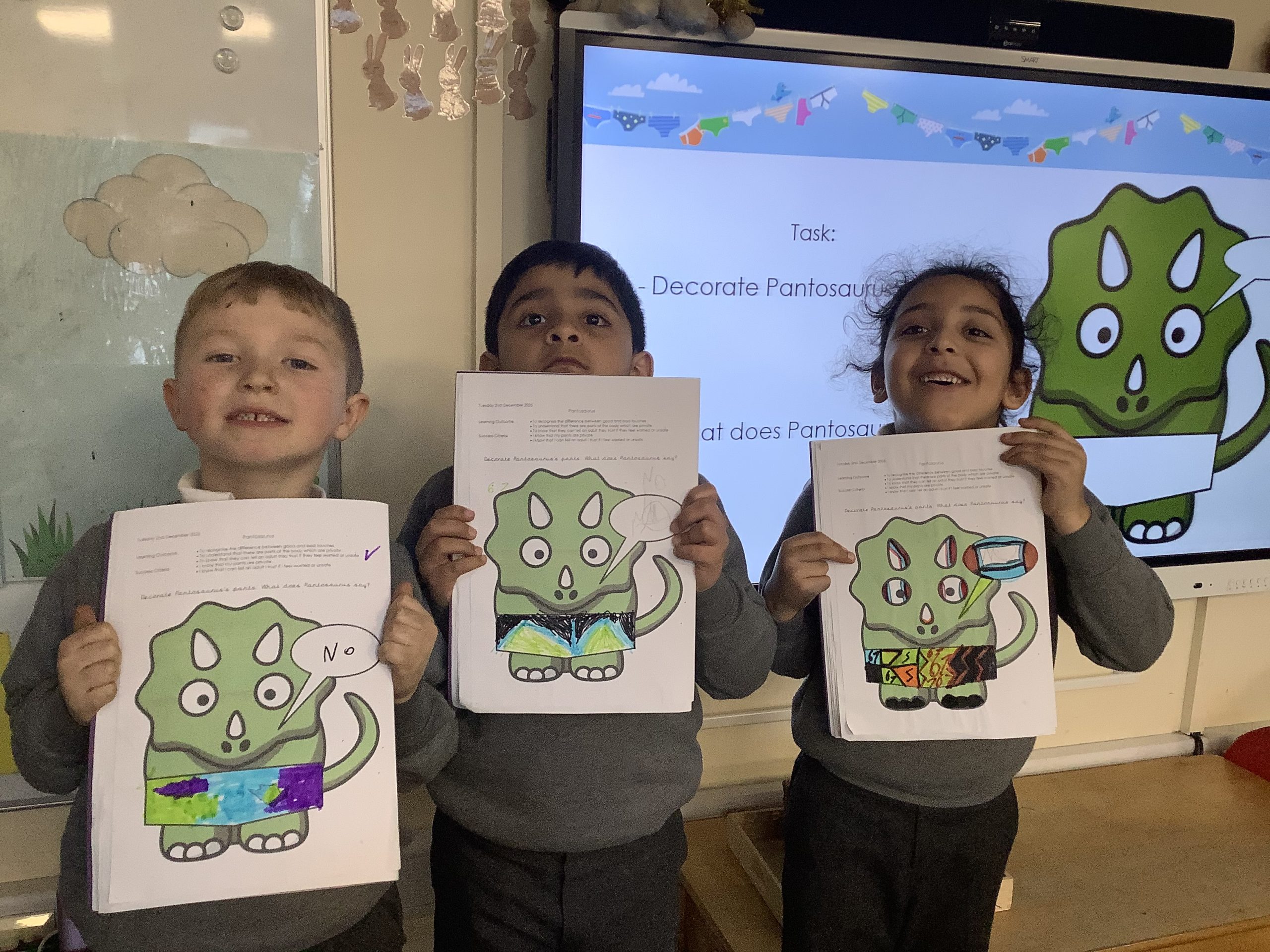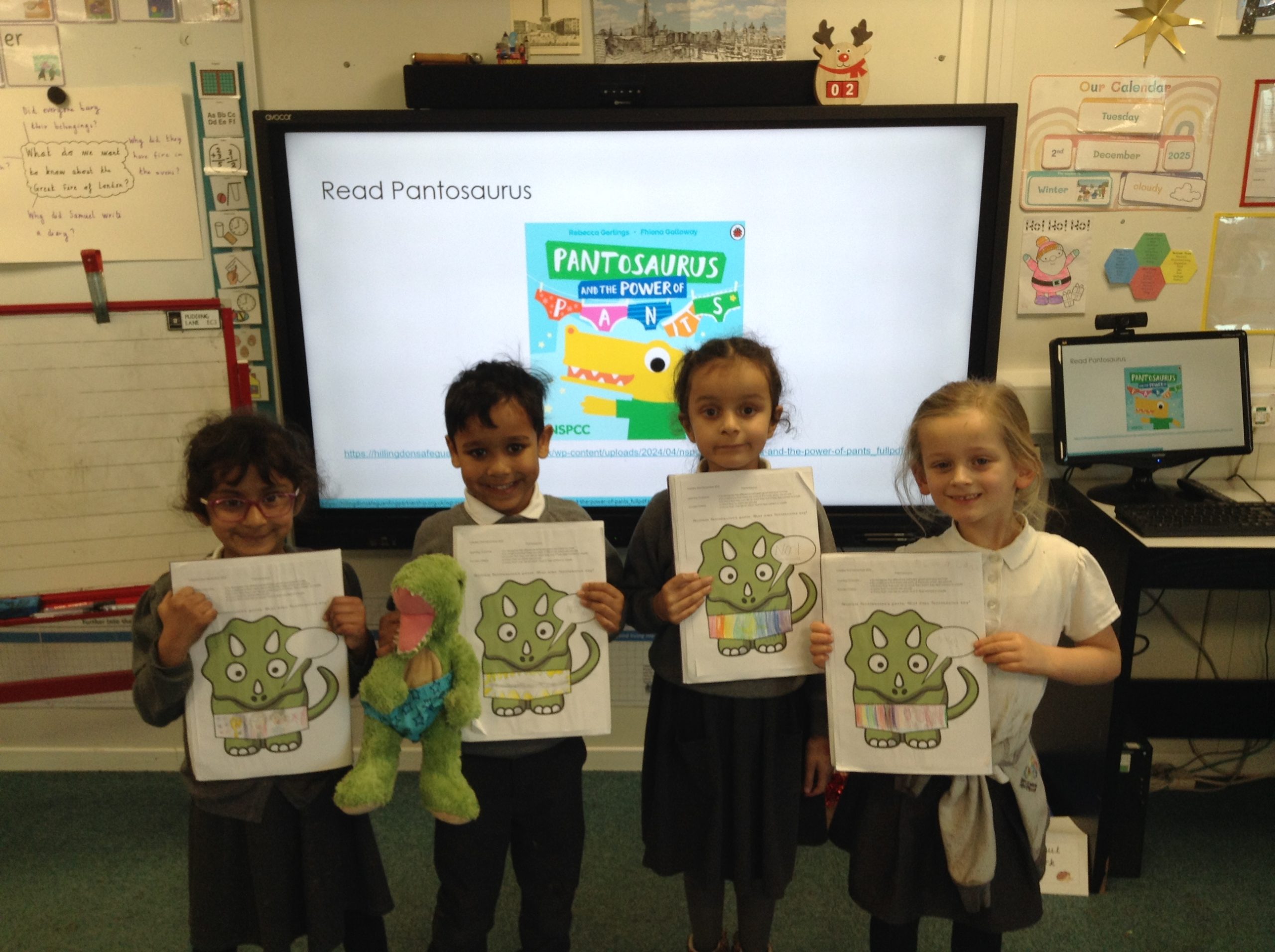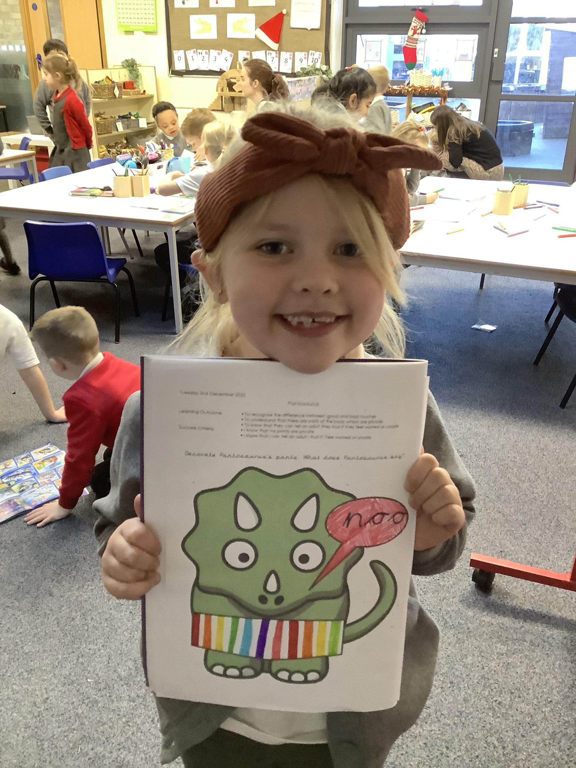 In PSHE, we met Pantosaurus. We spent time designing pants for him and talking about his PANTS rules.