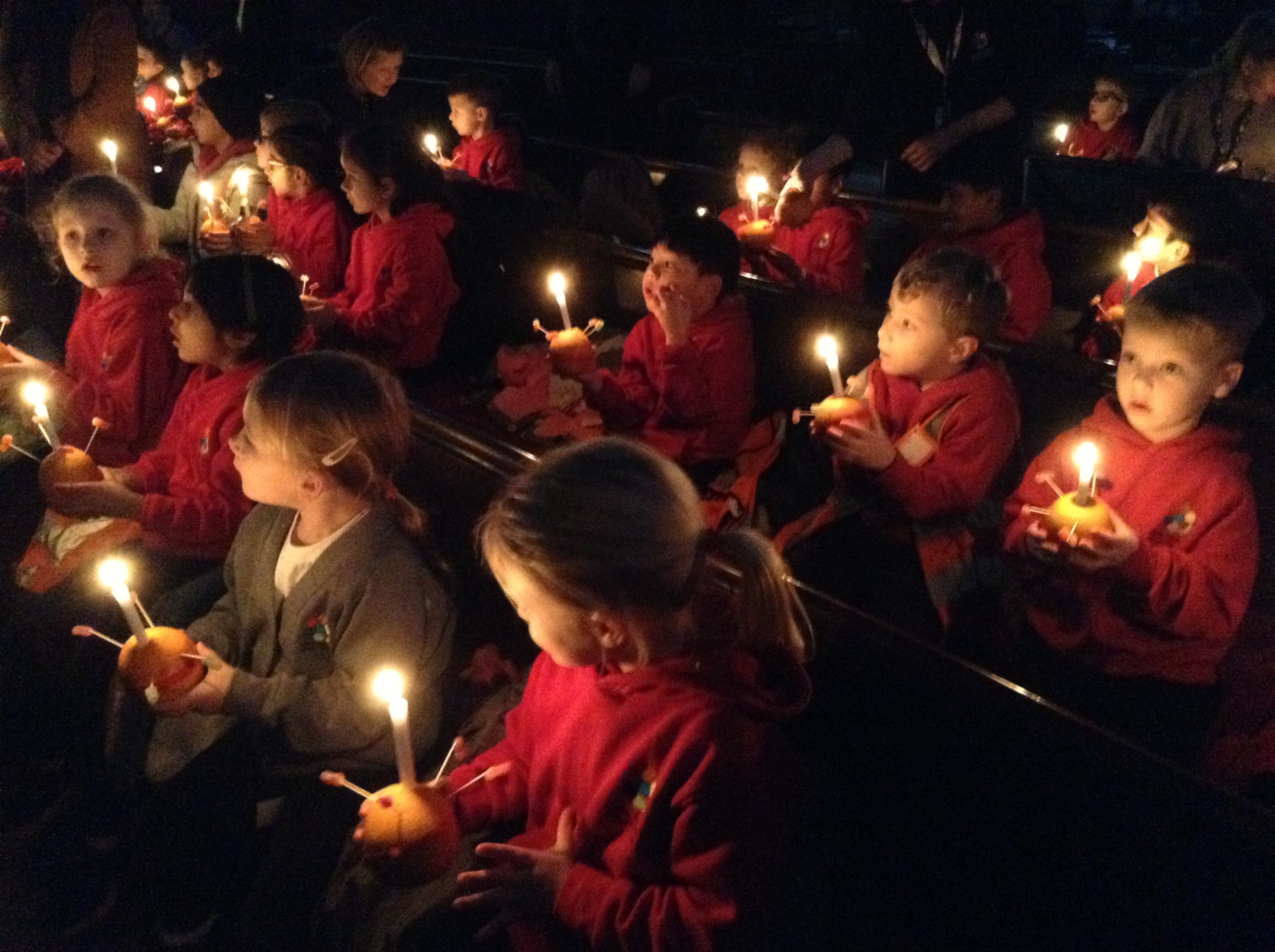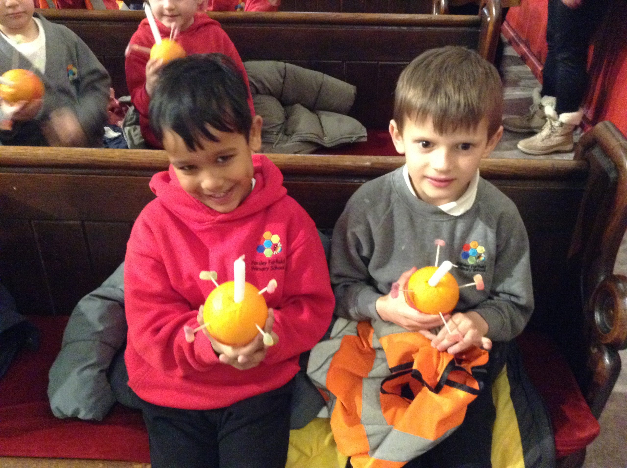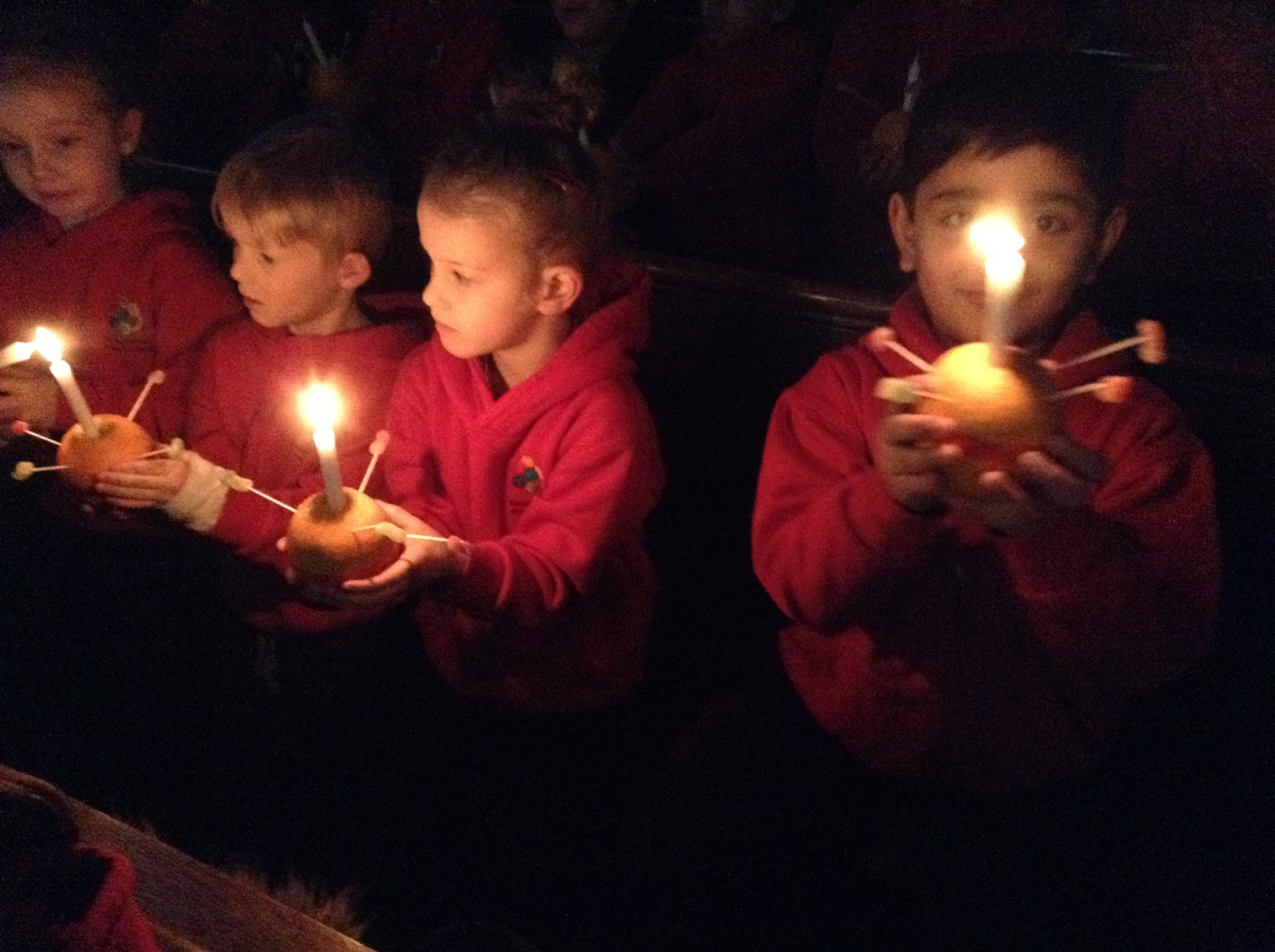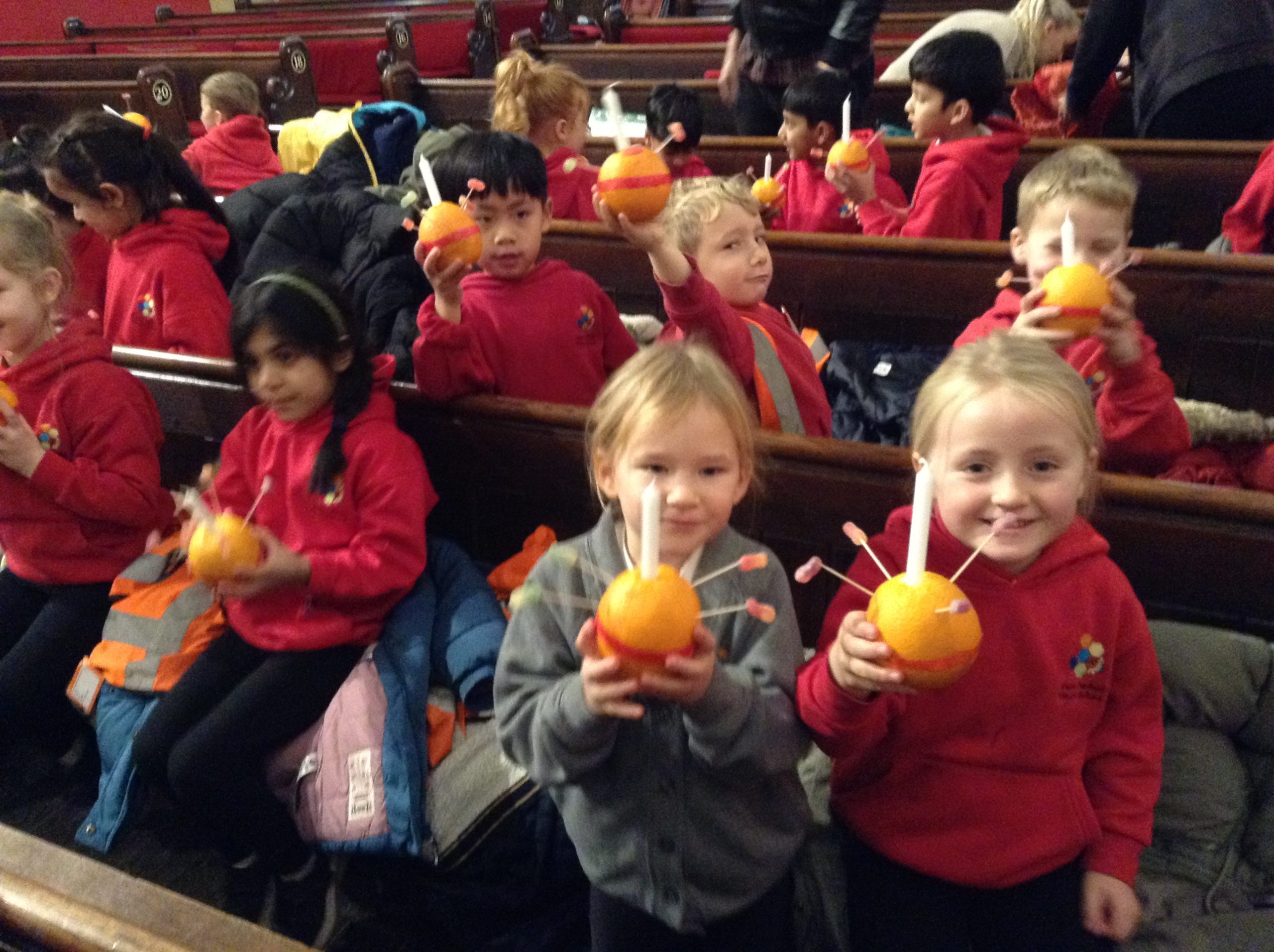 On Thursday, we had a fantastic trip to St John’s church in Farsley. As it was a local trip, we walked to the church, which the children found very exciting. We learnt about what a Christingle is and what it represents and then the children made their own. All the children were very sensible when we lit the Christingles in the dark church.