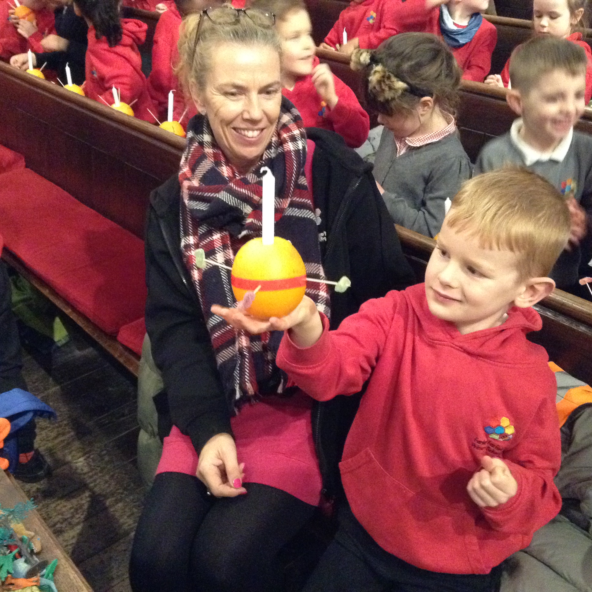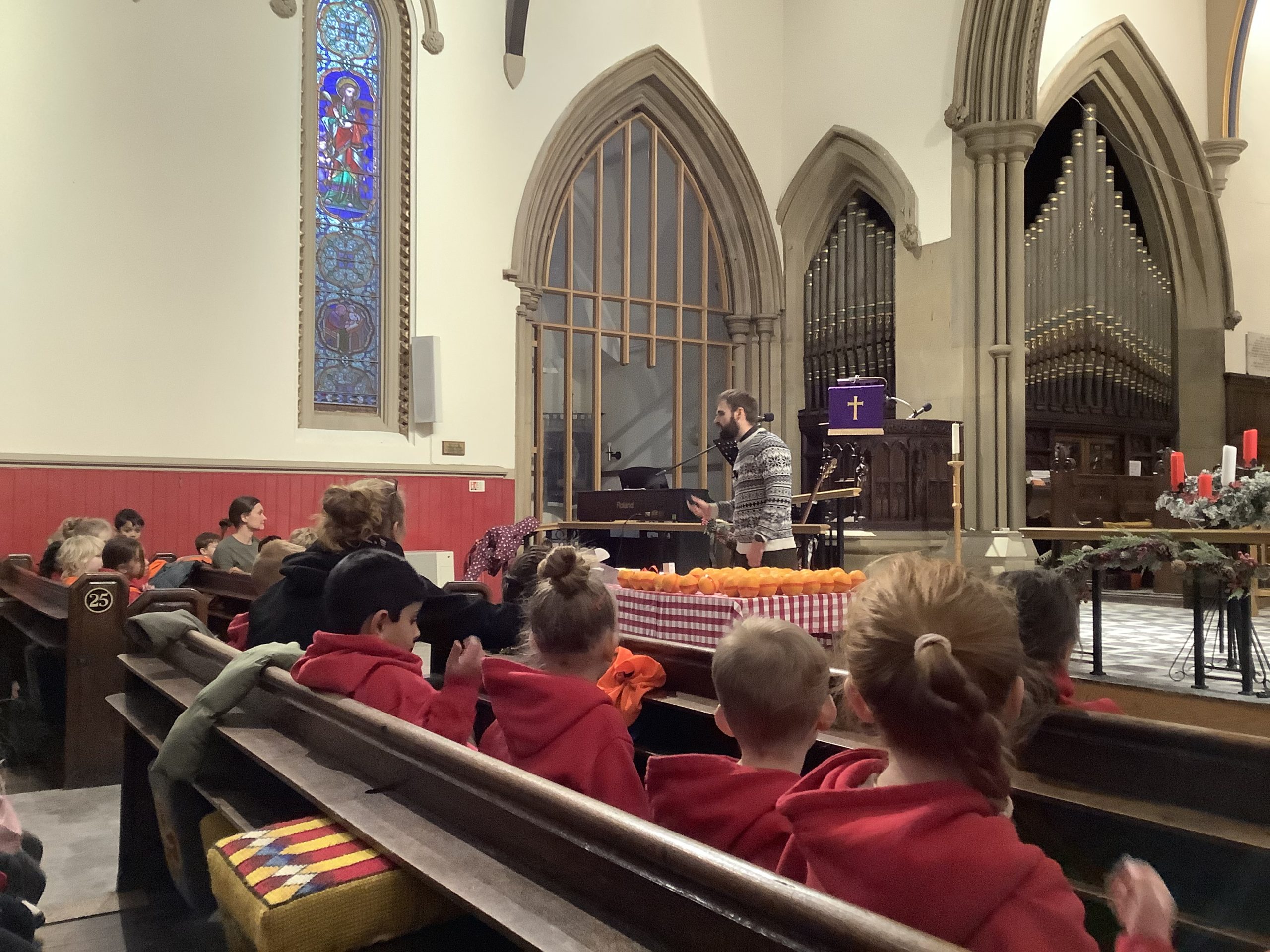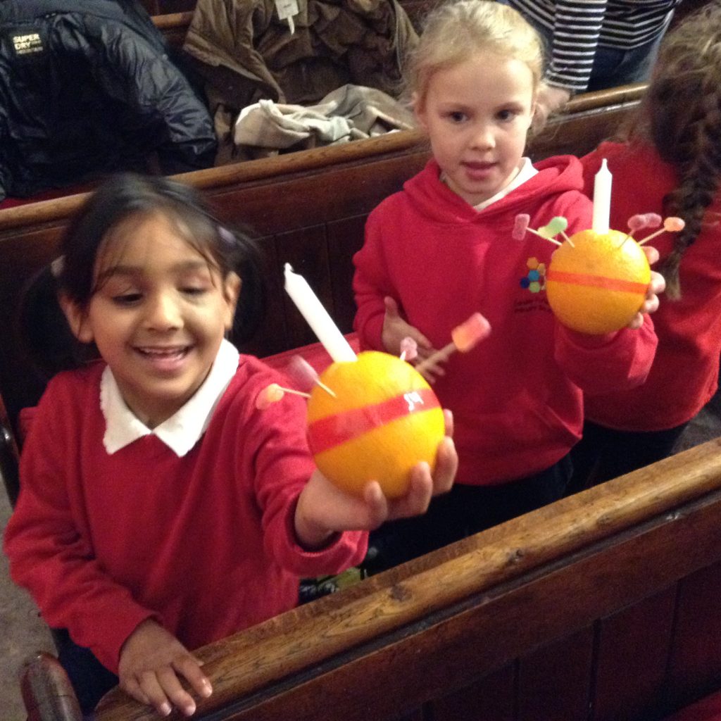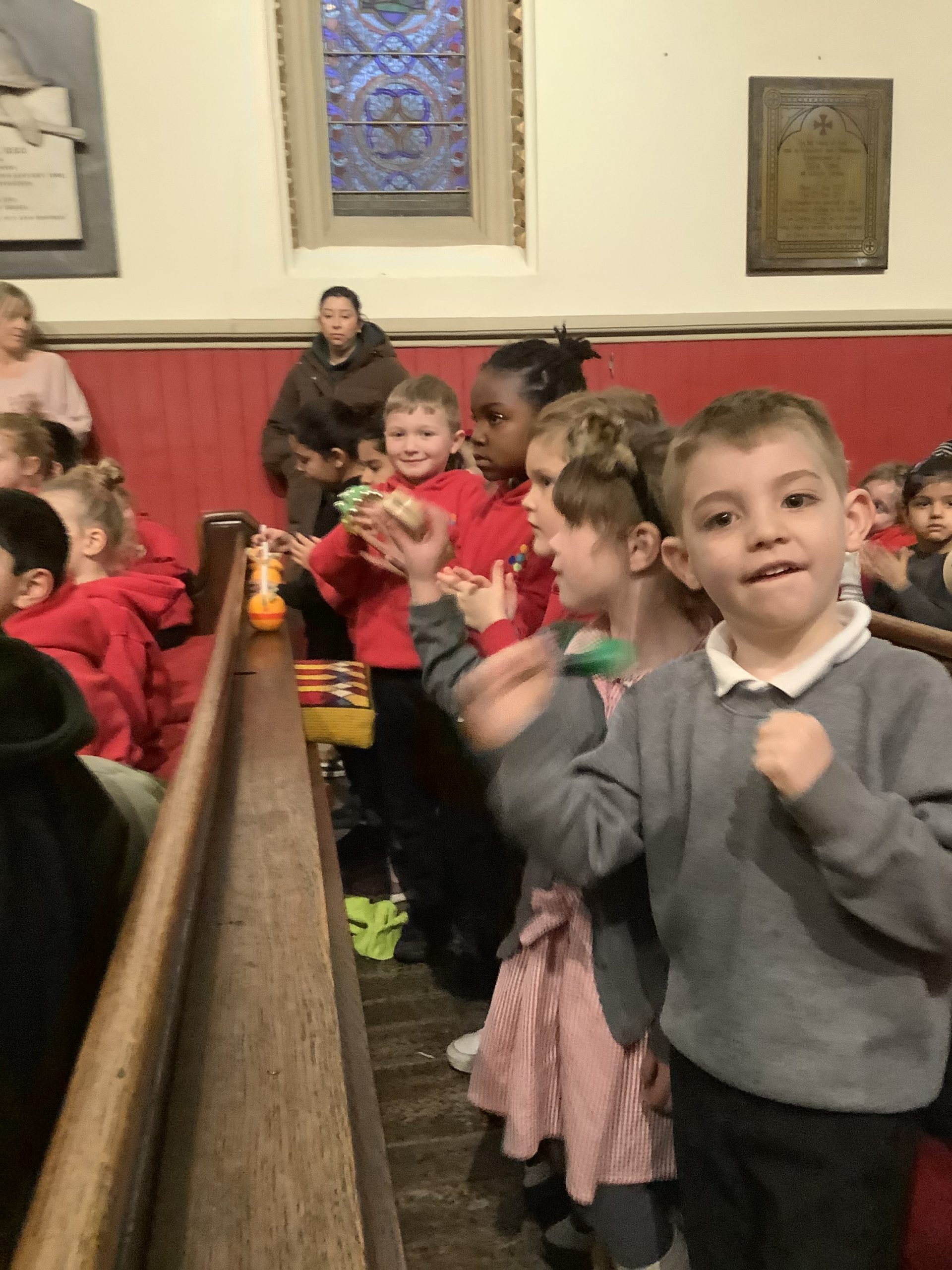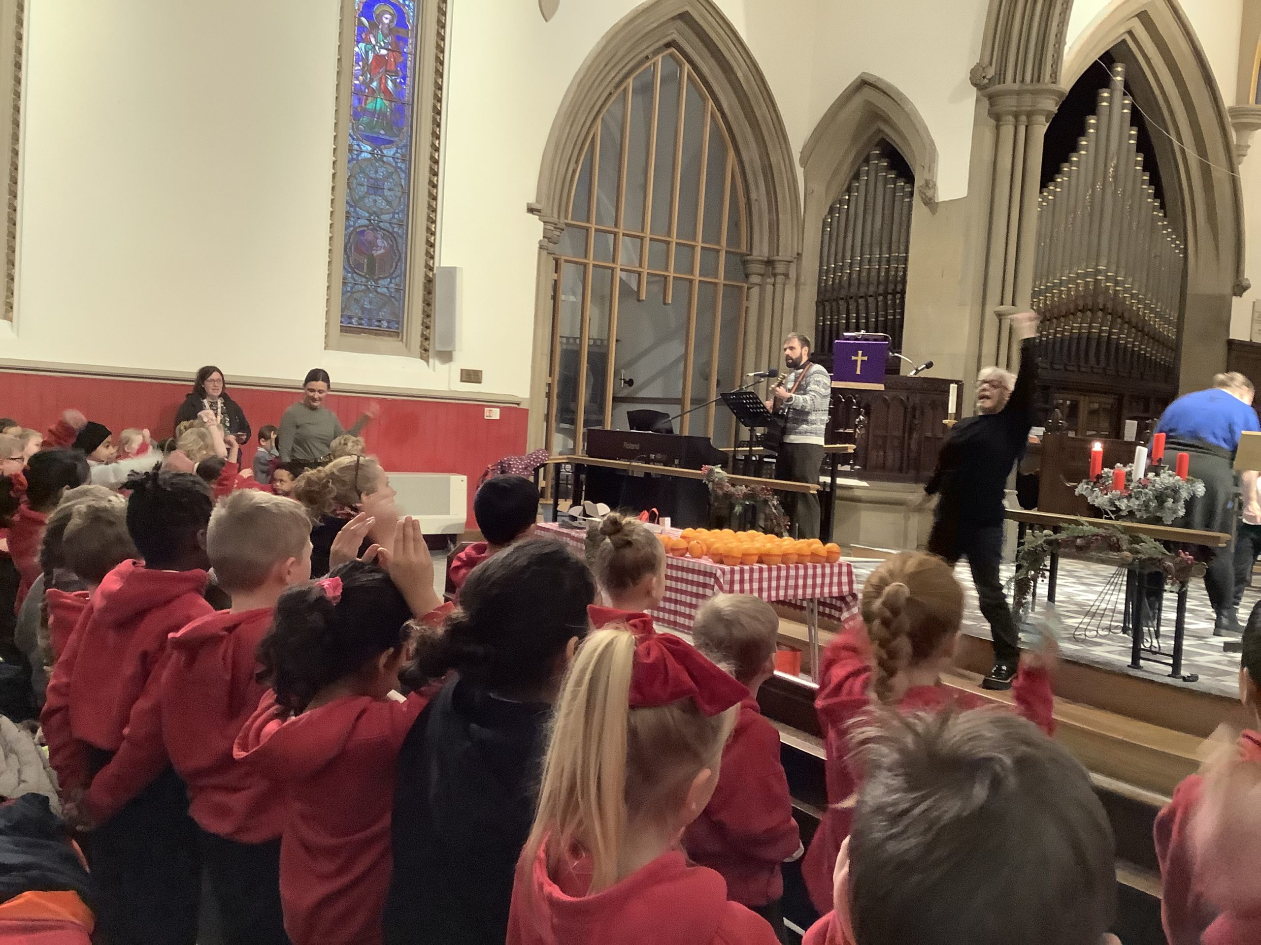 On Thursday, we had a fantastic trip to St John’s church in Farsley. As it was a local trip, we walked to the church, which the children found very exciting. We learnt about what a Christingle is and what it represents and then the children made their own. All the children were very sensible when we lit the Christingles in the dark church.