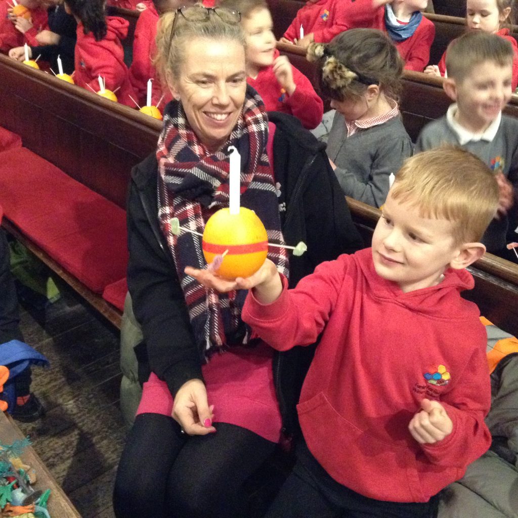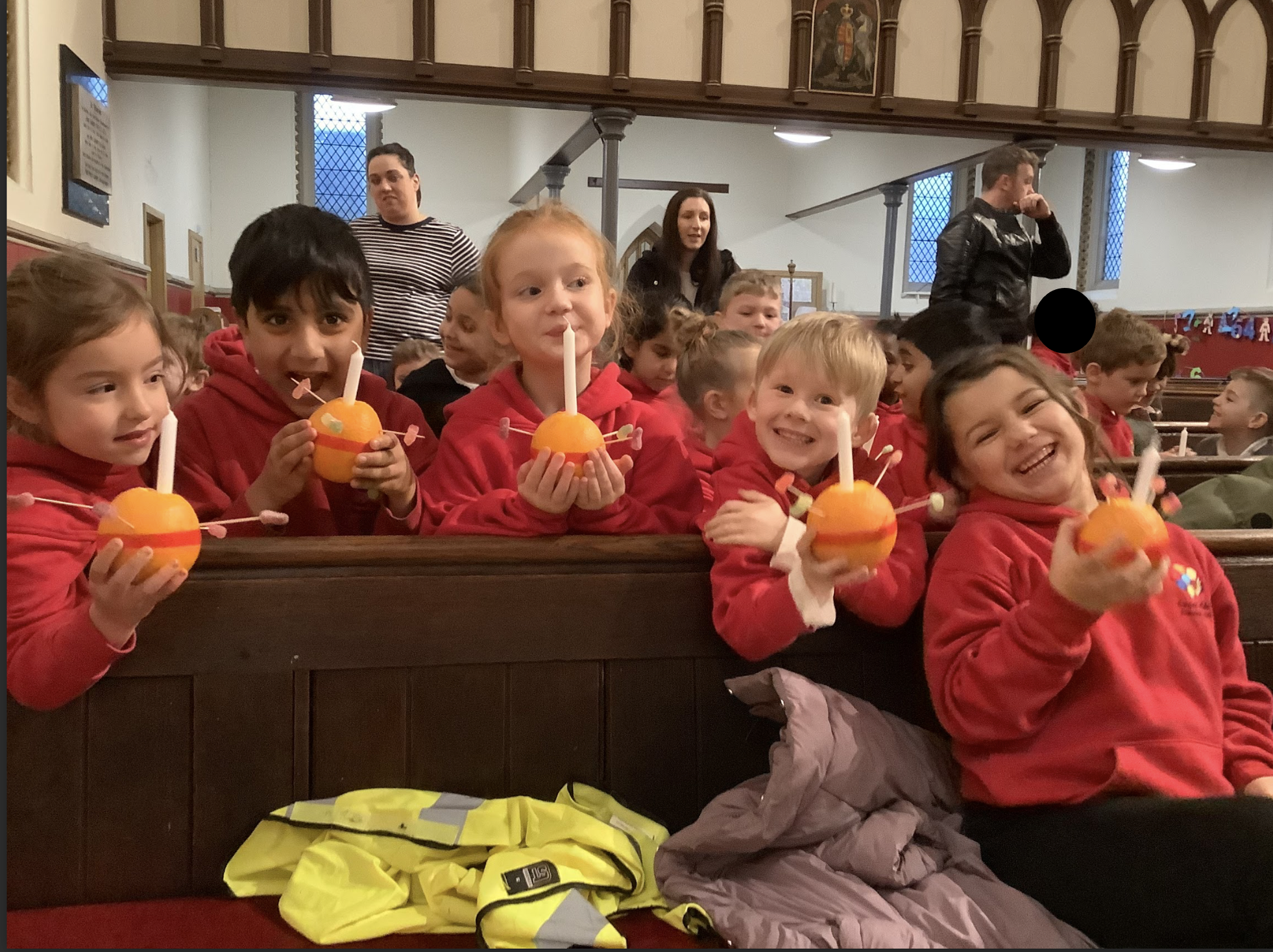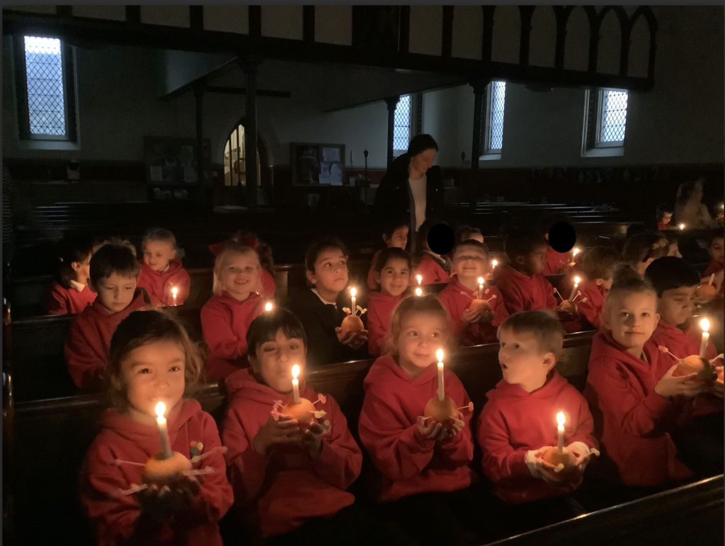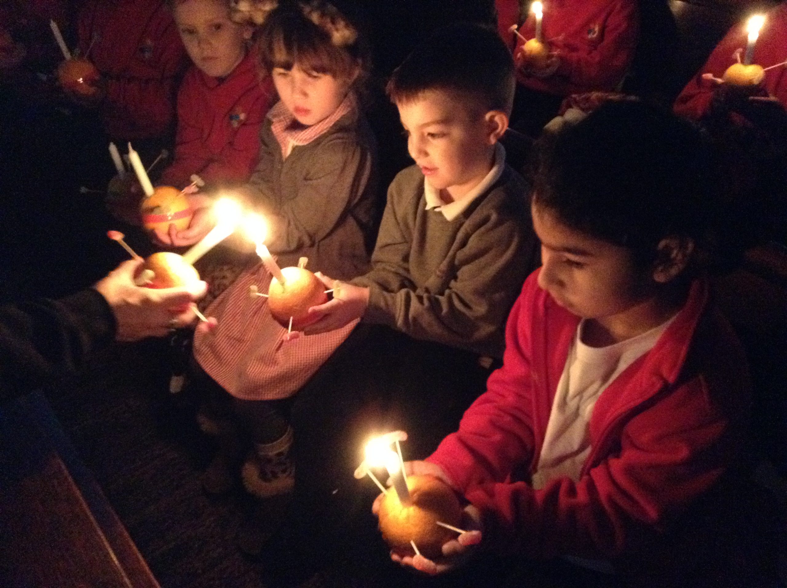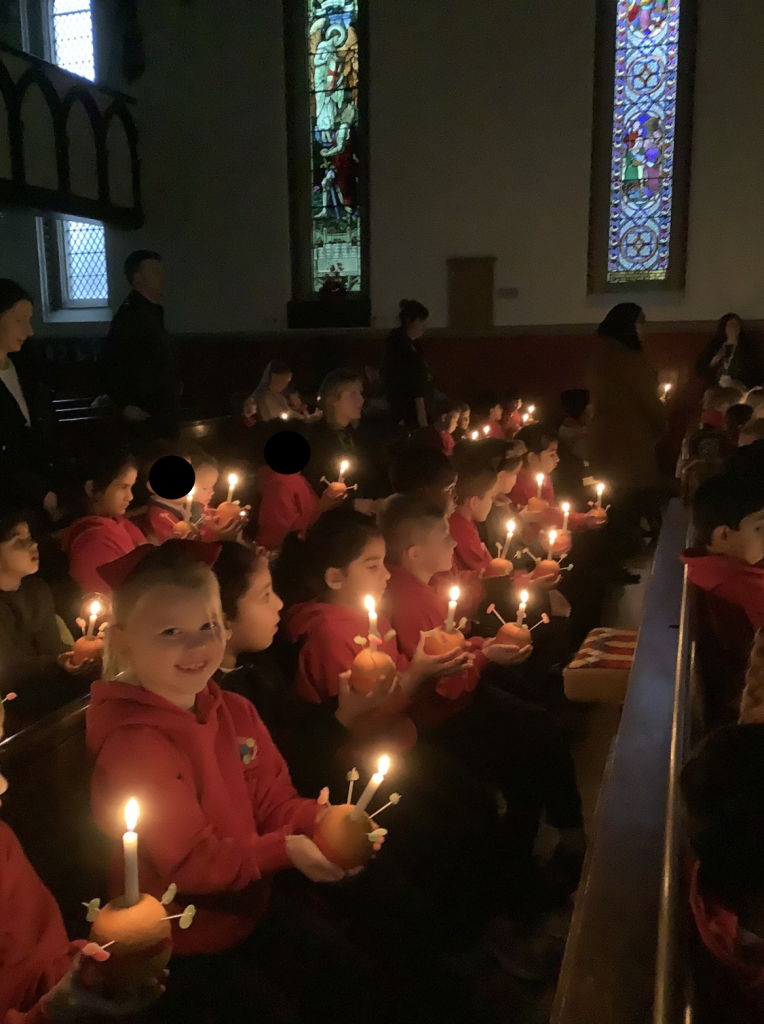 On Thursday, we had a fantastic trip to St John’s church in Farsley. As it was a local trip, we walked to the church, which the children found very exciting. We learnt about what a Christingle is and what it represents and then the children made their own. All the children were very sensible when we lit the Christingles in the dark church.