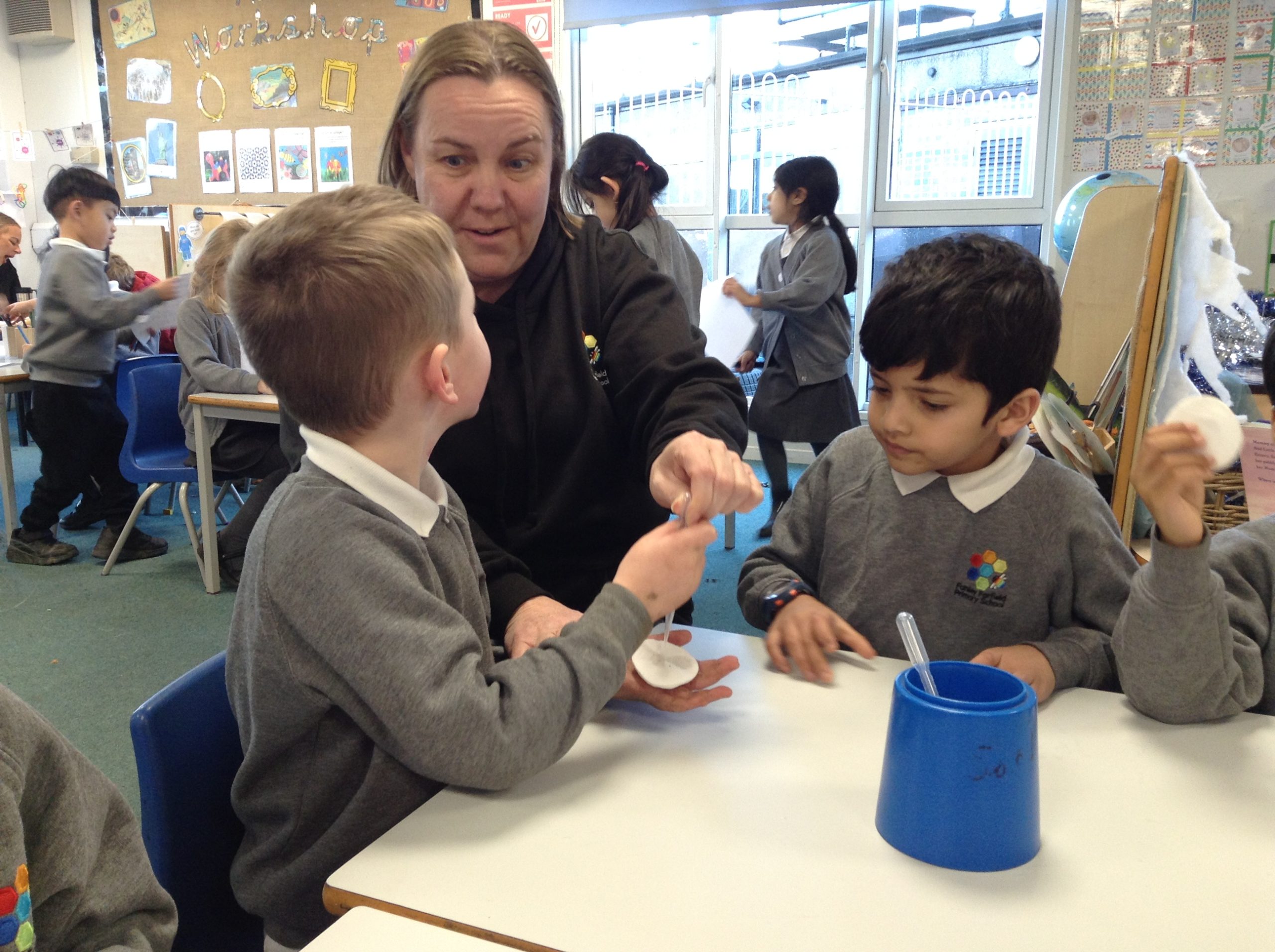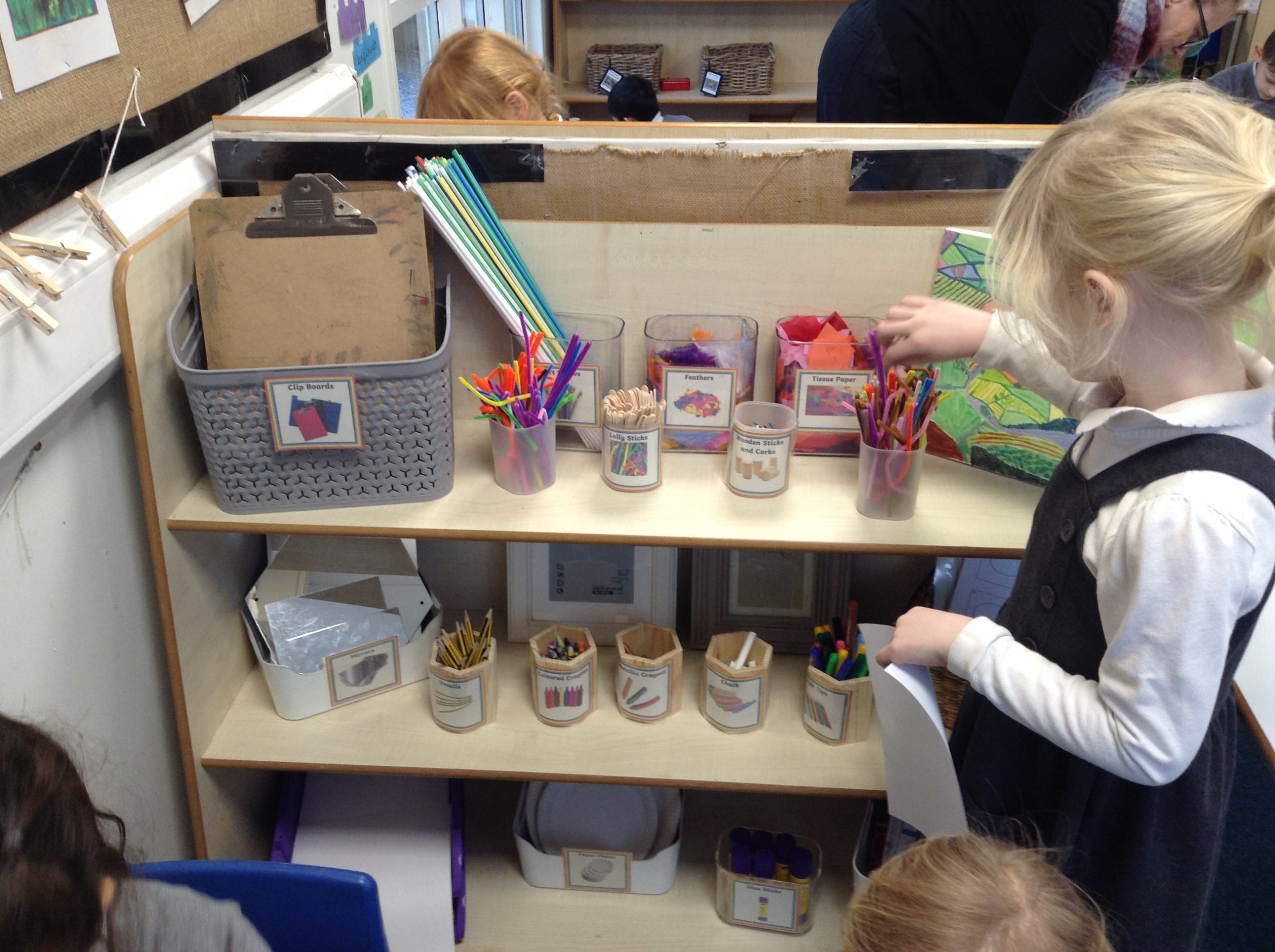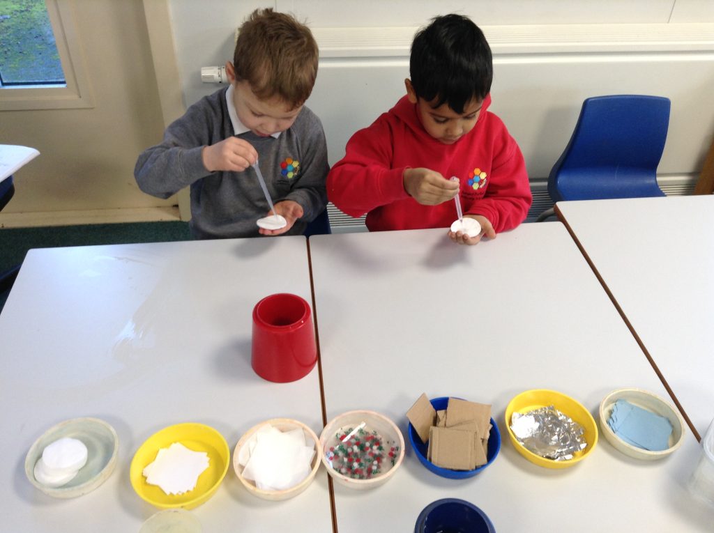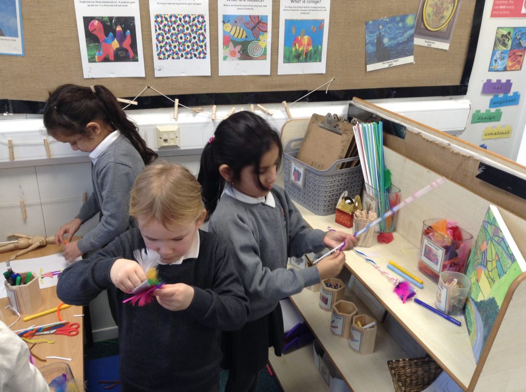 We have created ‘Art Workshops’ in our classrooms. The children are enjoying using different media and have created some lovely pieces of art.