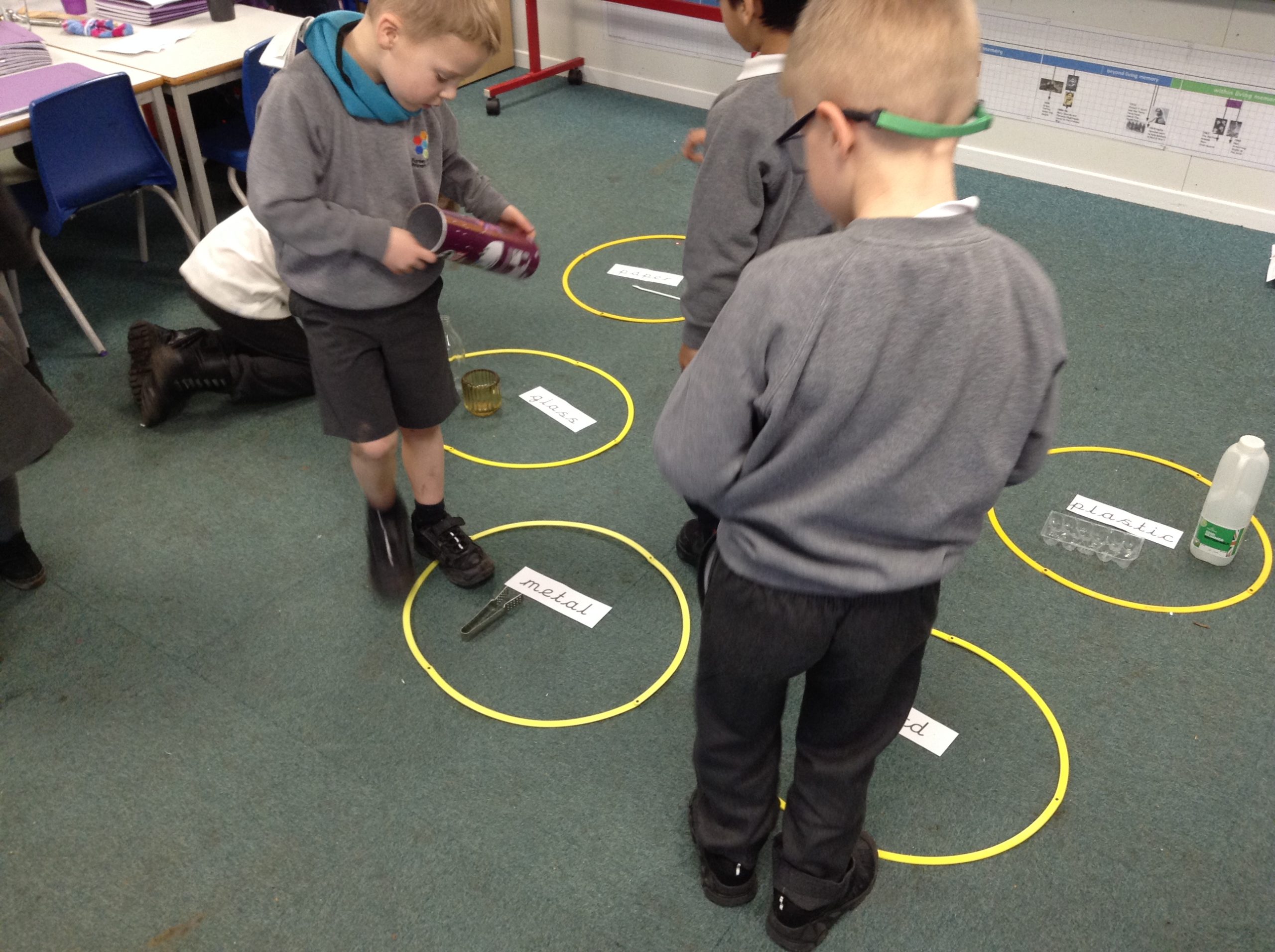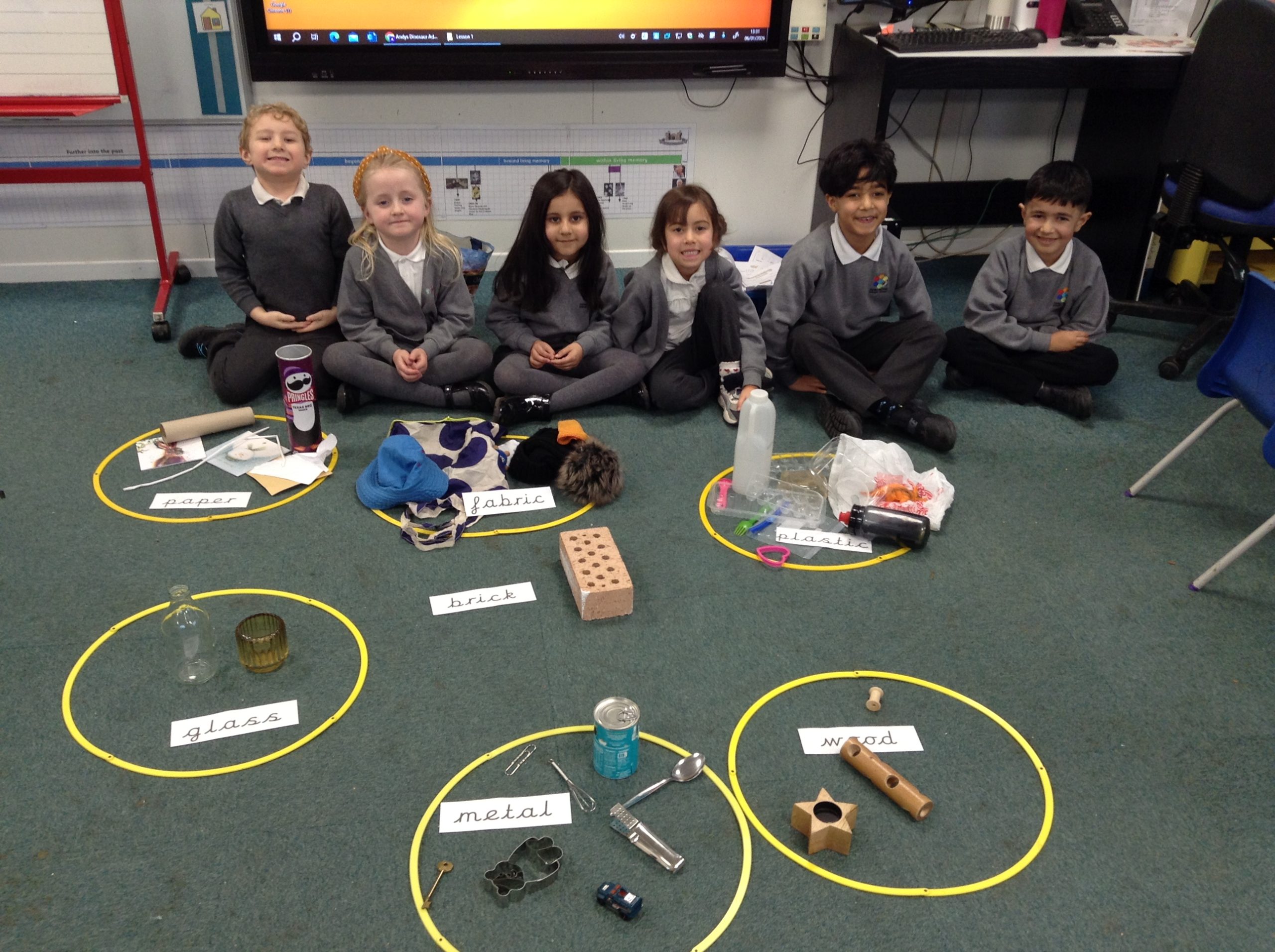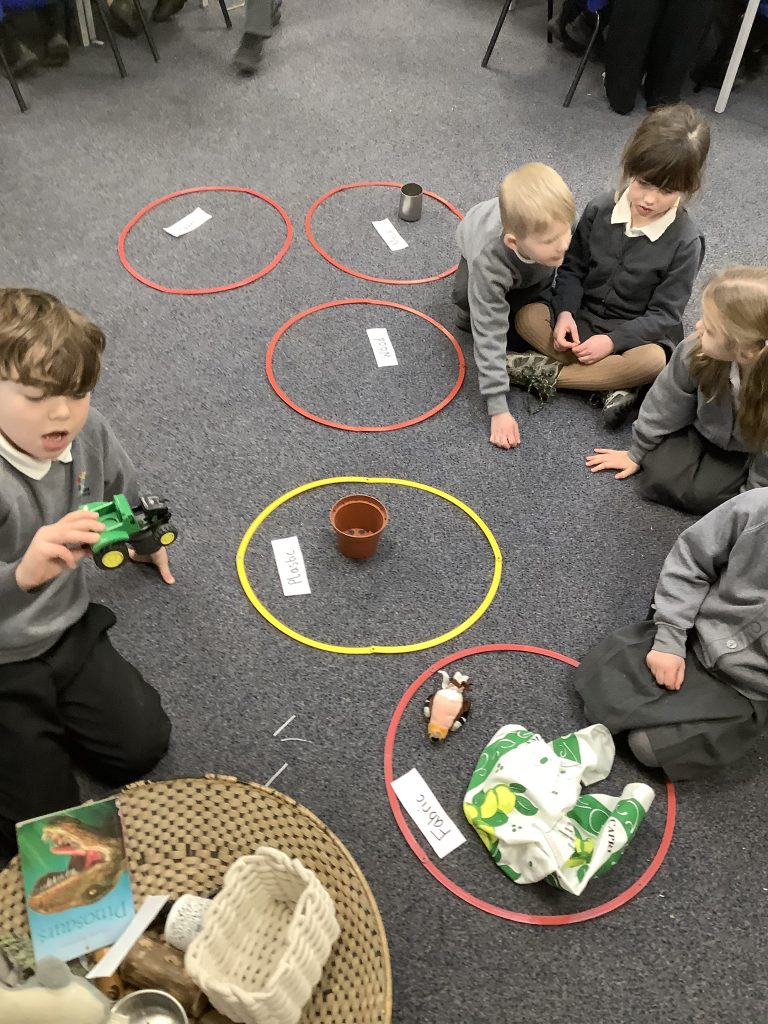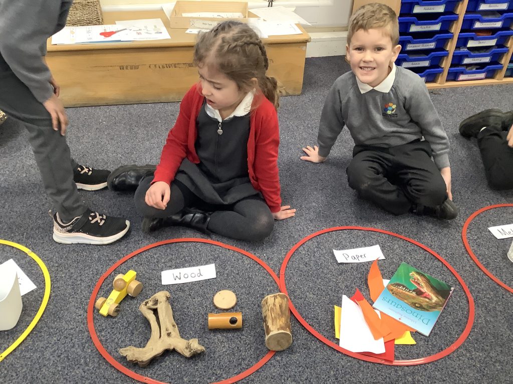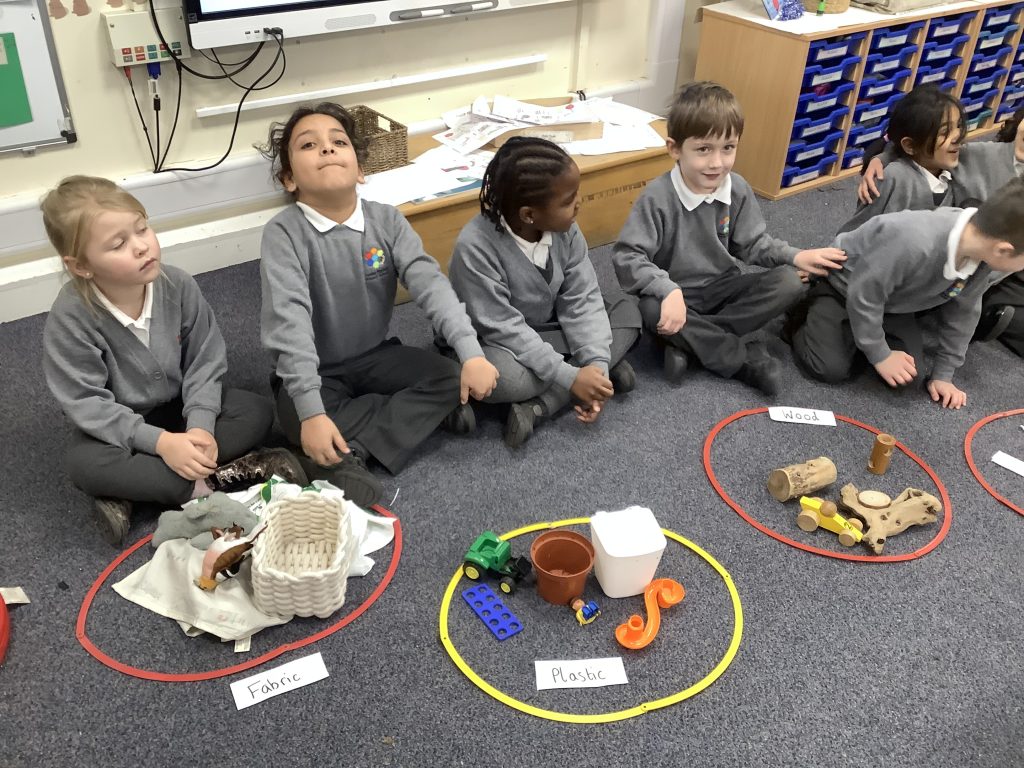 We have started our unit on materials. We learnt that a material is what an object is made of. We sorted various objects into groups based on what material they were made of. These groups included wood, plastic, metal, glass, fabric and brick. Can your child spot any materials at home?